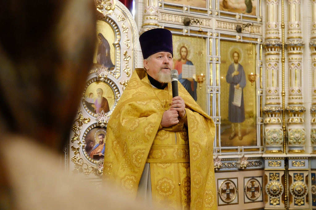 В проповеди протоиерей Владимир Маничев задался вопросом: на чем строится наше благочестие? Господь Иисус Христос призывает в Евангелии научиться у Него, ибо Он «кроток и смирен сердцем». Поэтому в первую очередь наше благочестие должно строиться на Священном Писании.
