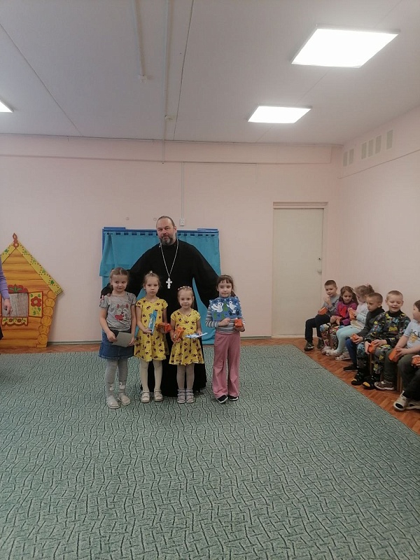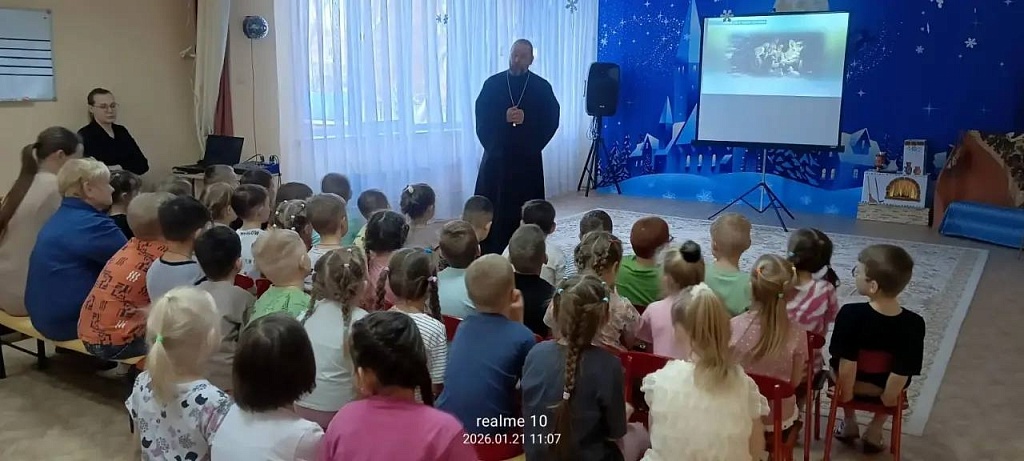 Клирик челябинского Одигитриевского женского монастыря иерей Георгий Пащенко провел беседы с воспитанниками детских садов №421 и №436 20 и 21 января.