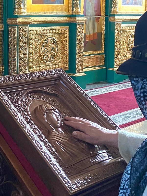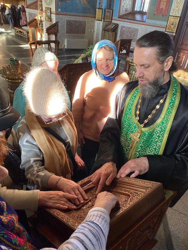 Особый интерес вызвали иконы для слабовидящих людей, недавно появившиеся в храме. Участники встречи смогли прикоснуться к образам и познакомиться с ними тактильно.