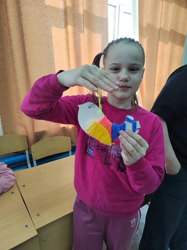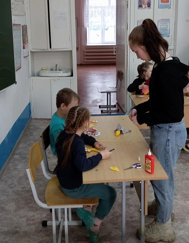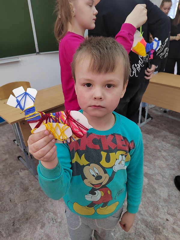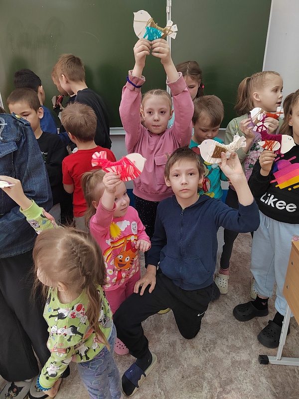 После беседы прошел мастер-класс. Дети делали птичек из картона и пряжи. Под руководством волонтеров каждый смог создать свою поделку. Задача оказалась непростой, но справились даже самые маленькие участники.