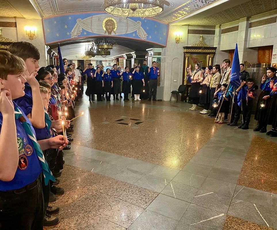 В этом году уральские следопыты впервые принимали эстафету от ребят из Белоруссии. Вифлеемский огонь встретили в Храме-Памятнике на Крови Екатеринбурга разведчики и следопыты из разных епархий Урала. Традиционно во встрече принимали участие представители отрядов Челябинска. Это главное итоговое событие года для скаутов, где они встречаются с друзьями и получают напутствия на добрые дела.