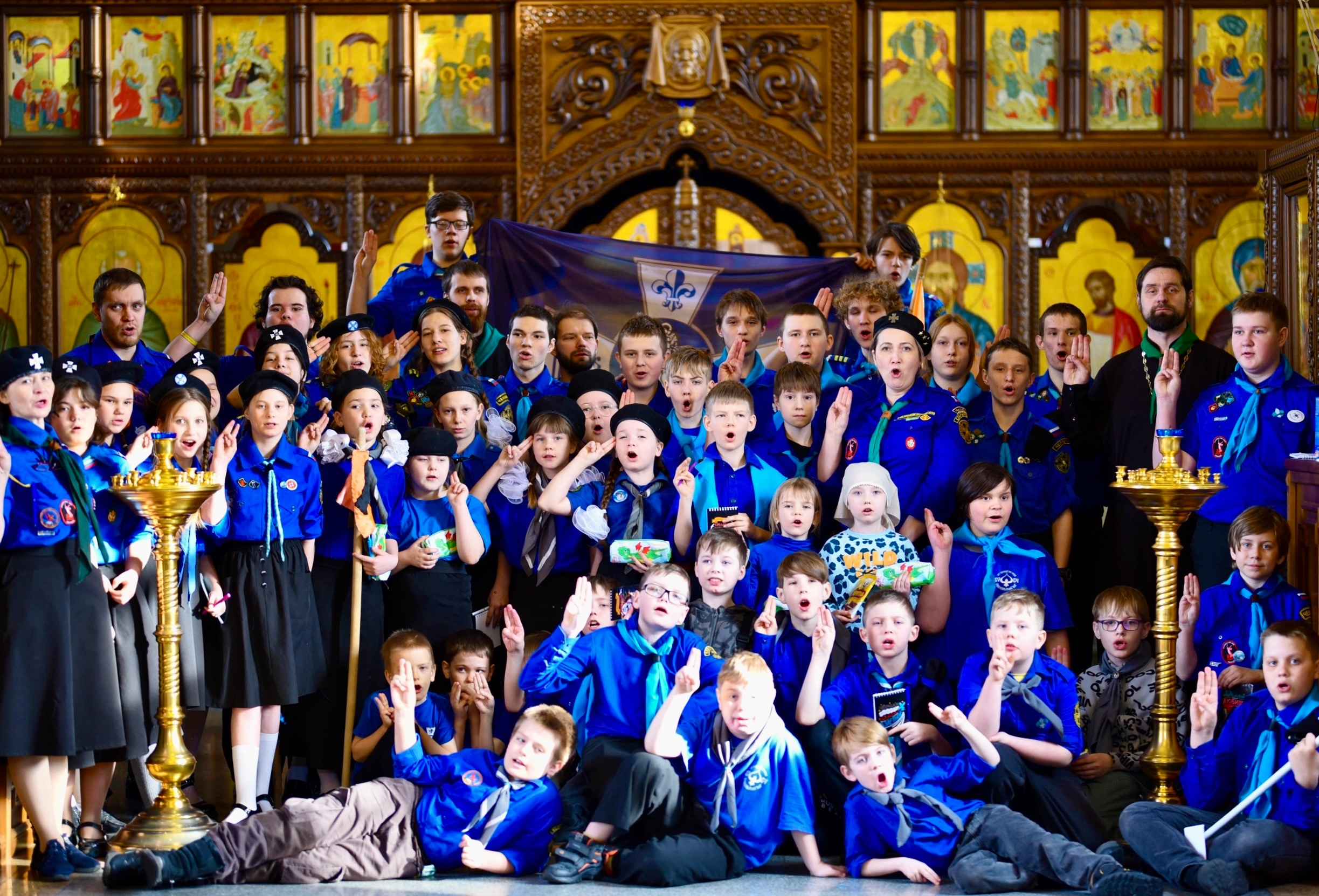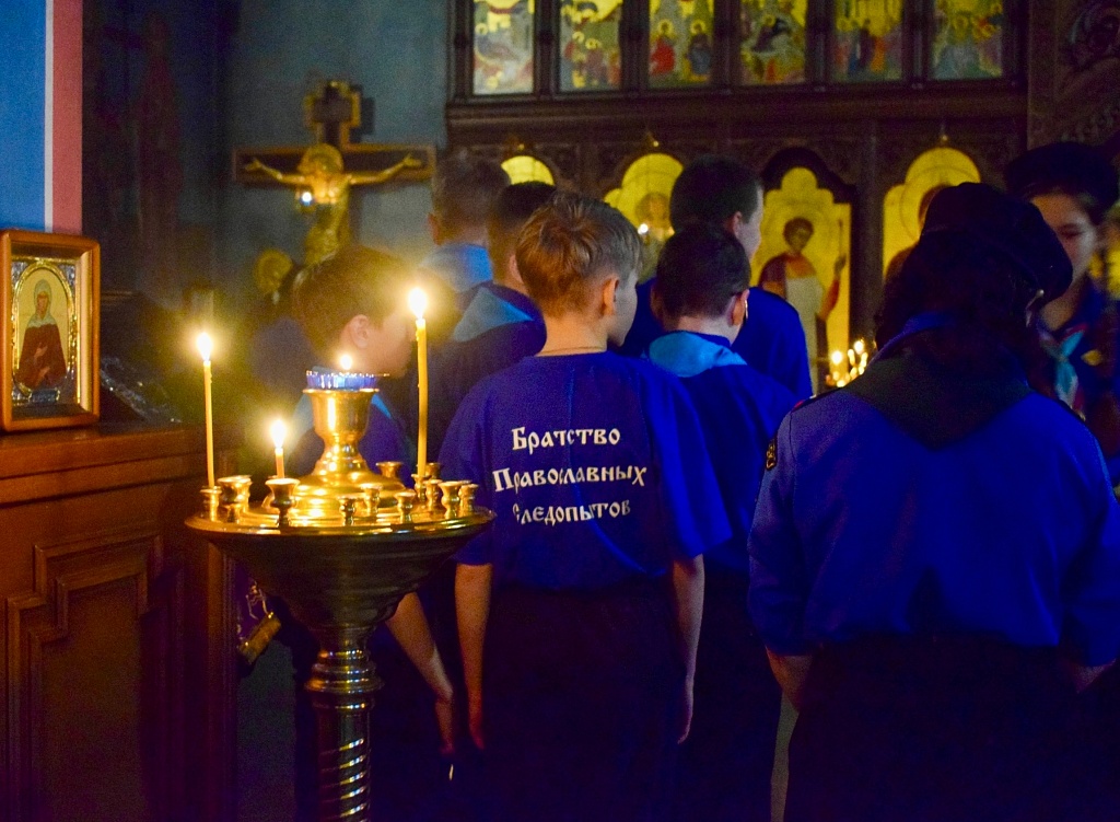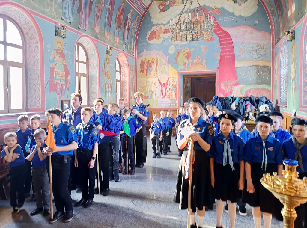 В храм Похвалы Пресвятой Богородицы поселка Полетаево съехались 50 следопытов и дозорных из четырех отрядов дружины «Россич». Это воспитанники отряда храма мученика Иоанна Воина Челябинска, храма святого Иоанна Крестителя поселка Полетаево, отряда «Знаменцы» поселка Ишалино и отряда при храме святителя Луки Крымского Челябинска.