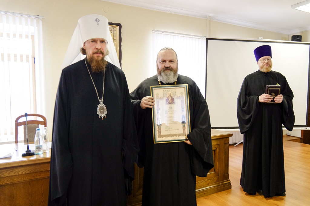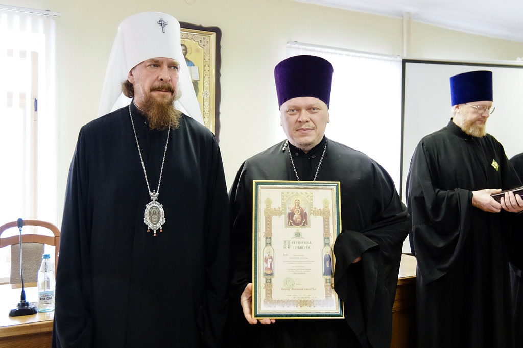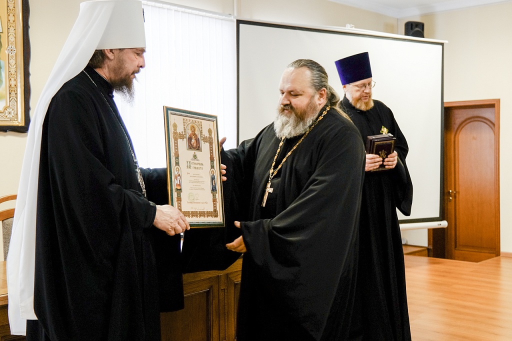 В связи с 25-летием служения в сане пресвитера Патриаршей грамоты удостоены благочинный Чебаркульского благочиния, настоятель храма Преображения города Чебаркуля протоиерей Димитрий Егоров, настоятель храма иконы Божией Матери «Всецарица» города Челябинска иерей Димитрий Волков, клирик храма Преображения города Чебаркуля иерей Роман Ковригин.