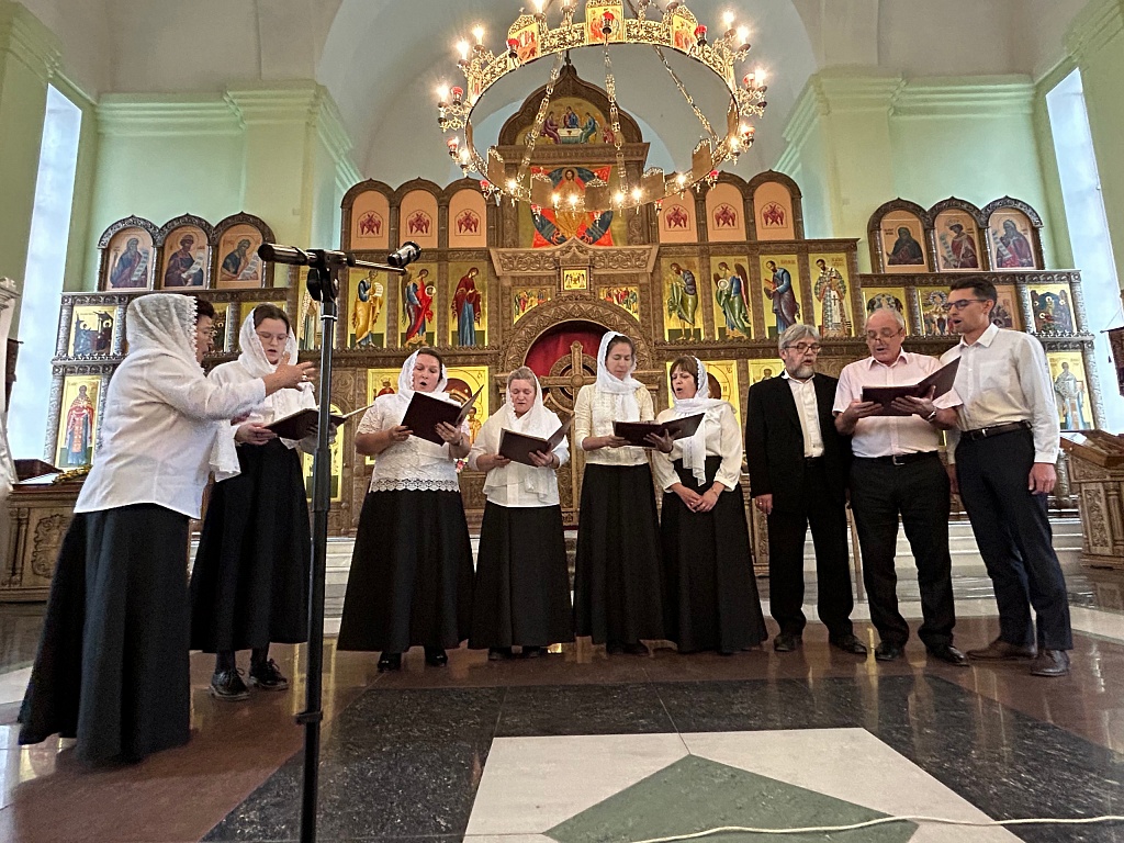 В храме преподобного Сергия Радонежского собрались пять хоровых коллективов: Свято-Троицкого храма города Миасса, Одигитриевского женского монастыря, два хора из самого Сергиевского храма и Архиерейский мужской хор.