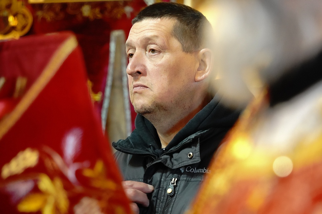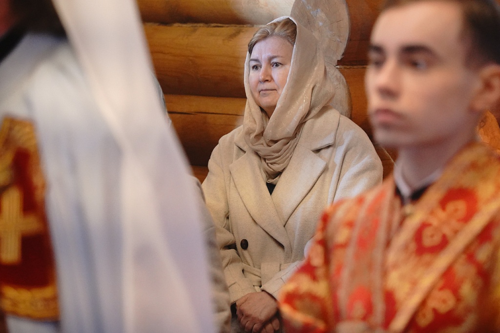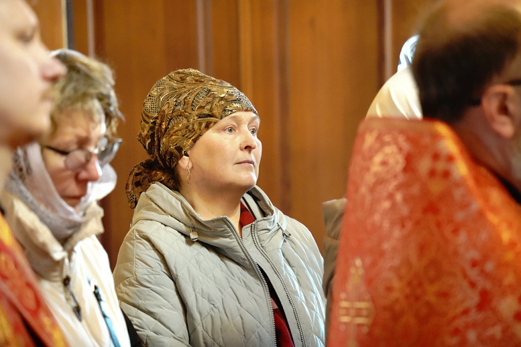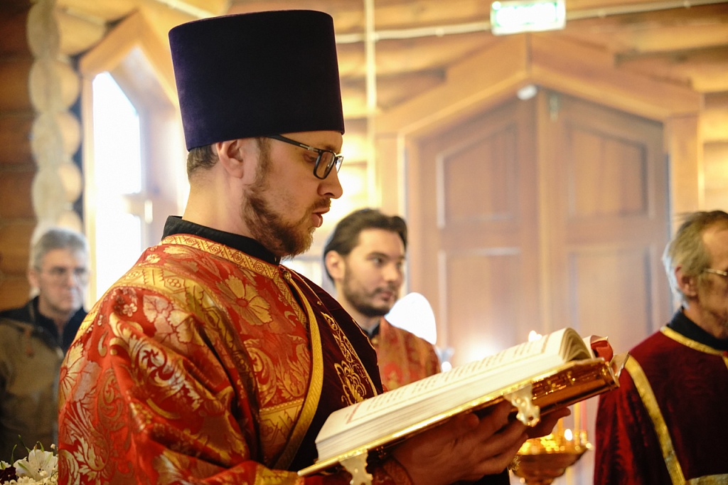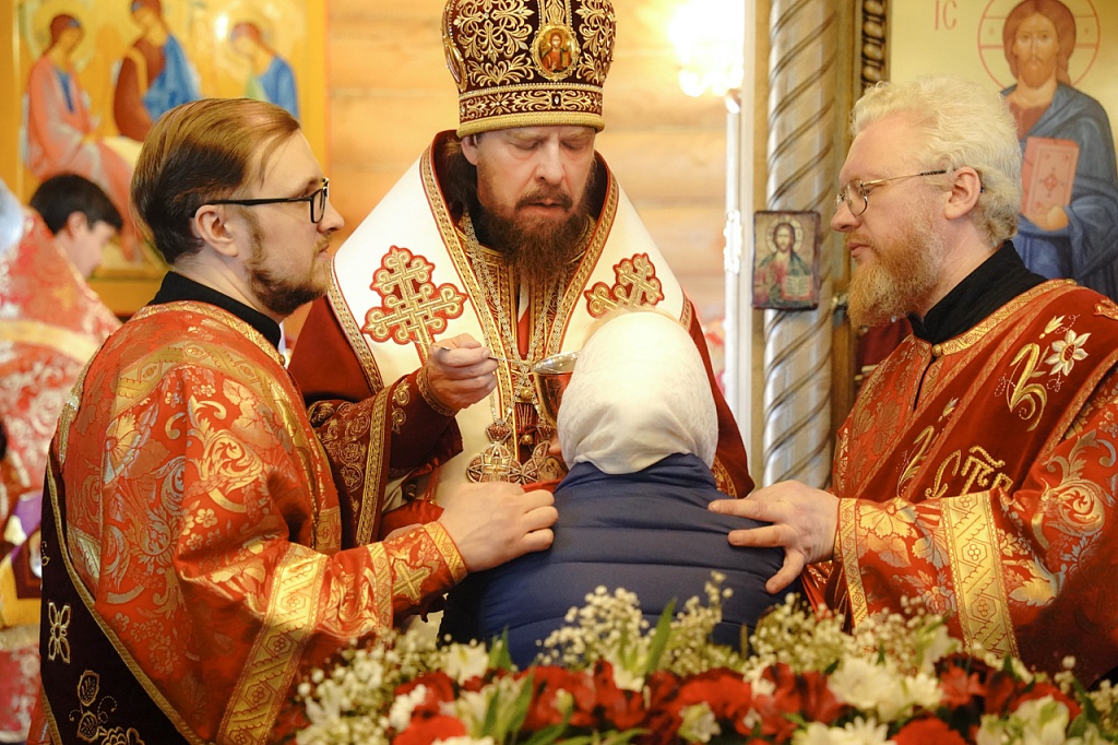 На службе читался отрывок из Евангелия от Иоанна (Ин.3:1–15), который описывает беседу Иисуса Христа с фарисеем Никодимом. Господь говорит о том, что нужно «родиться свыше». «Истинно, истинно говорю тебе, если кто не родится от воды и Духа, не может войти в Царствие Божие» (Ин.3:5).