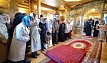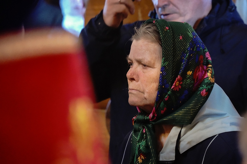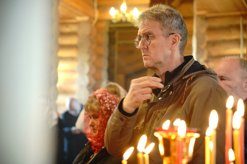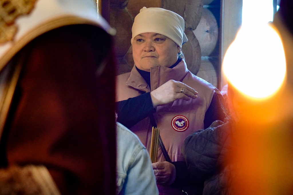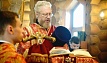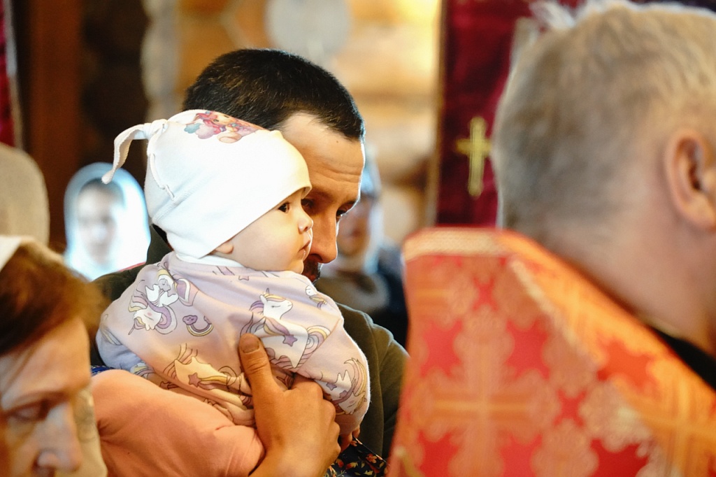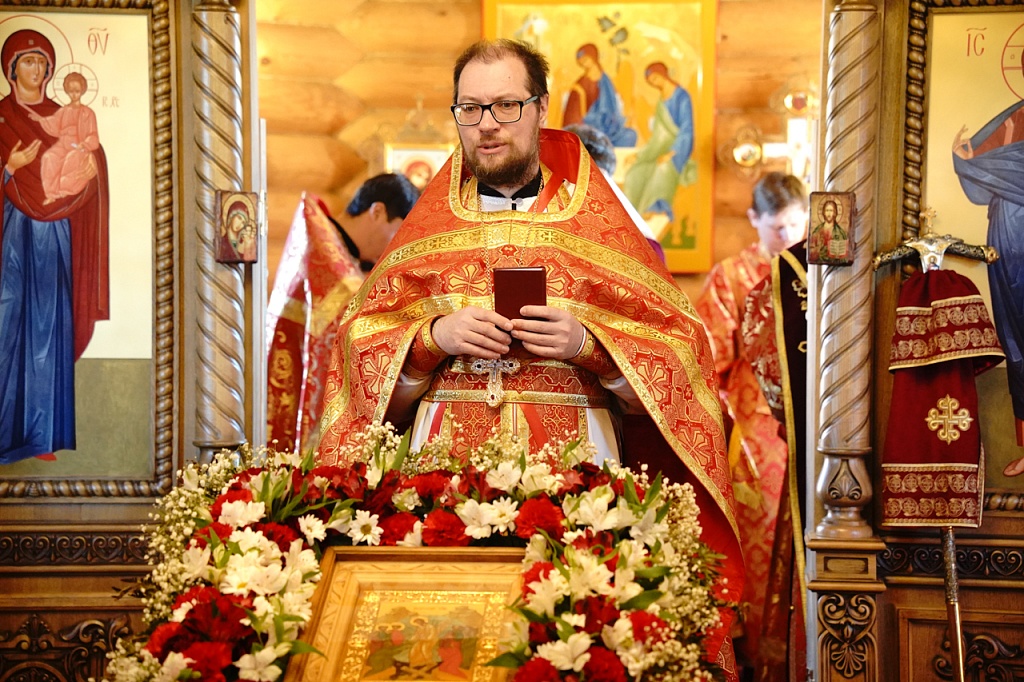 На службе читался отрывок из Евангелия от Иоанна (Ин.3:1–15), который описывает беседу Иисуса Христа с фарисеем Никодимом. Господь говорит о том, что нужно «родиться свыше». «Истинно, истинно говорю тебе, если кто не родится от воды и Духа, не может войти в Царствие Божие» (Ин.3:5).