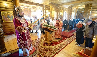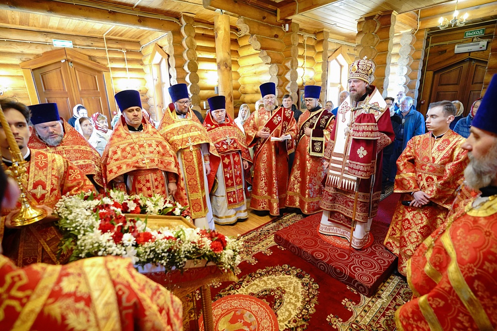 В четверг Светлой седмицы митрополит Челябинский и Миасский Алексий совершил Божественную литургию в храме Живоначальной Троицы в деревне Верхние Караси.