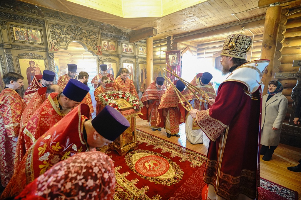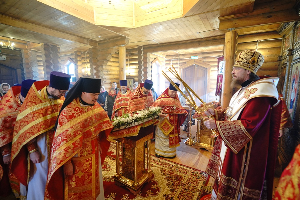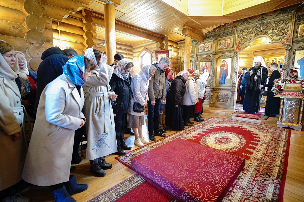 Правящему архиерею сослужили благочинный Чебаркульского благочиния протоиерей Димитрий Егоров и духовенство Чебаркульского благочиния. Песнопения службы исполнил Архиерейский квартет под управлением регента Марины Гоман.