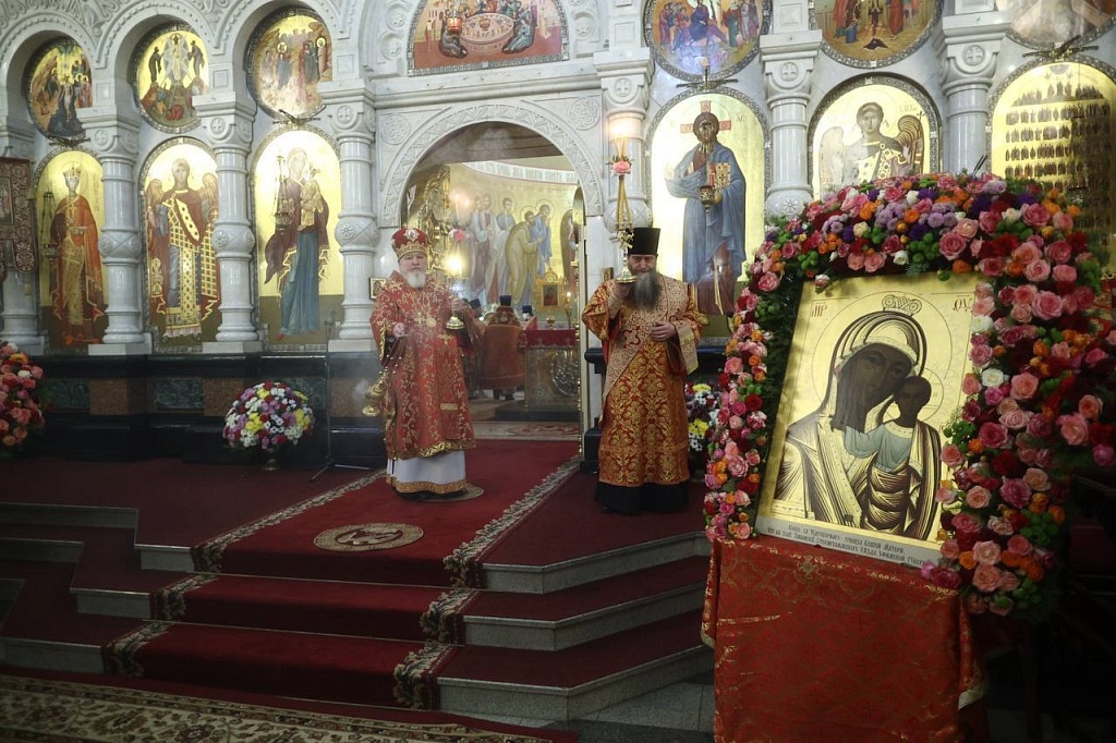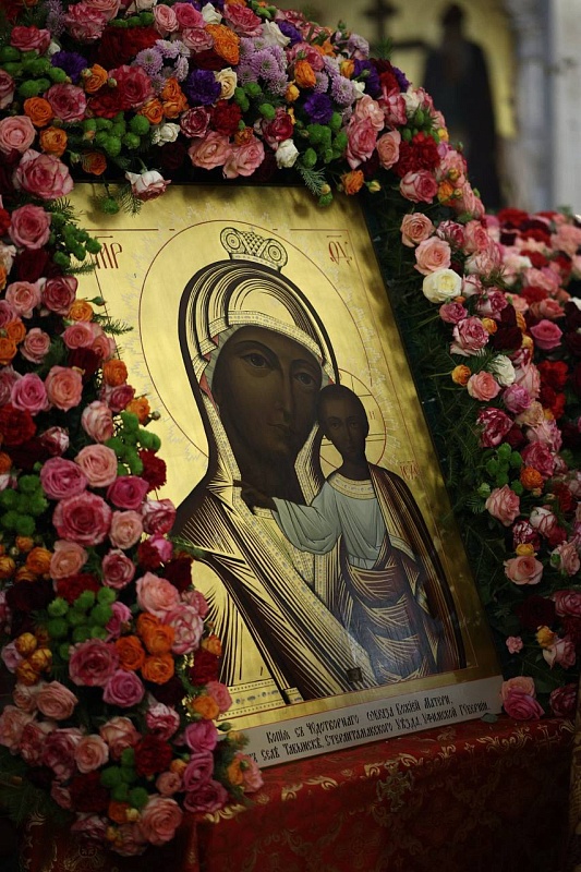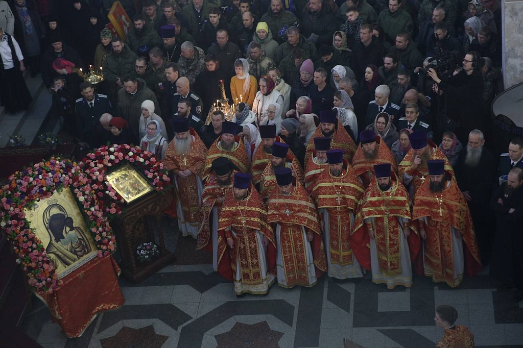 К началу богослужения в главный храм Оренбургского казачьего войска была принесена Табынская икона Пресвятой Богородицы, которая является покровительницей Оренбургского казачьего войска.