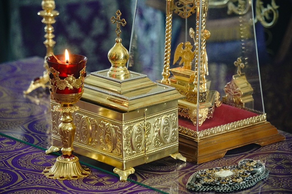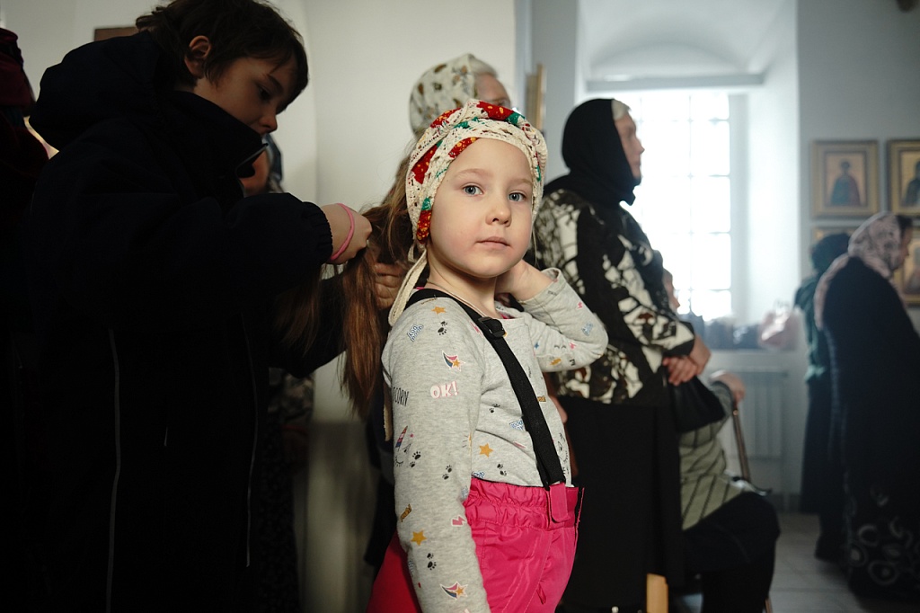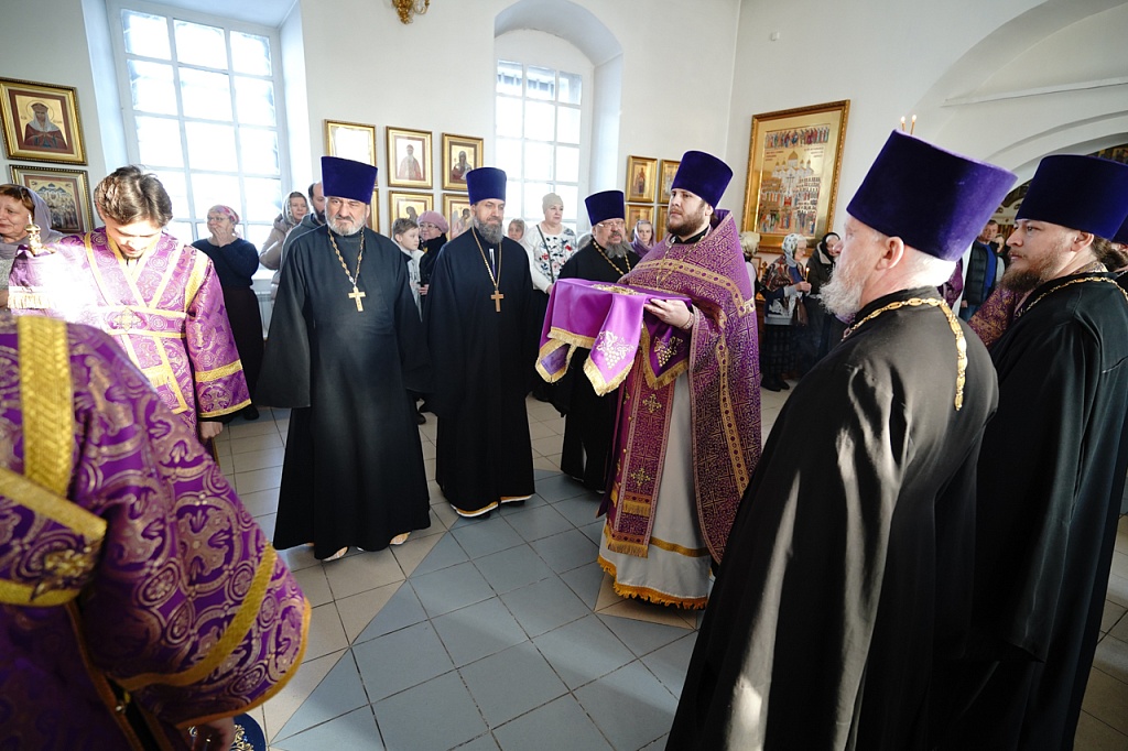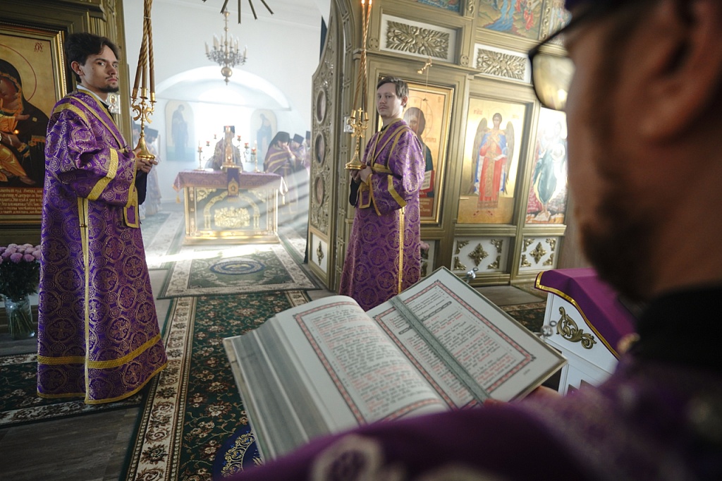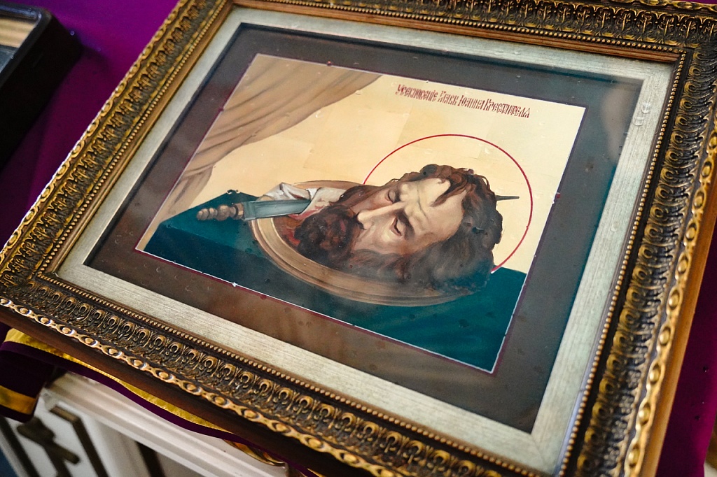 Богослужение состоялось в нижнем храме, освященном в честь святого Иоанна Крестителя. Сегодня Церковь празднует первое и второе обретение честной главы Иоанна Предтечи. Для храма это — престольный праздник.