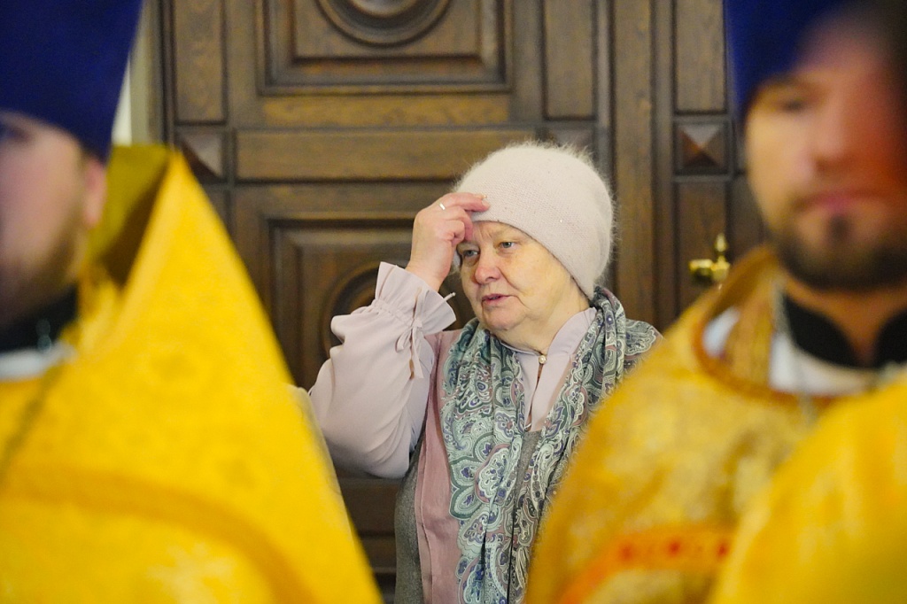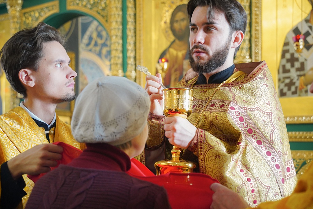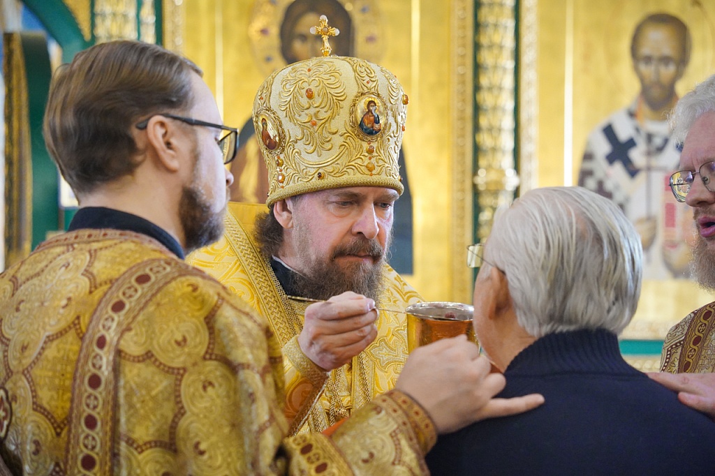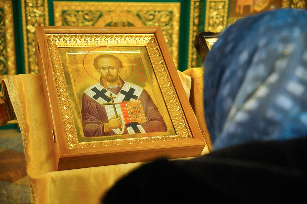 В завершение Литургии было пропето славление святителю Иоанну, митрополит Алексий прочел святому молитву. Затем архипастырь окропил прихожан святой водой.