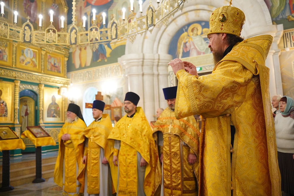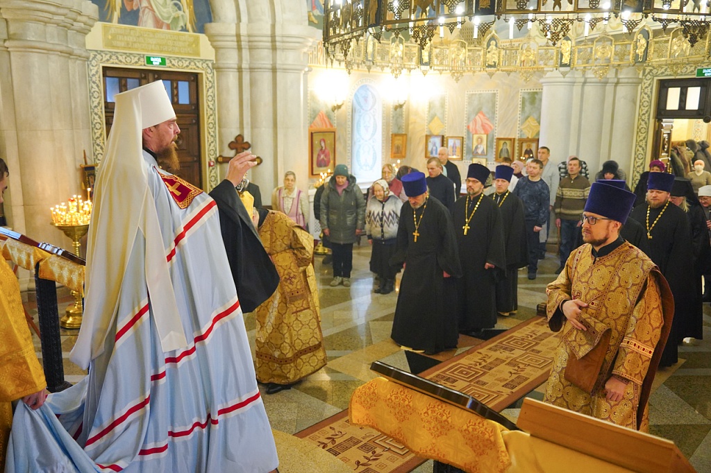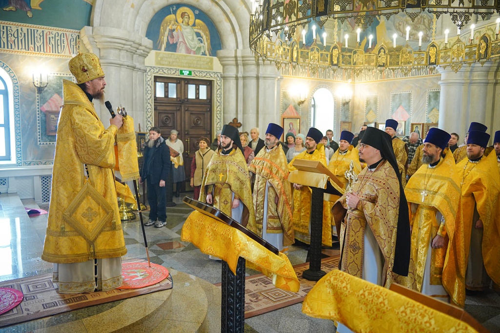 Правящему архиерею сослужил благочинный Карабашского округа, настоятель храма иерей Александр Сабитов и духовенство Карабашского, а также Миасского Северного и Миасского Южного благочиний. Песнопения службы исполнил Архиерейский квартет под управлением регента Марины Гоман.