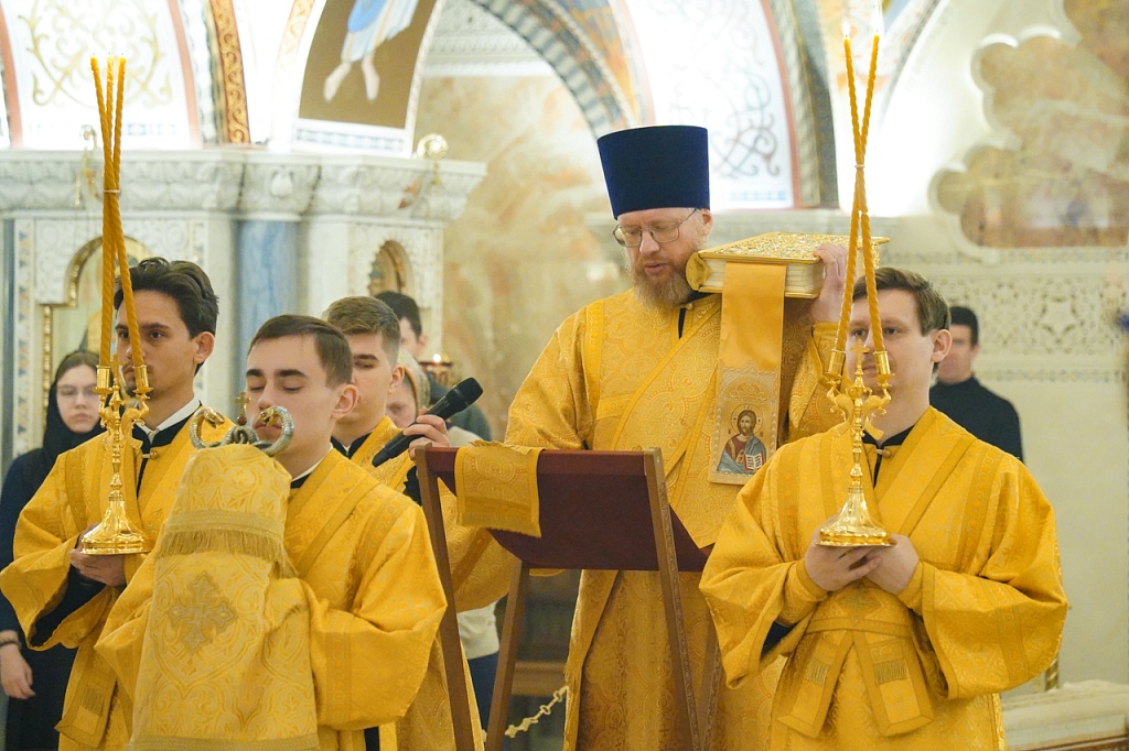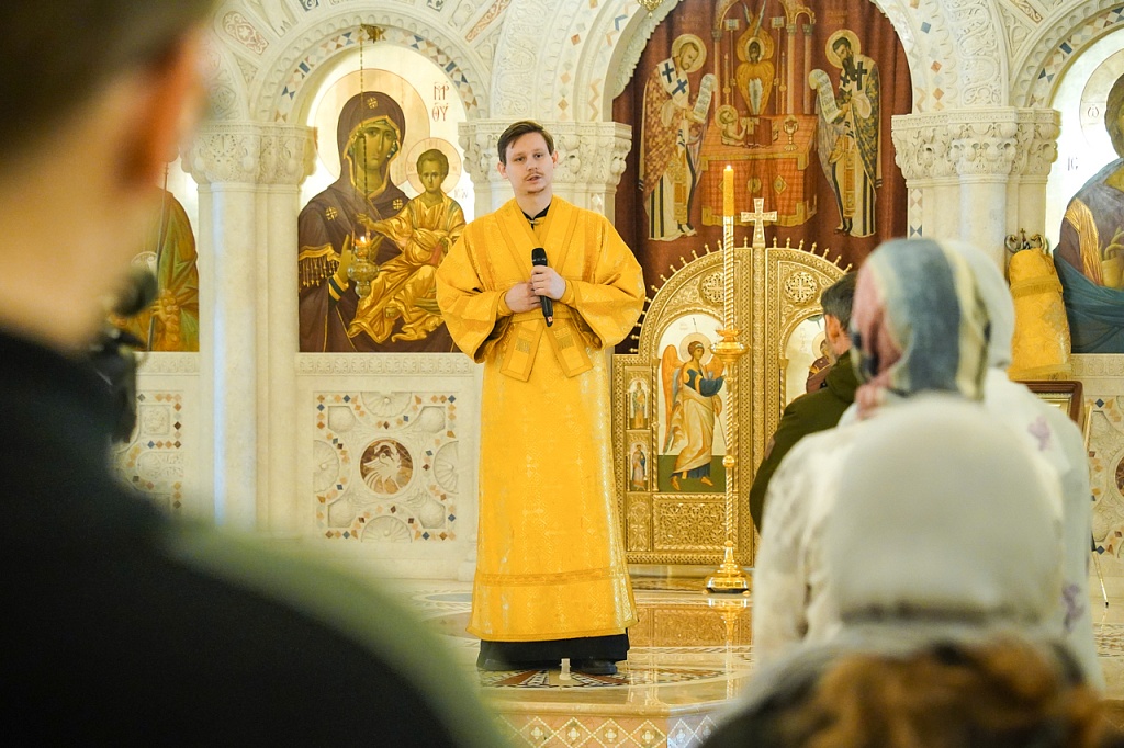 За богослужением был прочитан отрывок из Евангелия от Матфея (Мф.5:14-19), в котором Господь наш Иисус Христос называет учеников Своих и всех истинно верующих «светом мира», свет которых должен светить перед людьми, «чтобы они видели ваши добрые дела и прославляли Отца вашего Небесного».