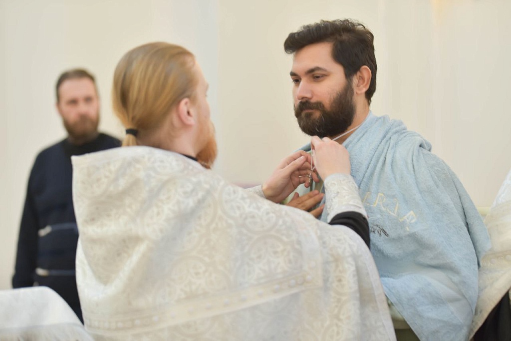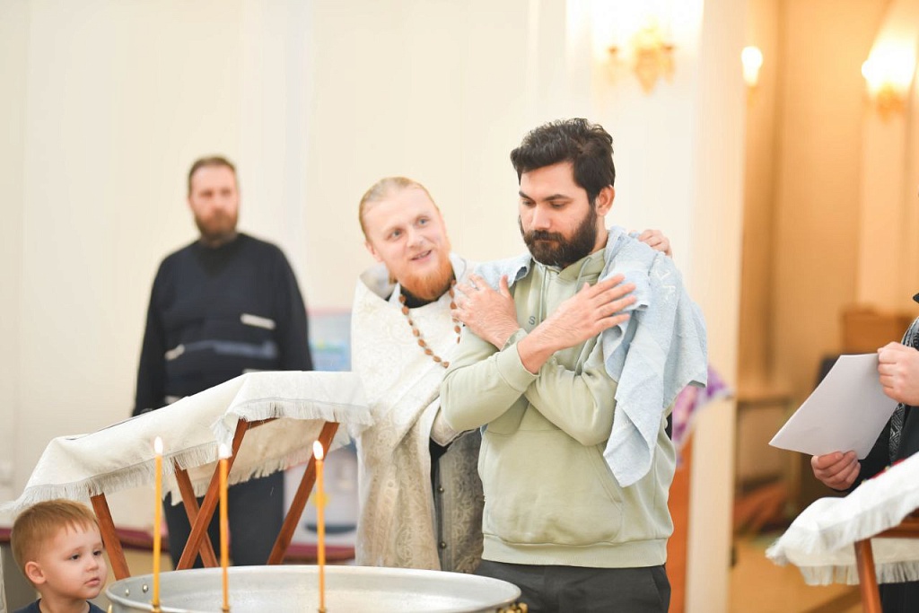 Таинство Крещения совершили клирики храма — иерей Аркадий Бобыкин и иерей Артемий Афанасьев. Новый член Церкви принял имя Фома — в честь апостола Фомы, проповедовавшего в Индии.