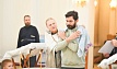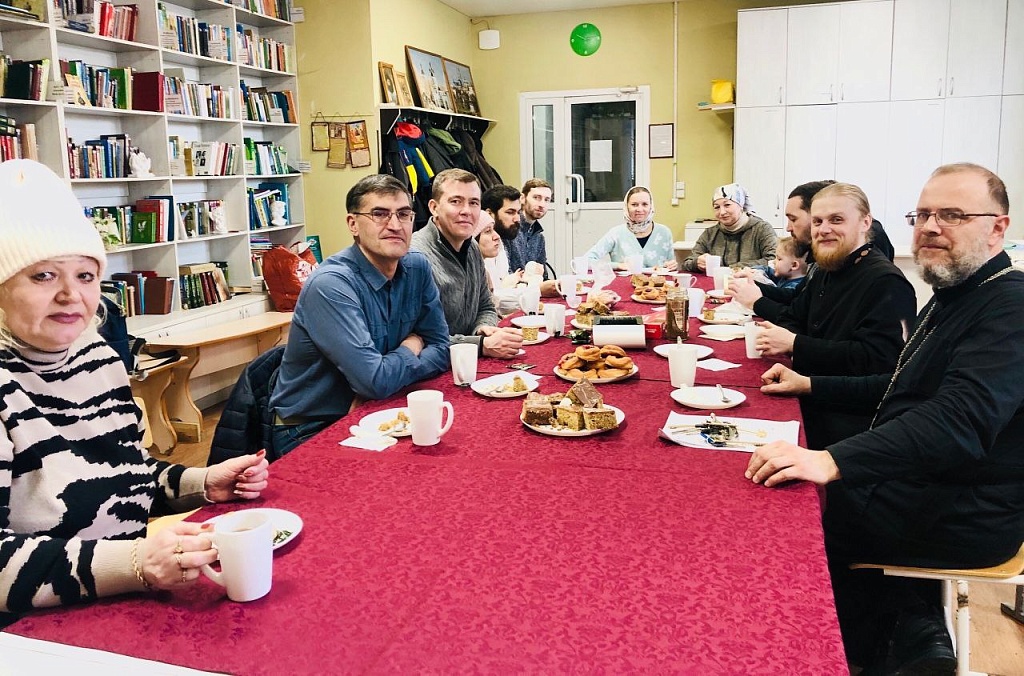 После совершения Таинства семья Фомы и священнослужители собрались за столом, чтобы за чаем с домашней выпечкой обсудить основы веры и поздравить нового брата во Христе.