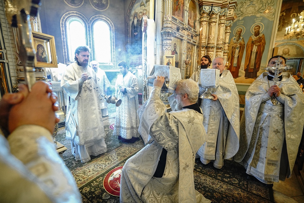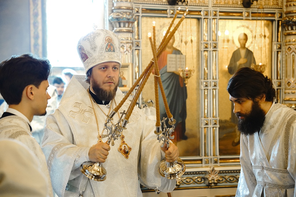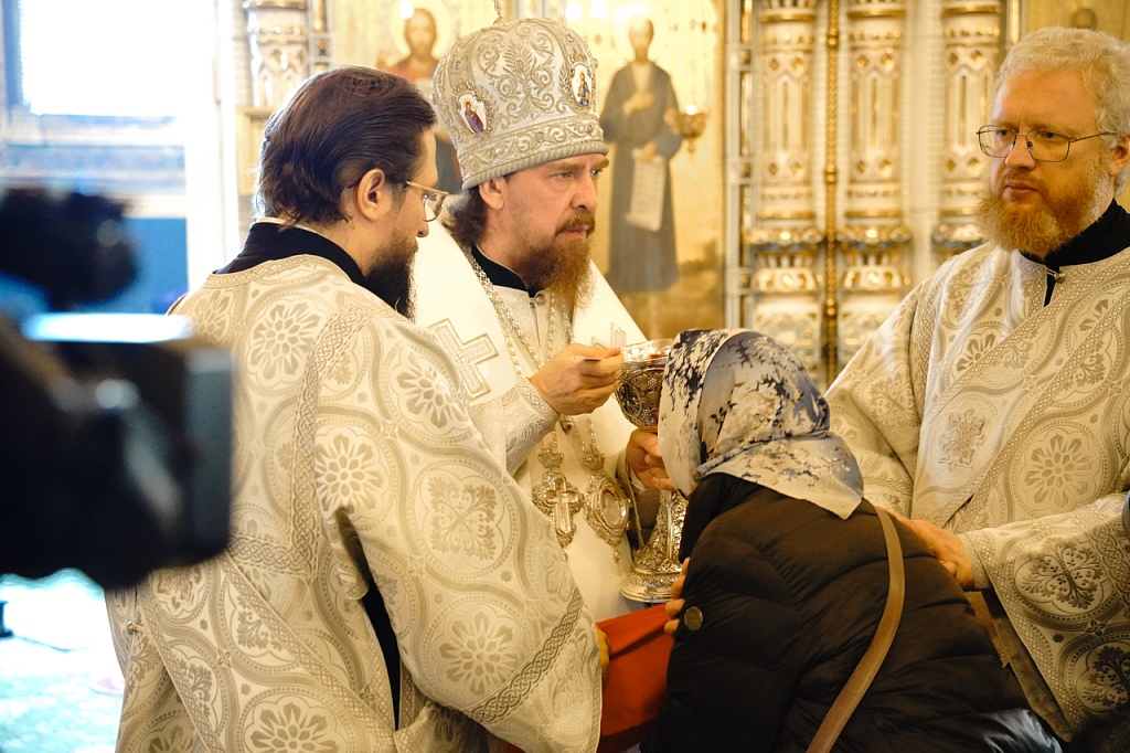 Архипастырям сослужило духовенство собора во главе с ключарем протоиереем Владимиром Маничевым.