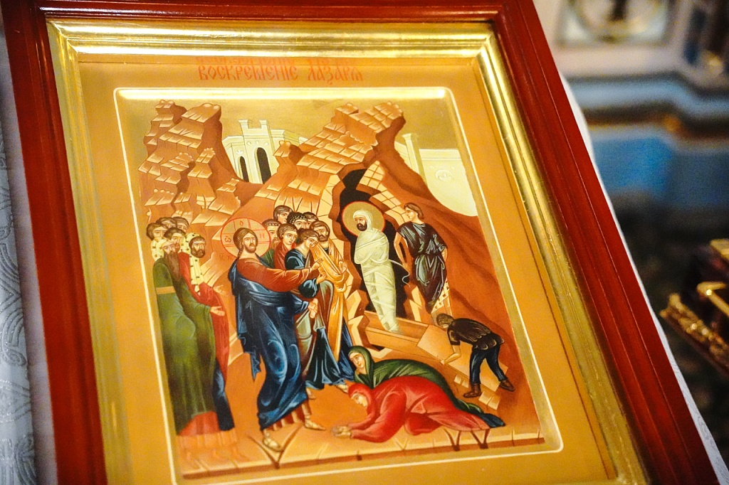 В Лазареву субботу Церковь вспоминает чудо воскрешения Господом Иисусом Христом Четверодневного Лазаря, друга Господня. За богослужением была прочитана глава из Евангелия от Иоанна (Ин. 11:1-45), в которой повествуется о чудесном воскрешении Господом Лазаря.