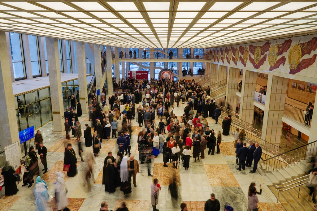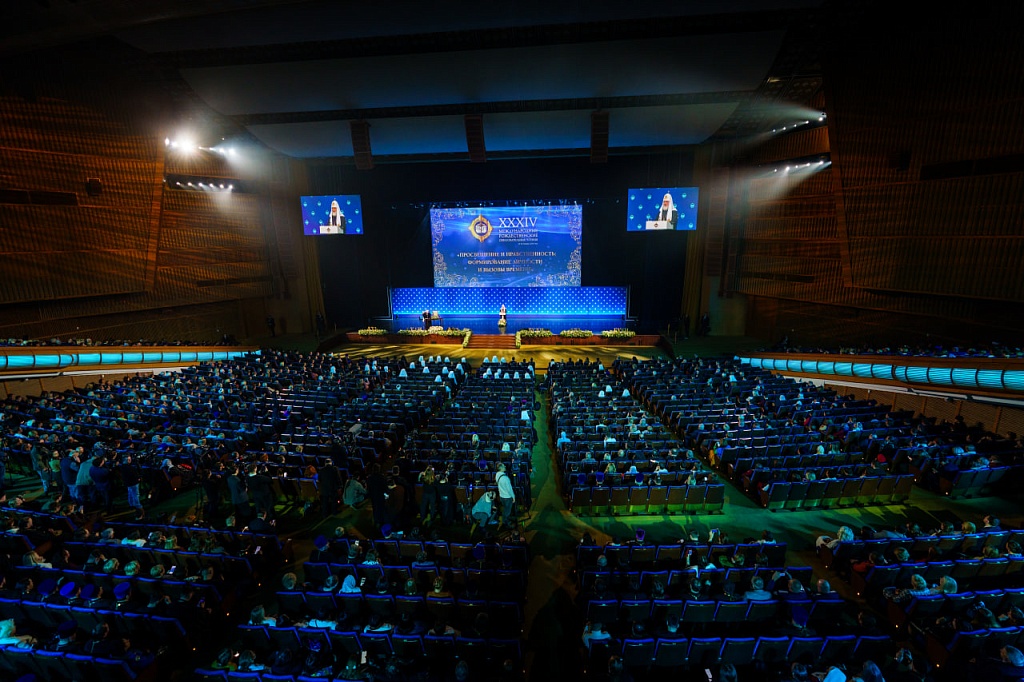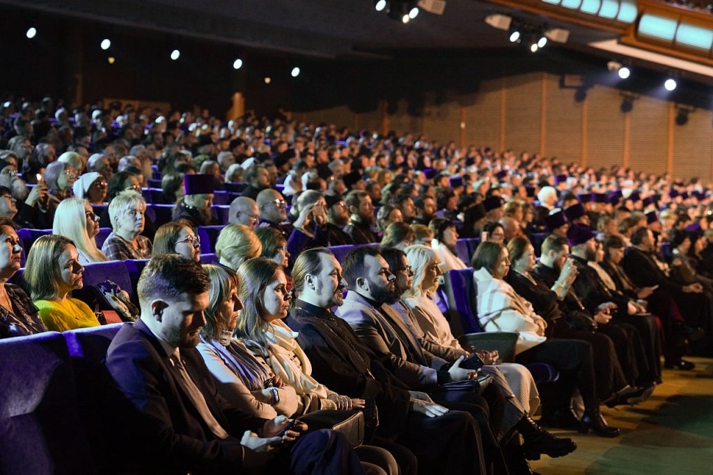 В зале собралось свыше 5 тысяч человек: Преосвященные архипастыри – члены Священного Синода и Высшего Церковного Совета, главы экзархатов, митрополий и епархиальные архиереи Русской Православной Церкви, представители высшей исполнительной и законодательной власти, ректоры вузов, директора и педагоги школ, священнослужители, приходские специалисты, деятели науки и культуры.