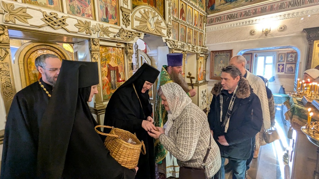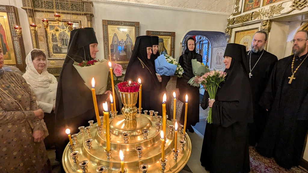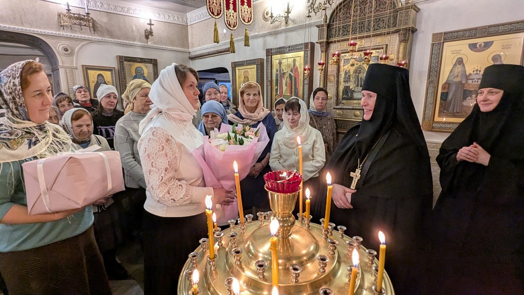После Божественной литургии в храме женской обители игумению Евсевию поздравили клирики во главе с протоиереем Сергием Реснянским, а также сестры и прихожане монастыря.