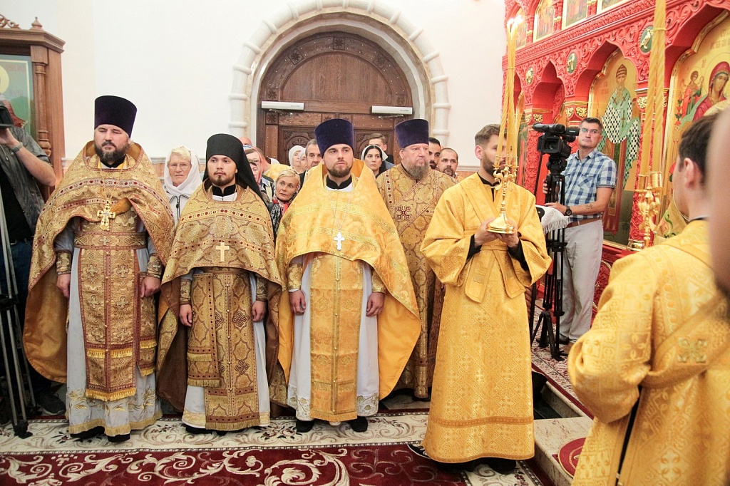 Перед причащением верующих секретарь Челябинской епархии протоиерей Игорь Шестаков произнес слово о наставничестве, без которого невозможно расти и развиваться. Он напомнил, что духовным отцом святого Пантелеимона был пресвитер Ермолай. Оба – и наставник, и ученик – приняли мученические венцы.
