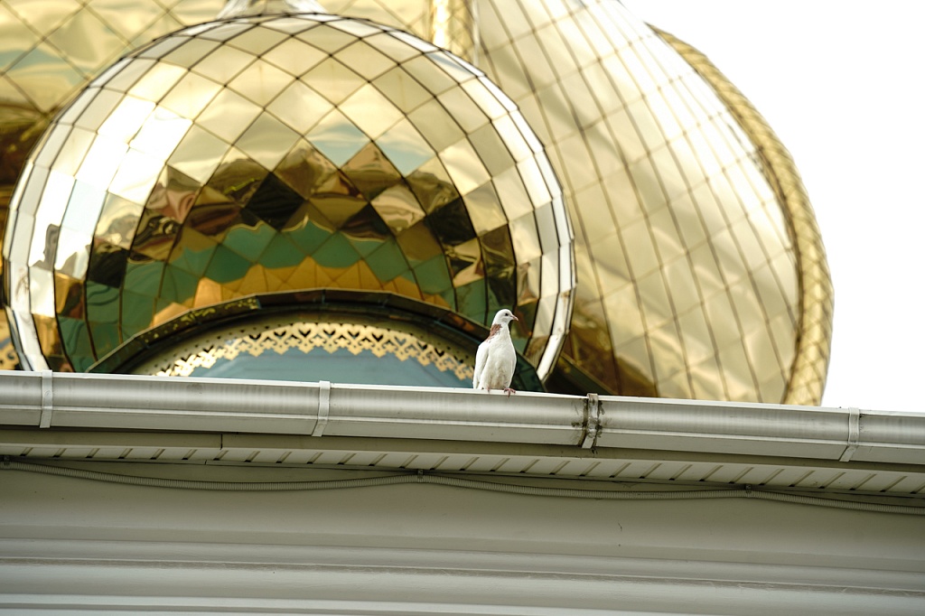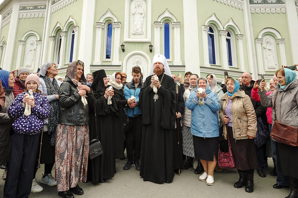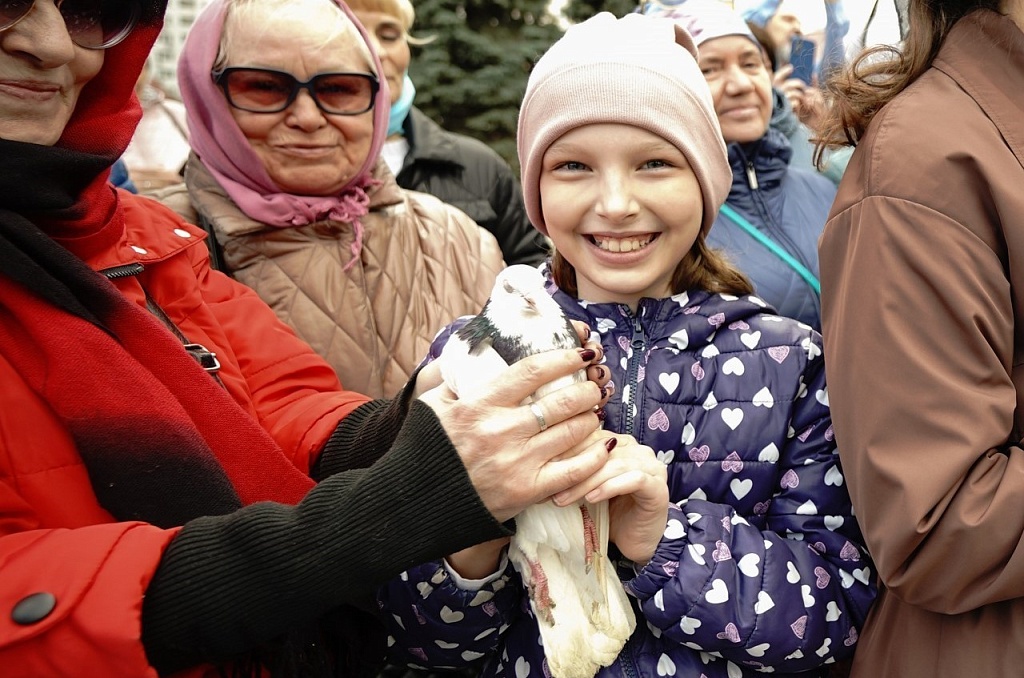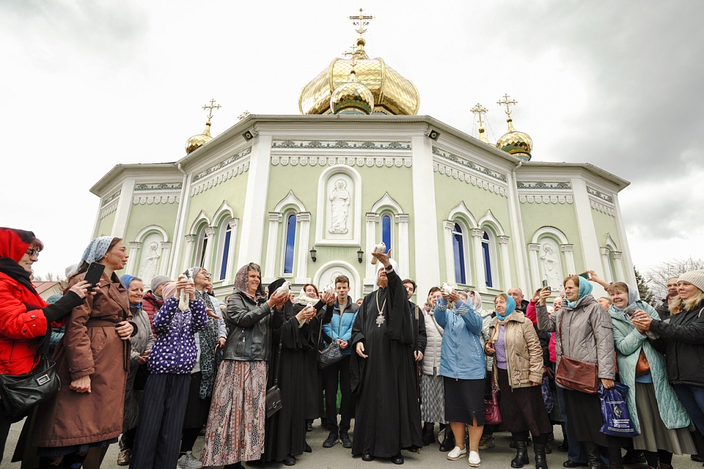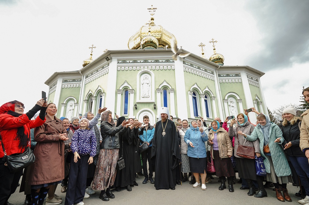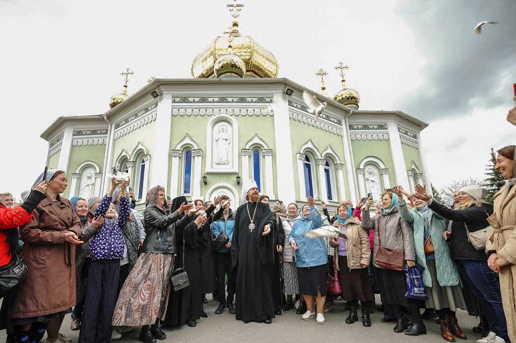 После богослужения митрополит Алексий и прихожане выпустили в небо у стен храма белых голубей. Эти птицы всегда были символом добрых вестей и символом освобождения человечества из-под власти греха после воплощения Спасителя. В православной традиции голубь также символизирует Духа Святого, Третье Лицо Святой Троицы.