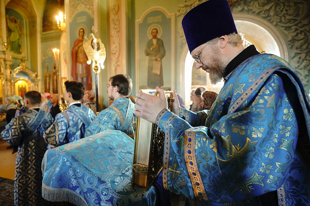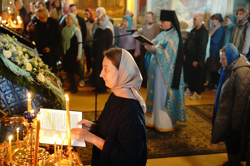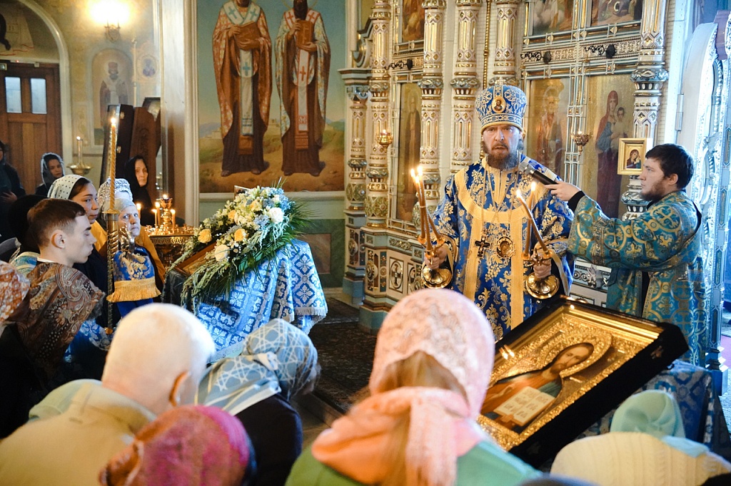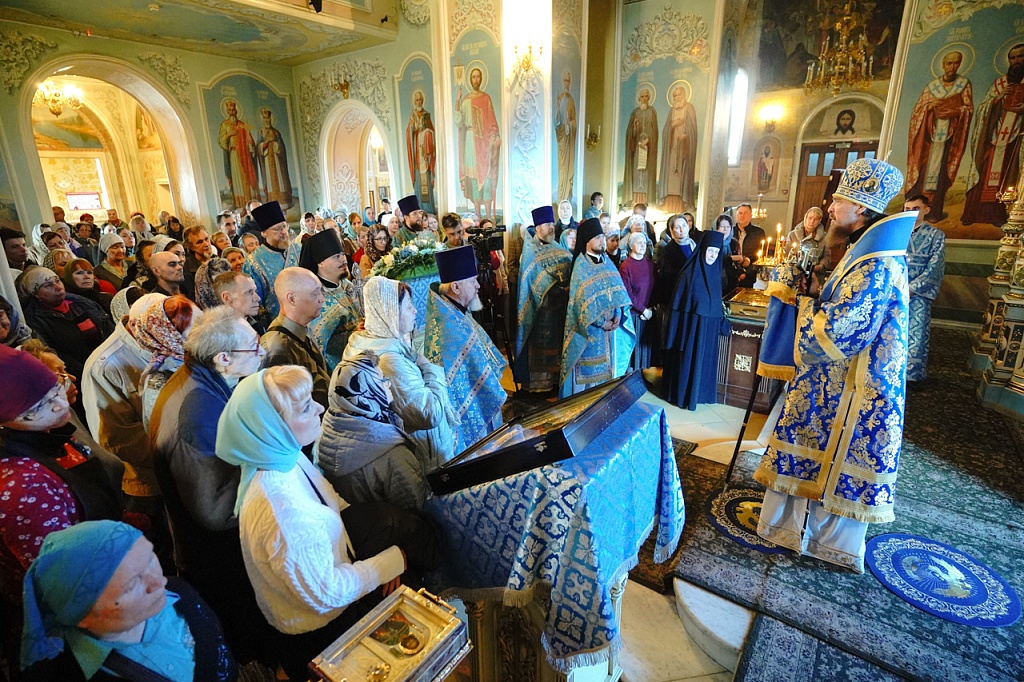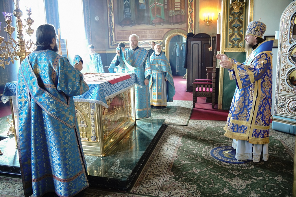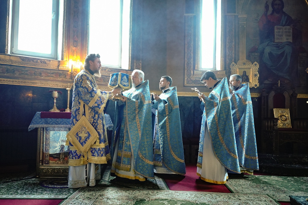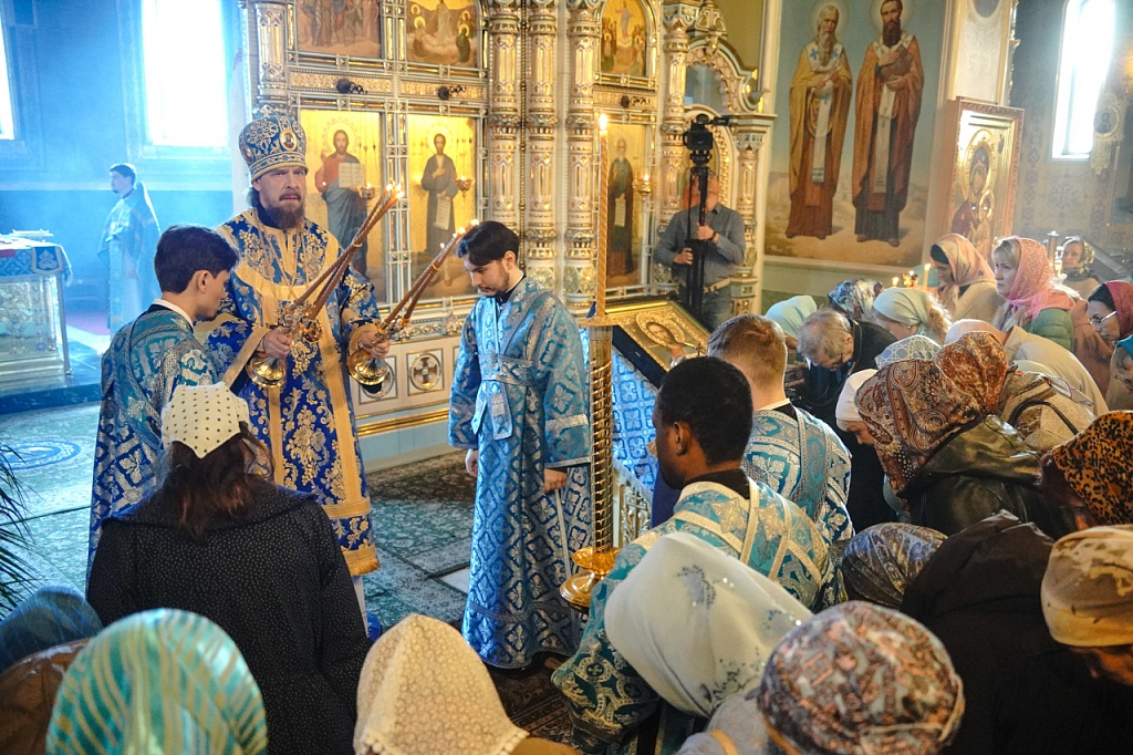 Перед чтением Евангелия читались паремии из книг Ветхого завета, прообразовательно говорящие о Пресвятой Богородице и домостроительстве нашего спасения. Богослужение завершилось молебном ко Пресвятой Богородице с пением «Взбранной Воеводе победительная».
