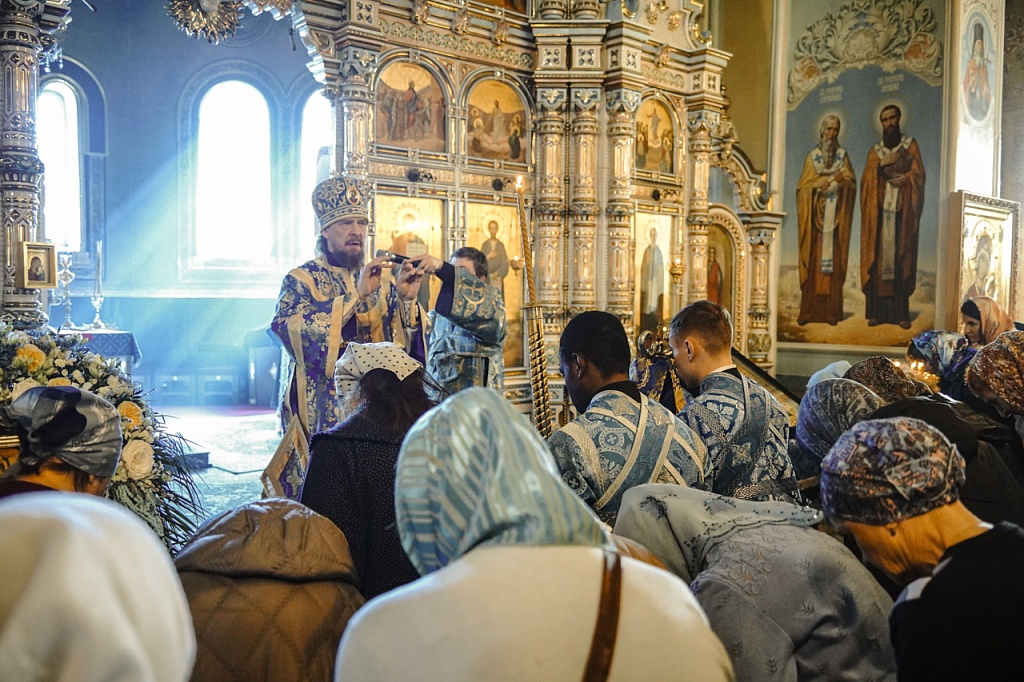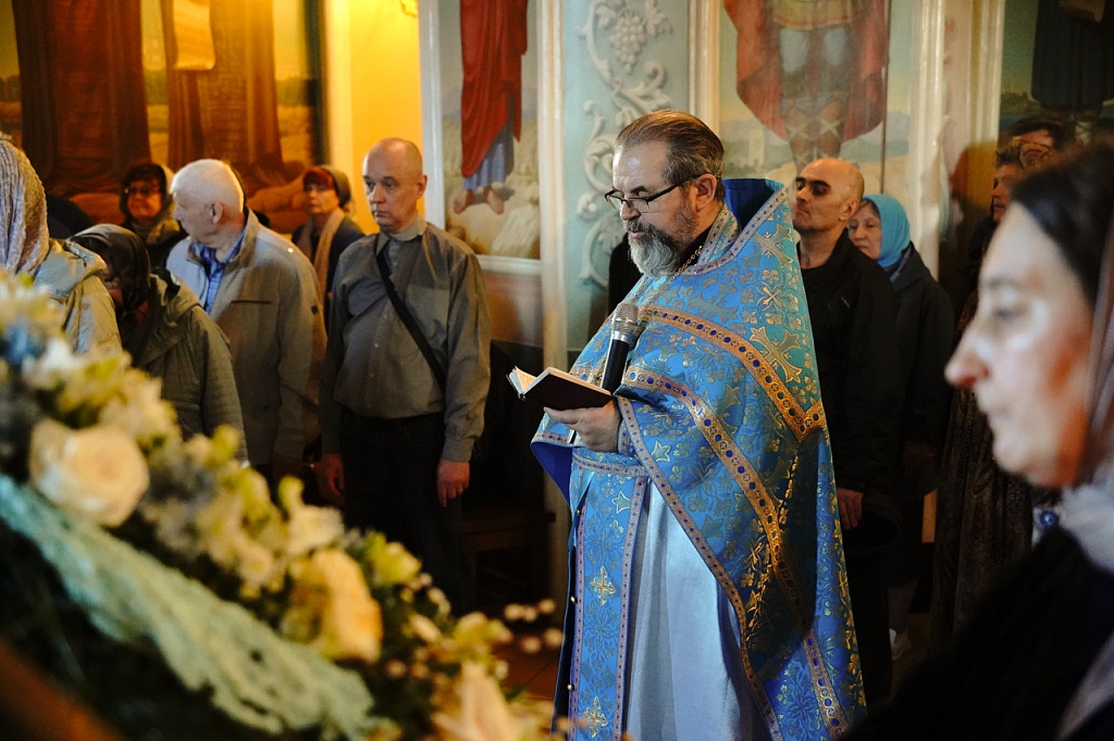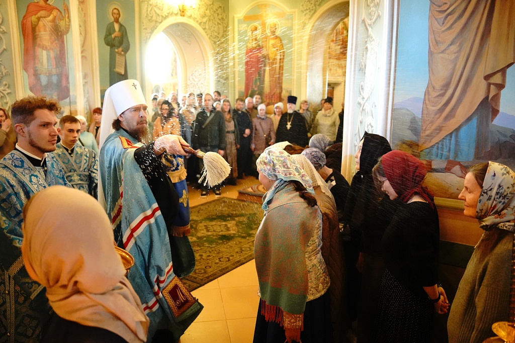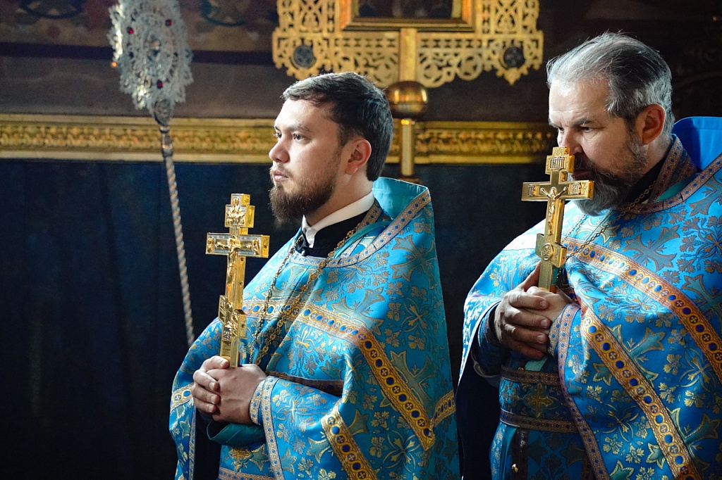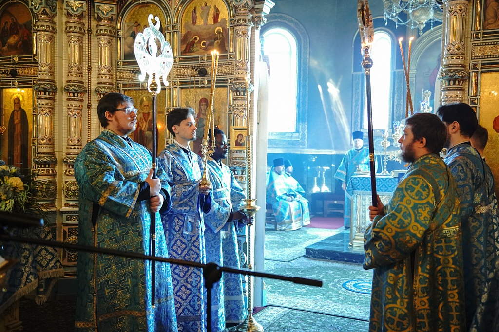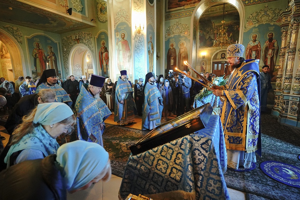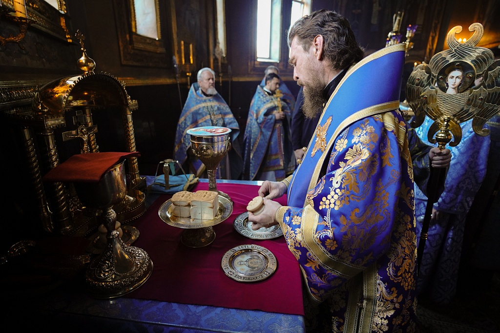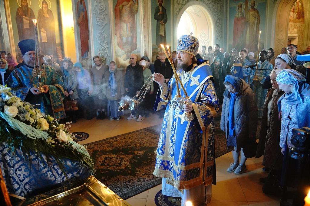 Перед чтением Евангелия читались паремии из книг Ветхого завета, прообразовательно говорящие о Пресвятой Богородице и домостроительстве нашего спасения. Богослужение завершилось молебном ко Пресвятой Богородице с пением «Взбранной Воеводе победительная».