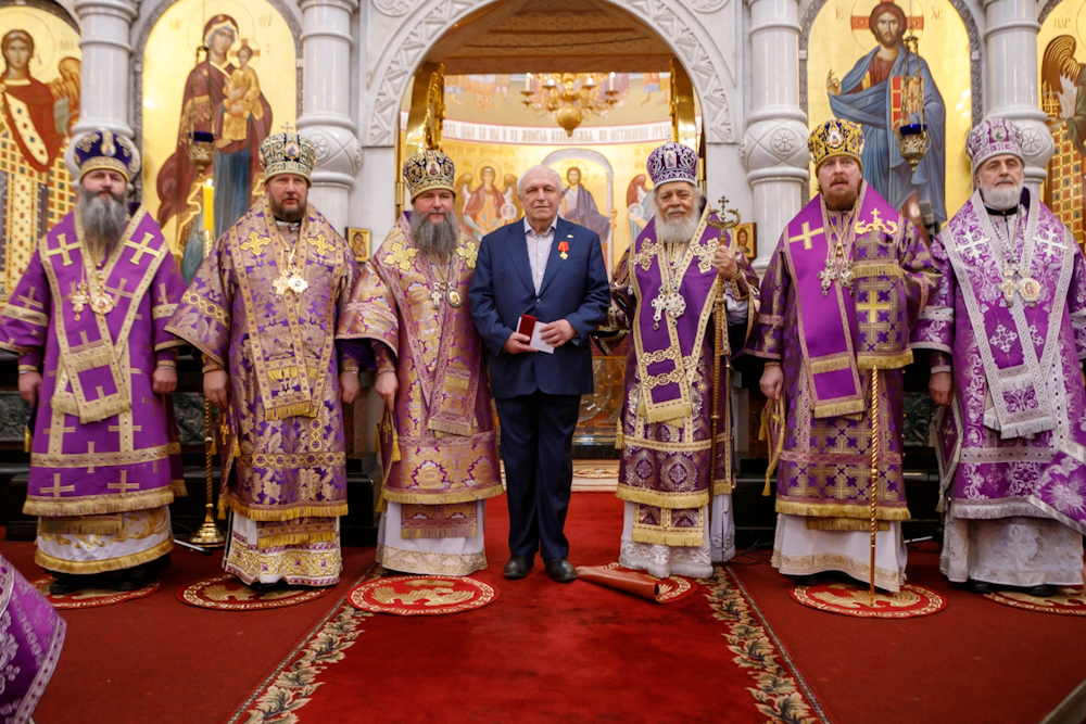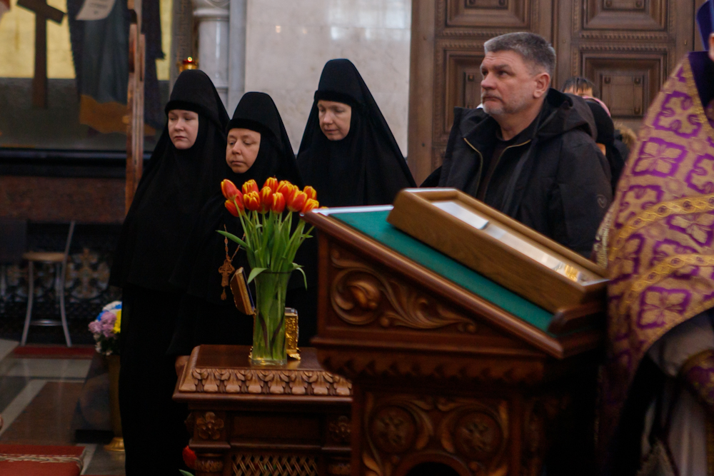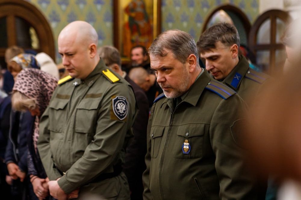 За литургией молились войсковой атаман Оренбургского войскового казачьего общества казачий генерал Владимир Иванович Романов и казаки ОВКО. Звучали молитвы на разных языках — по принадлежности к Поместным Православным Церквям прибывшего духовенства и паломников, молящихся за литургией. Шесть архиереев, в том числе представителей Поместных Церквей, вознесли молитвы о восстановлении мира.