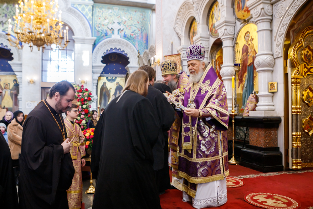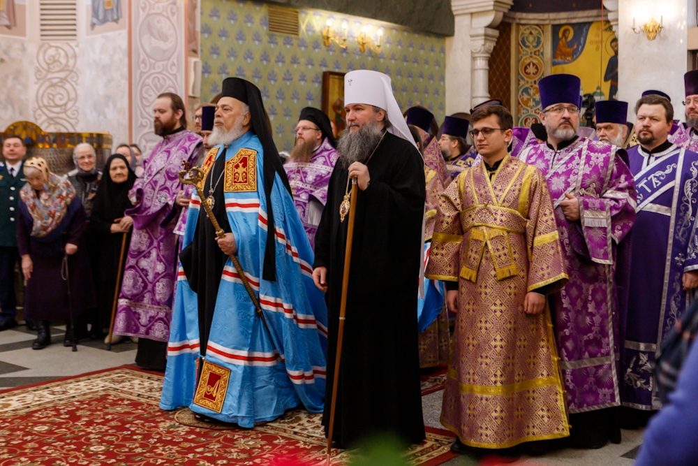 За богослужением вместе с митрополитом Екатеринбургским и Верхотурским Евгением молились пять архиереев: митрополит Филиппопольский Нифон, представитель Патриарха Антиохийского и всего Востока при Патриархе Московском и всея Руси, настоятель Антиохийского подворья в Москве; митрополит Челябинский и Миасский Алексий; епископ Моравичский Антоний, викарий Святейшего Патриарха Сербского; епископ Шадринский и Далматовский Владимир; епископ Нижнетагильский и Невьянский Феодосий.