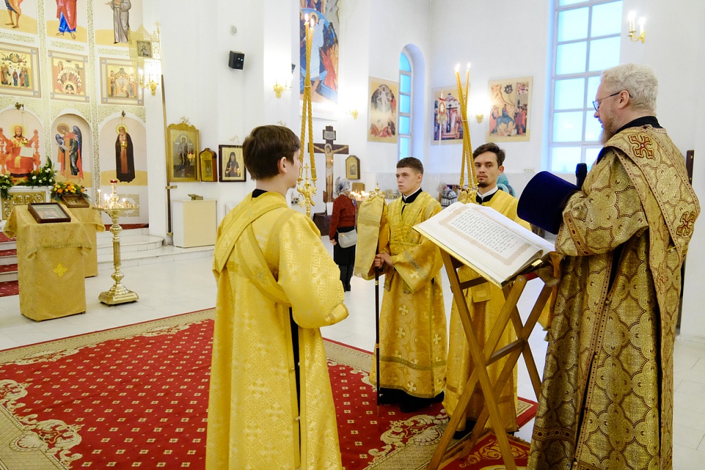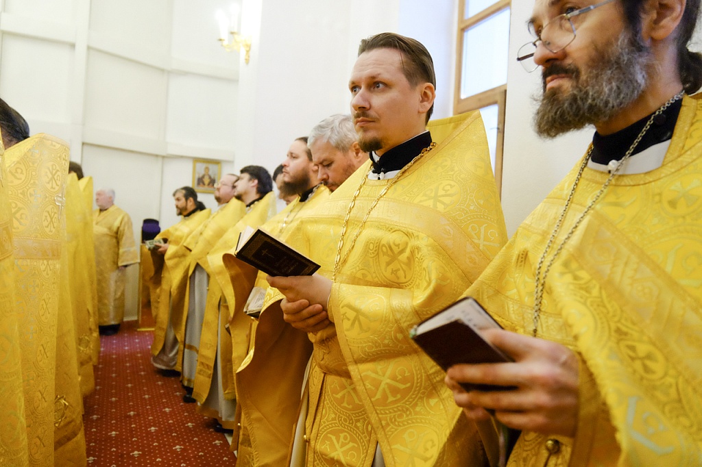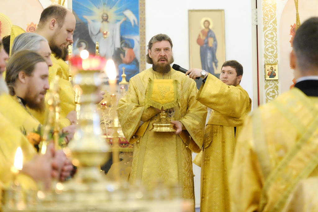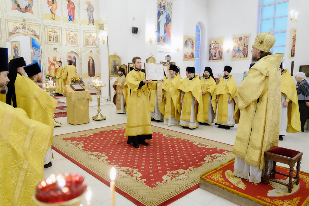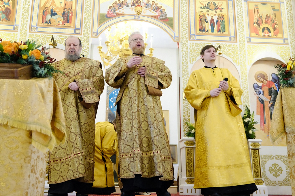 Правящему архиерею сослужили секретарь Челябинской епархии протоиерей Игорь Шестаков, секретарь Златоустовского епархиального управления протоиерей Андрей Фоменко, секретарь епархиального совета, ключарь Серафимовского собора иерей Андрей Тарасов и многочисленное духовенство Златоустовской епархии.
