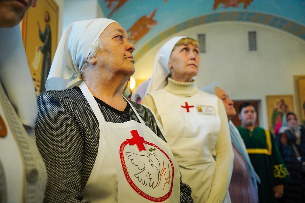 Заповеди о любви к Богу и любви к ближним в храме блаженной Ксении Петербургской исполняют, поддерживая многих горожан. Сестры милосердия помогают пациентам больниц подготовиться к Таинствам, а все вместе прихожане собирают нужные вещи для воинов и отправляют на фронт.