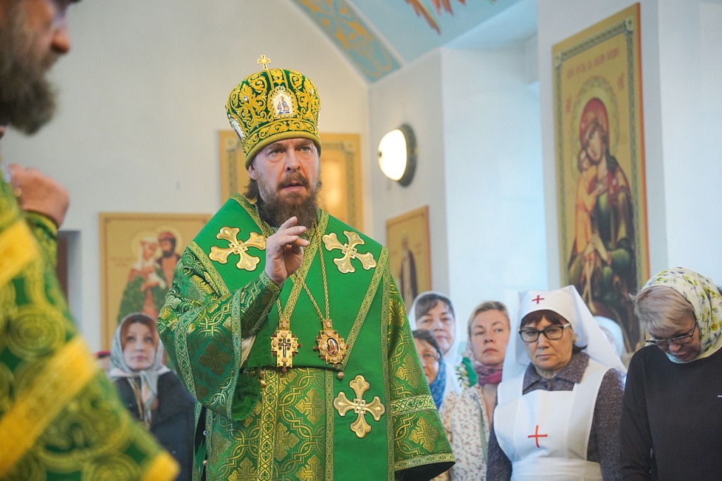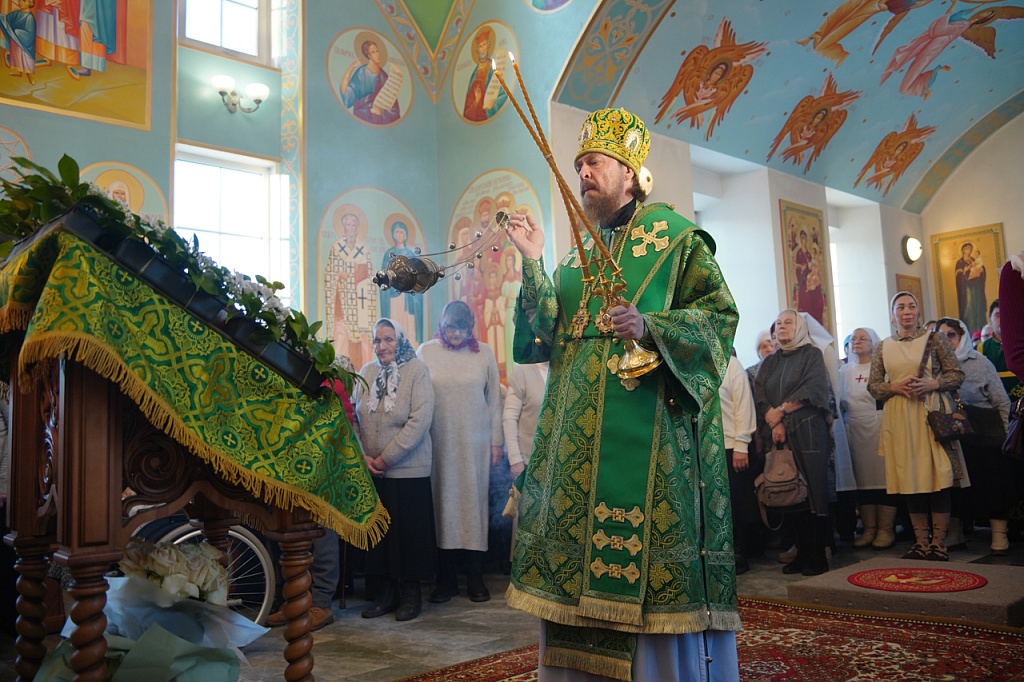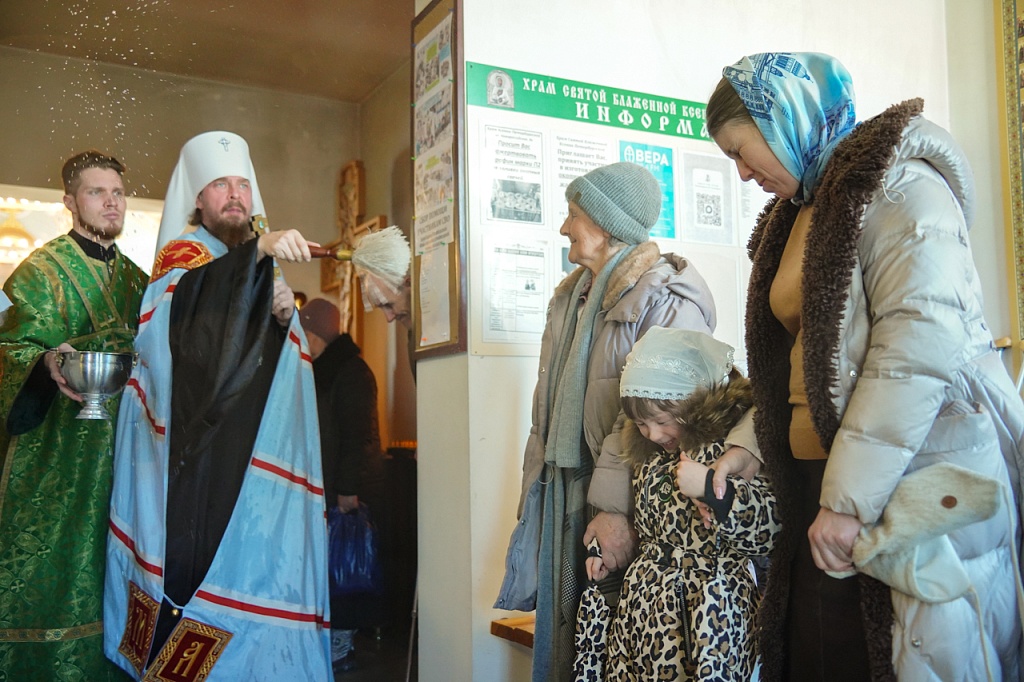 Владыка Алексий в проповеди поздравил всех с праздником и напомнил, что святая Ксения приняла подвиг юродства за супруга, который не смог принести покаяние перед внезапной кончиной. Это служит примером христианского поступка для нас.