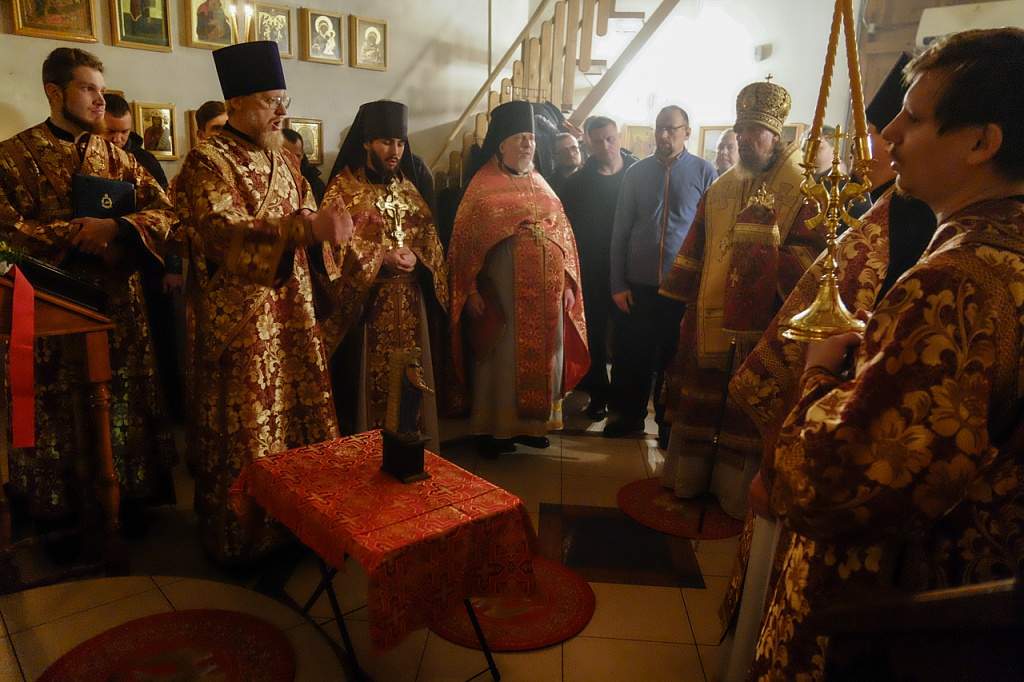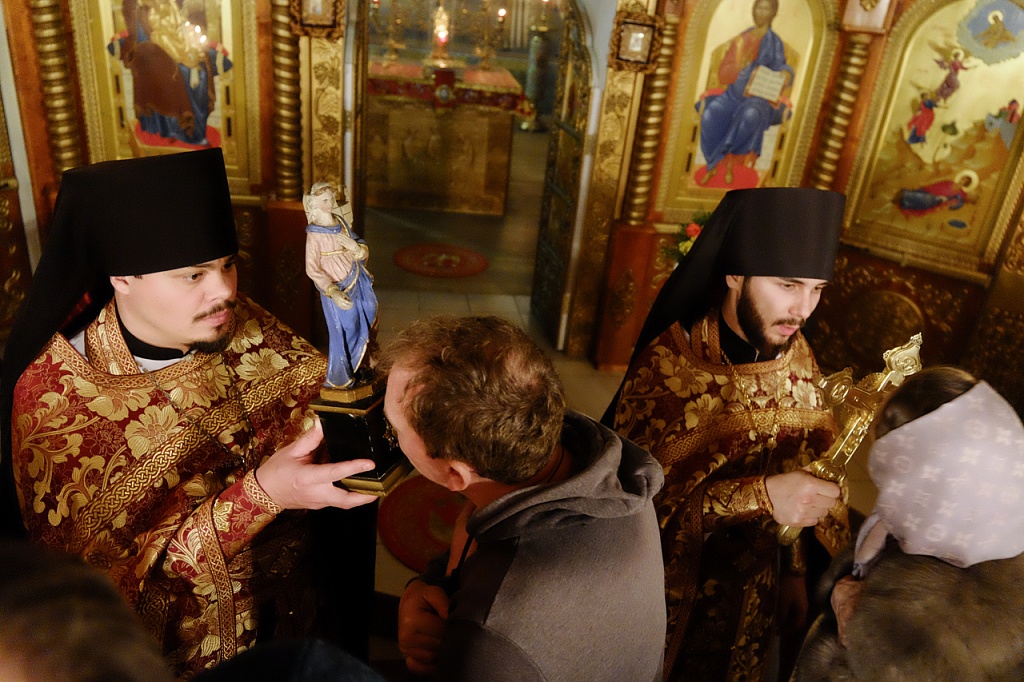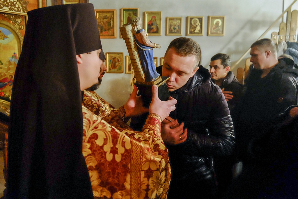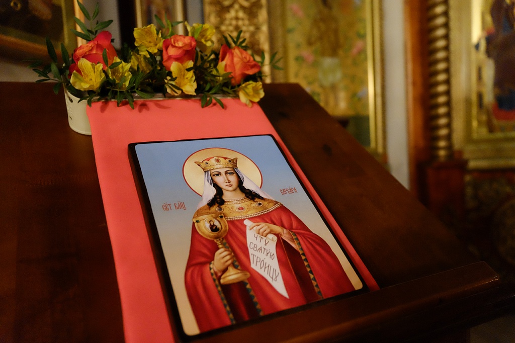 Перед началом богослужения в храм был принесен ковчег с частью мощей великомученицы Варвары, и у всех прихожан была возможность поклониться угоднице Божией.