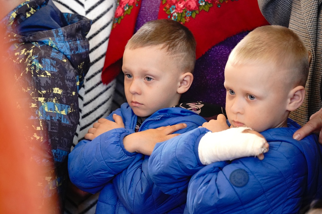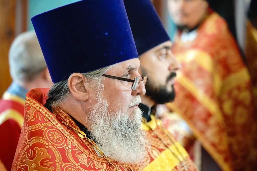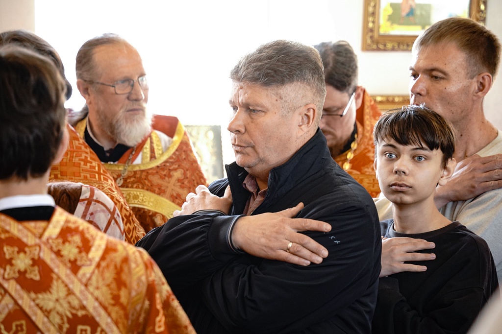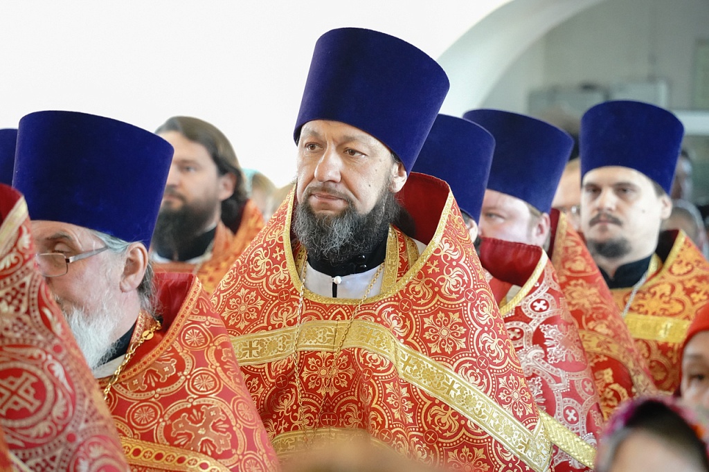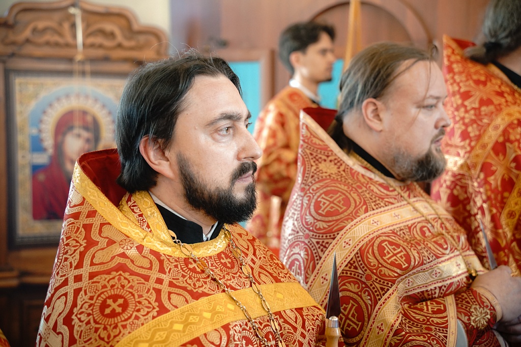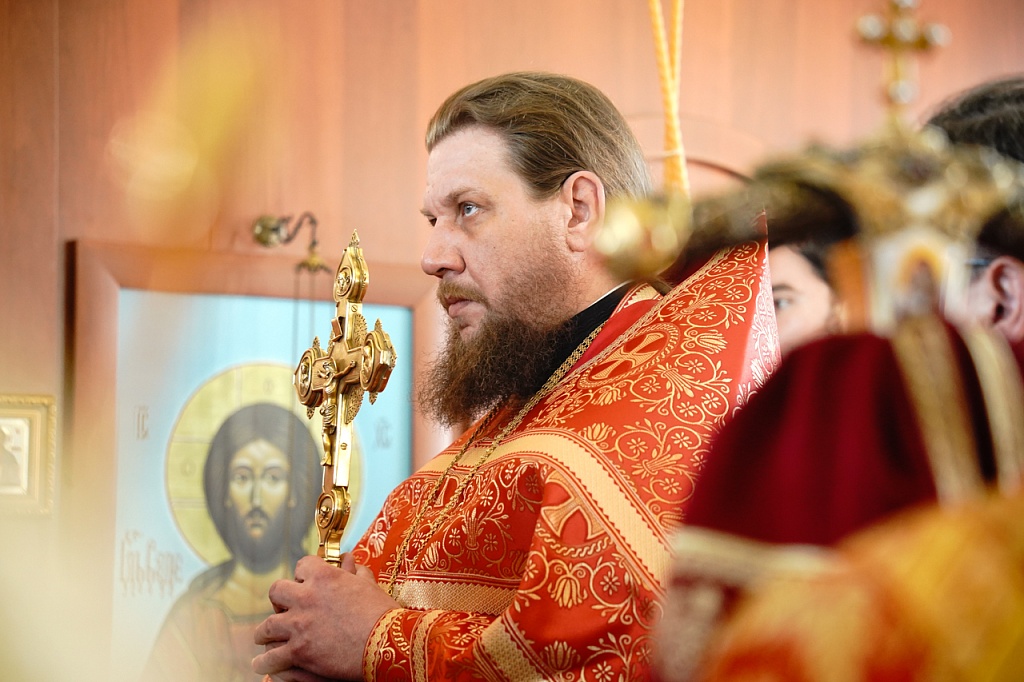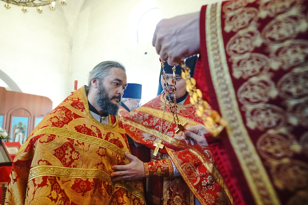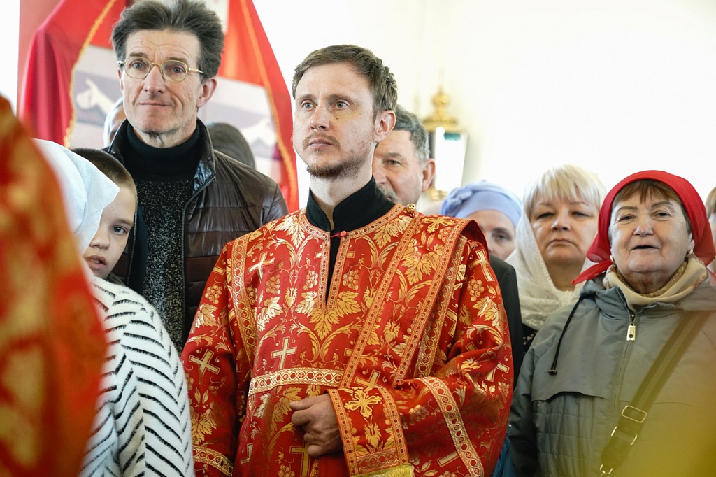 За богослужением митрополит Алексий наградил правом ношения наперсного креста золотого цвета настоятеля храма Вознесения Господня в поселке Синеглазово иерея Димитрия Писарева и клирика Свято-Троицкого храма села Долгодеревенское иерея Максима Малашенко.