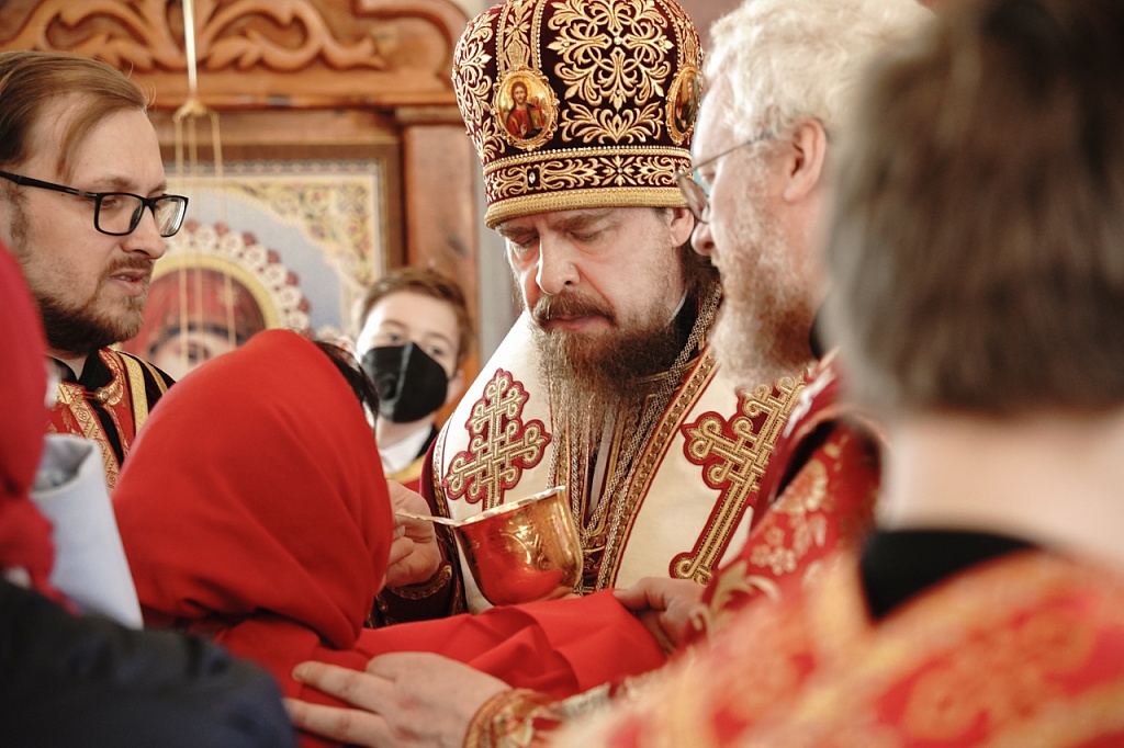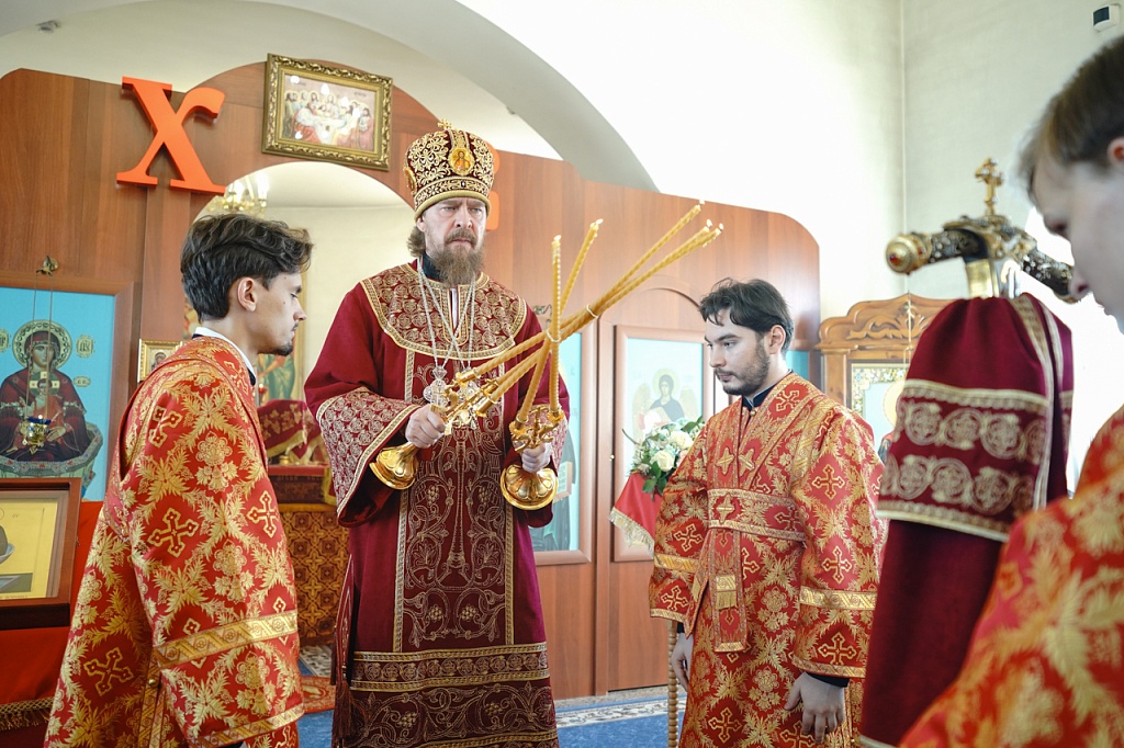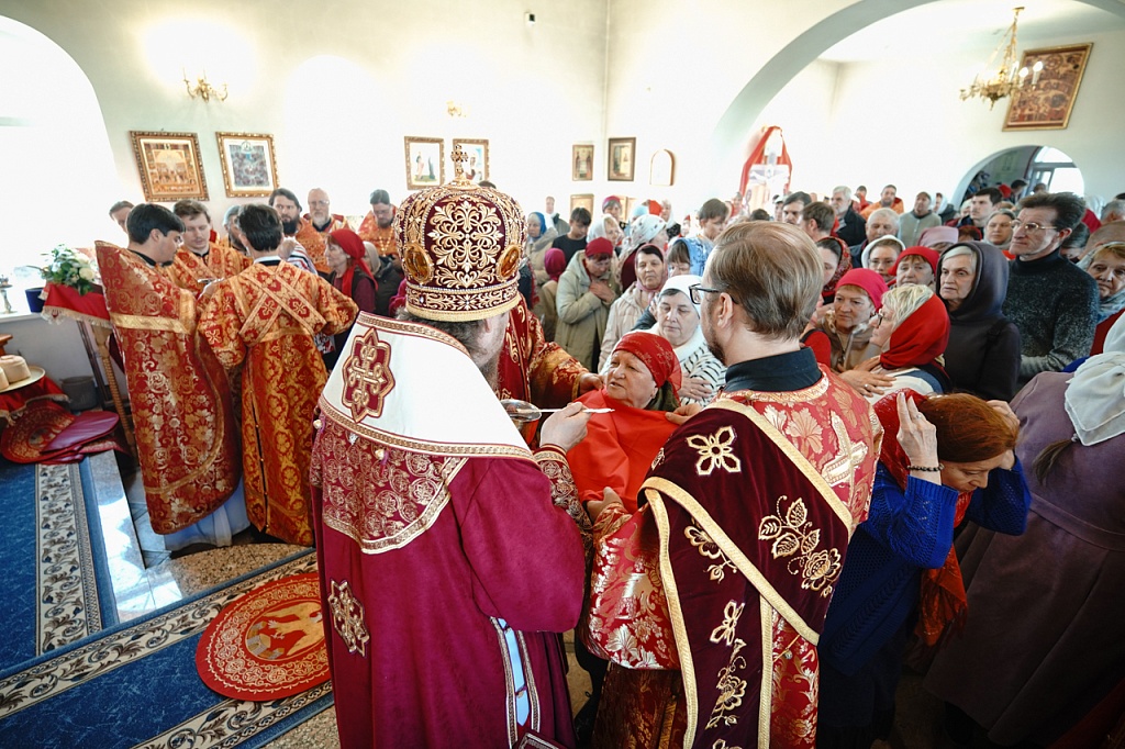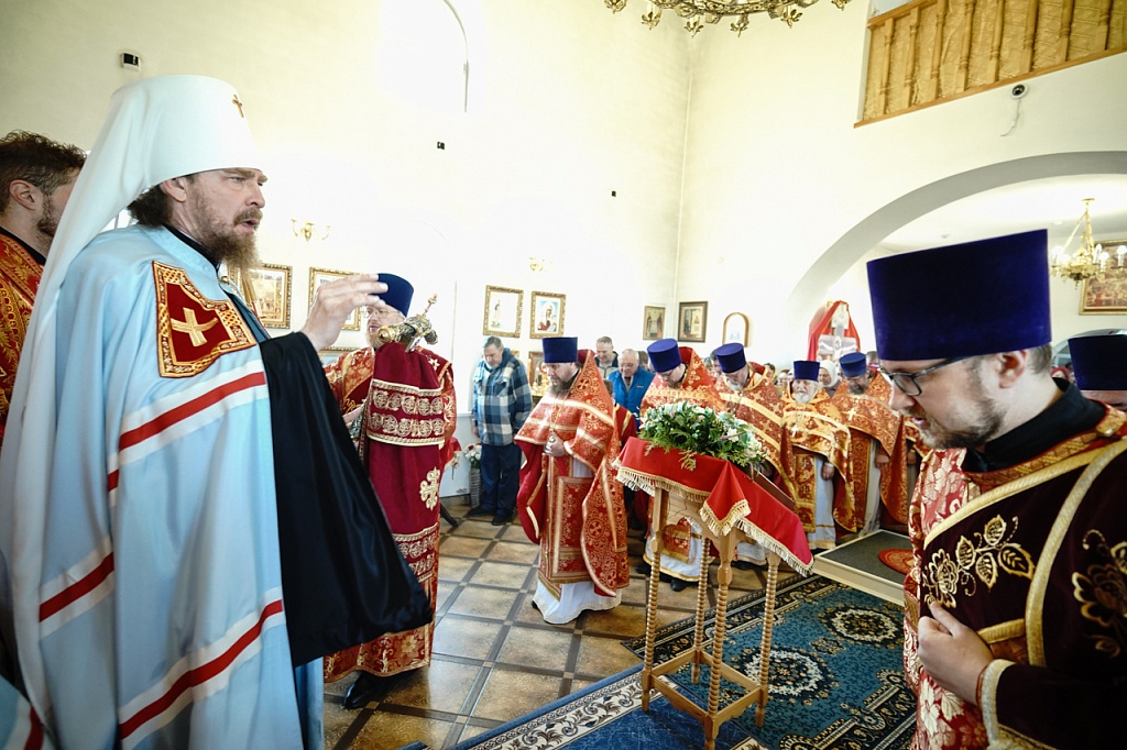 Правящему архиерею сослужили настоятель храма иерей Александр Квач и священнослужители Сосновского, Копейско-Коркинского, Миасско-сельского благочиний. Песнопения службы исполнил Архиерейский квартет под управлением регента Марины Гоман.