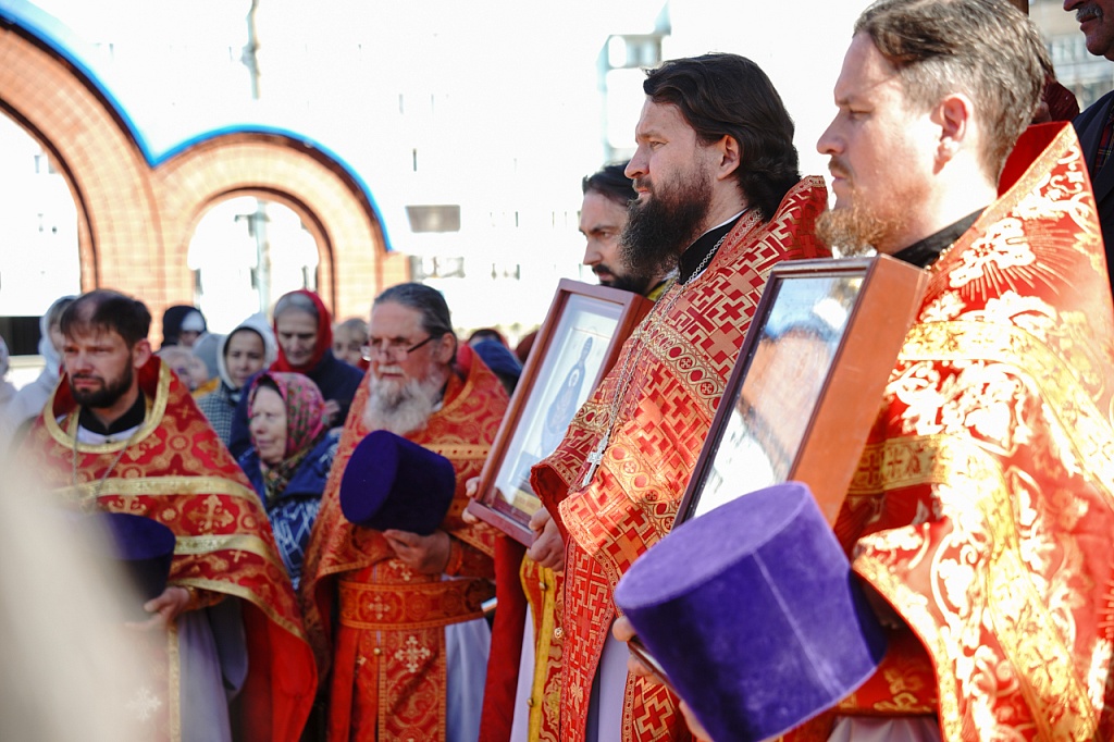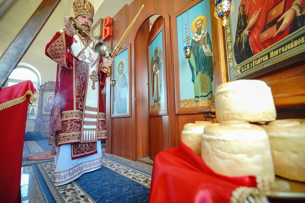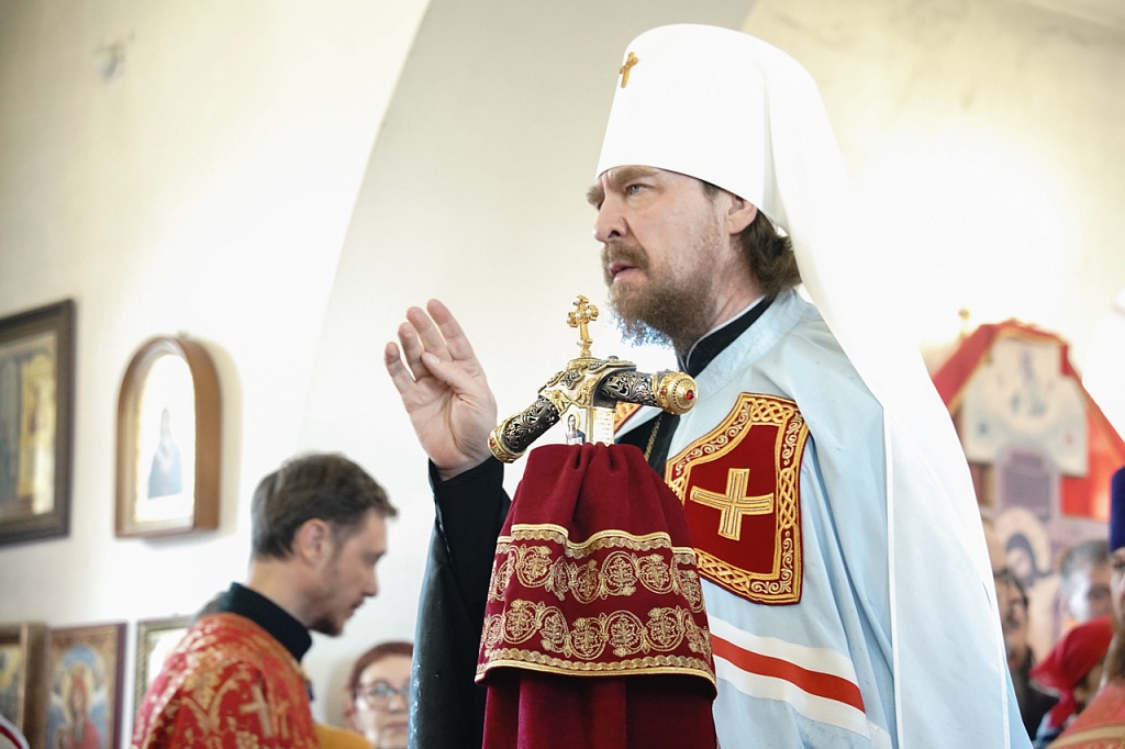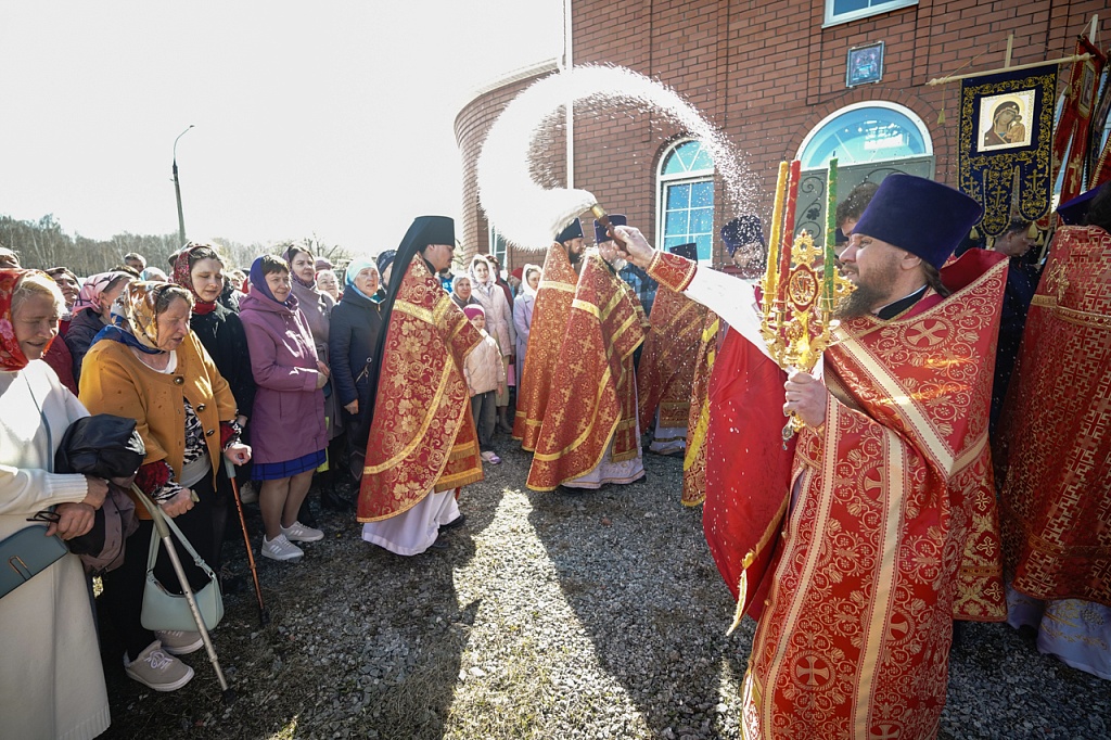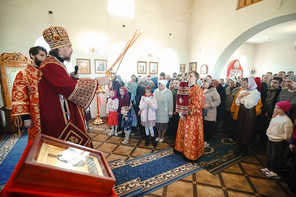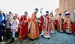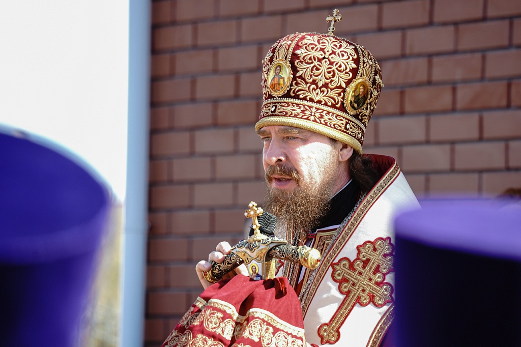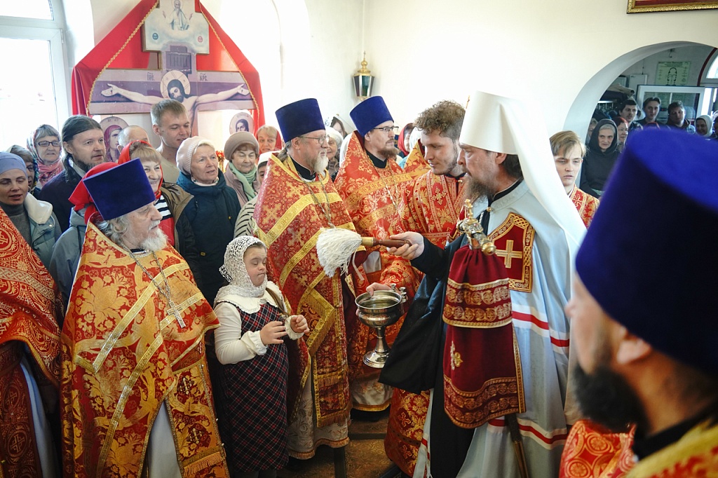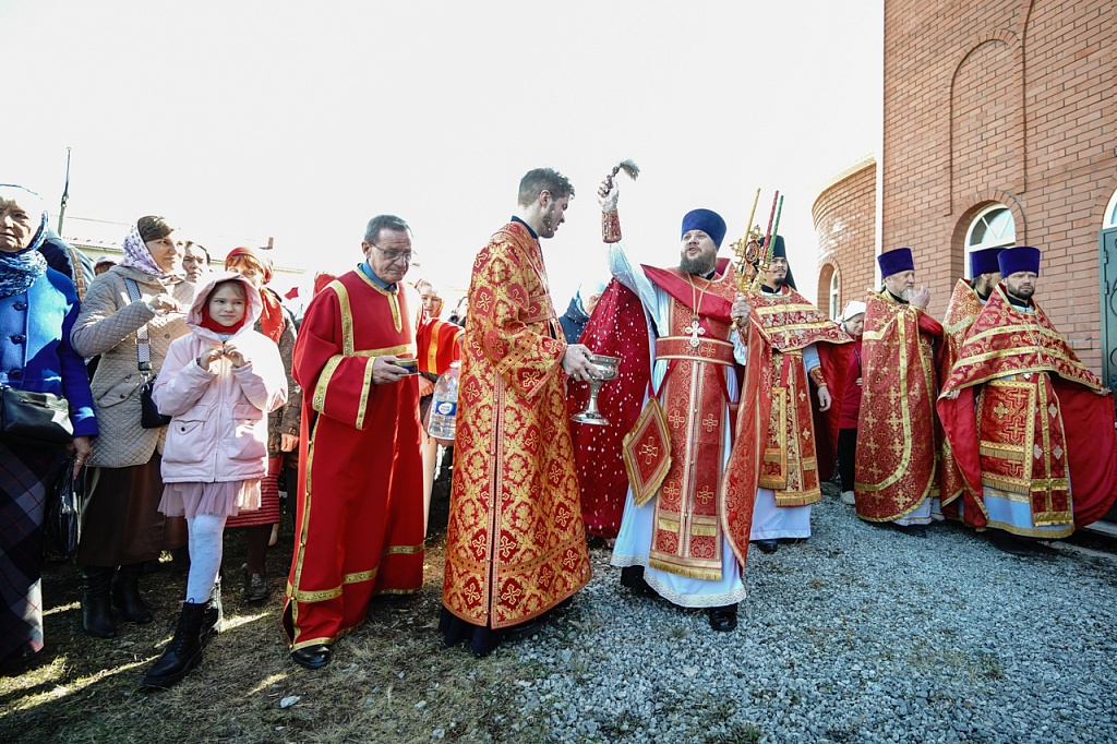 После Литургии правящий архиерей совершил малое освящение воды. Затем духовенство и прихожане обошли храм крестным ходом.