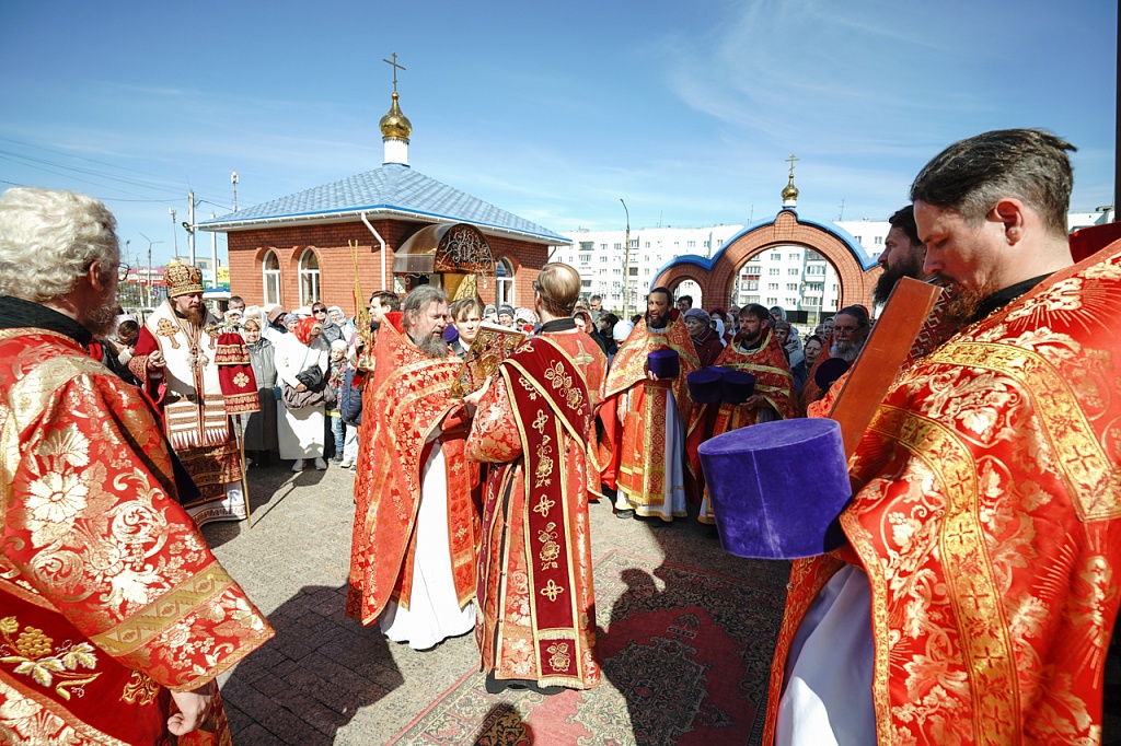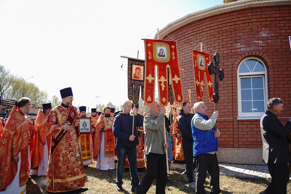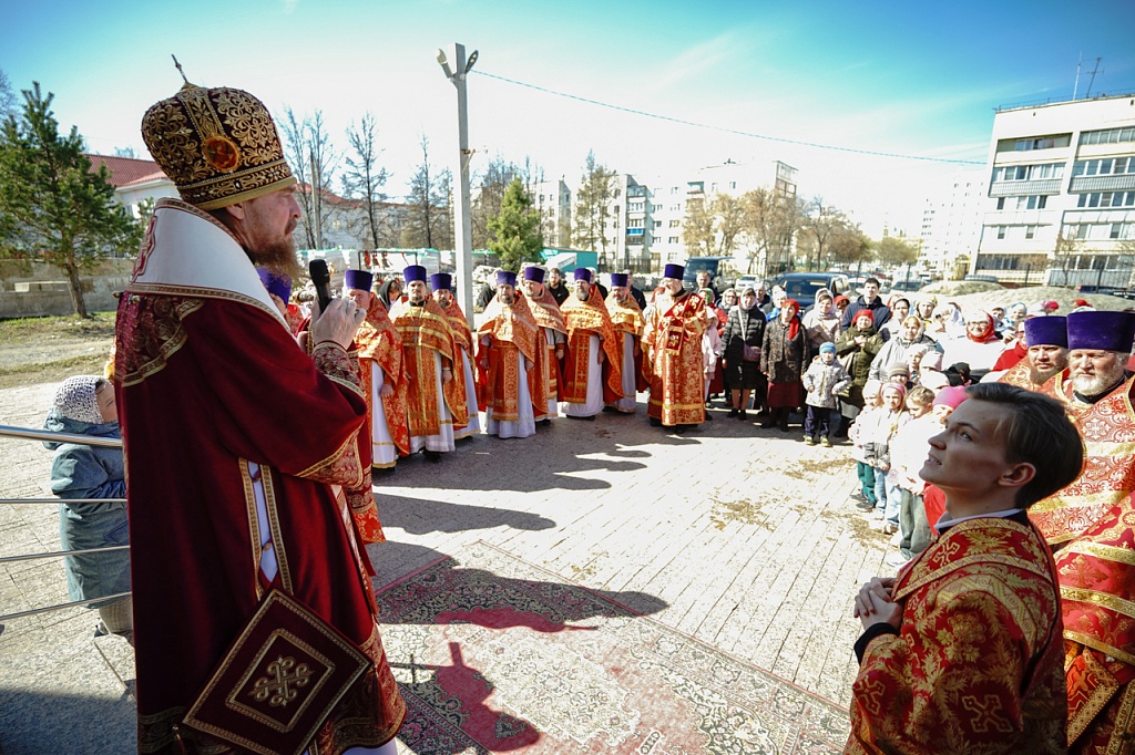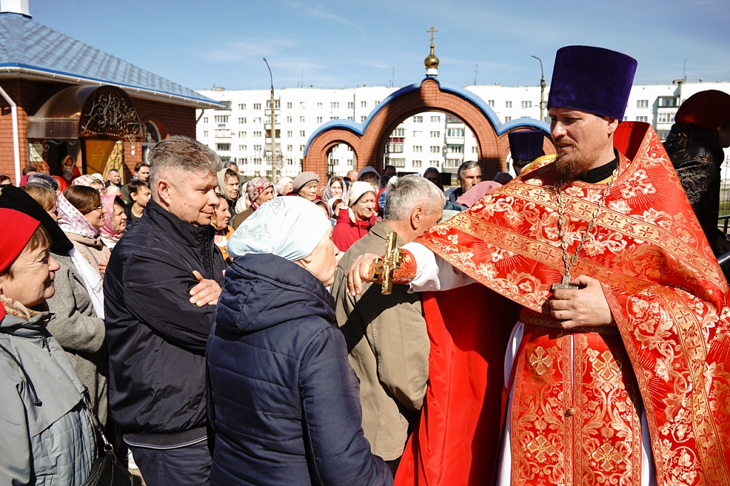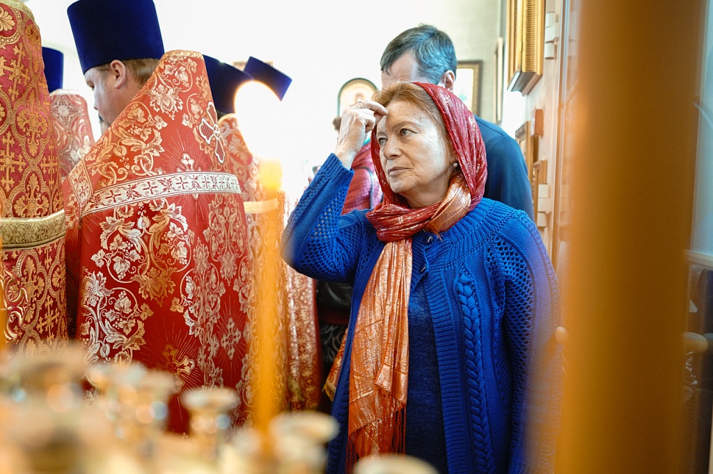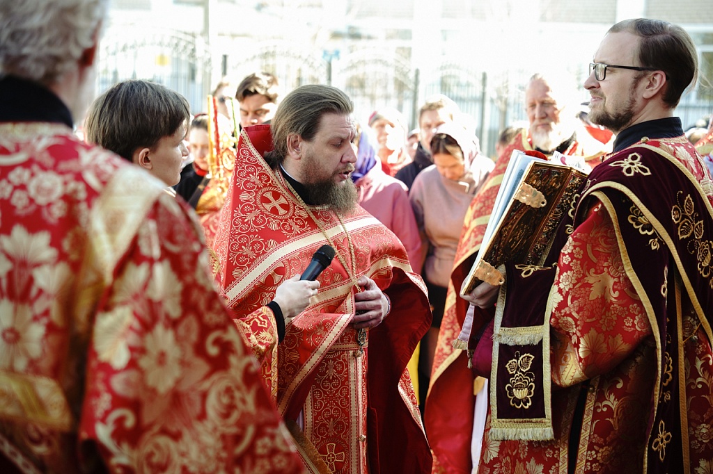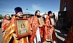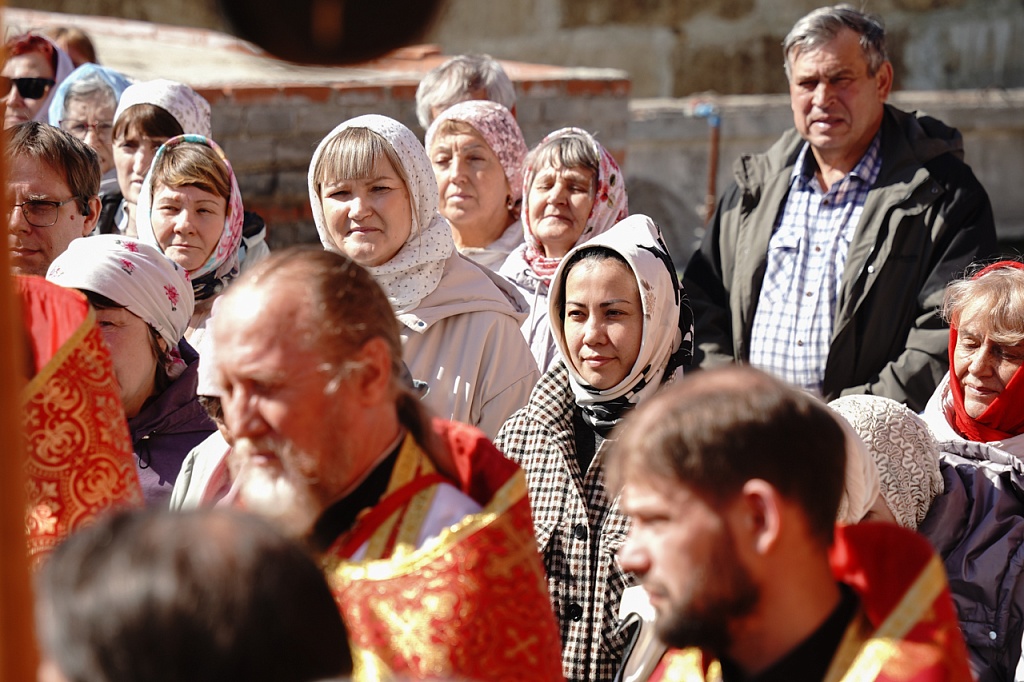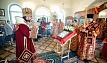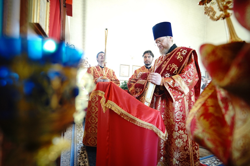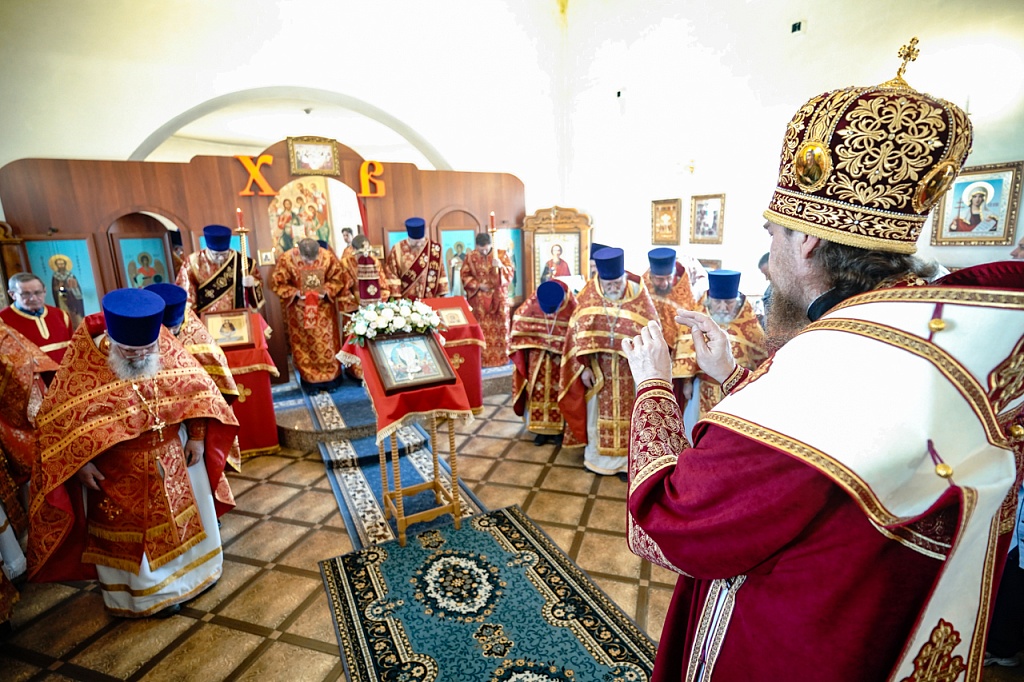 После Литургии правящий архиерей совершил малое освящение воды. Затем духовенство и прихожане обошли храм крестным ходом.