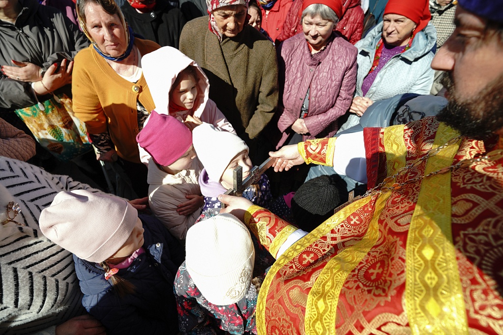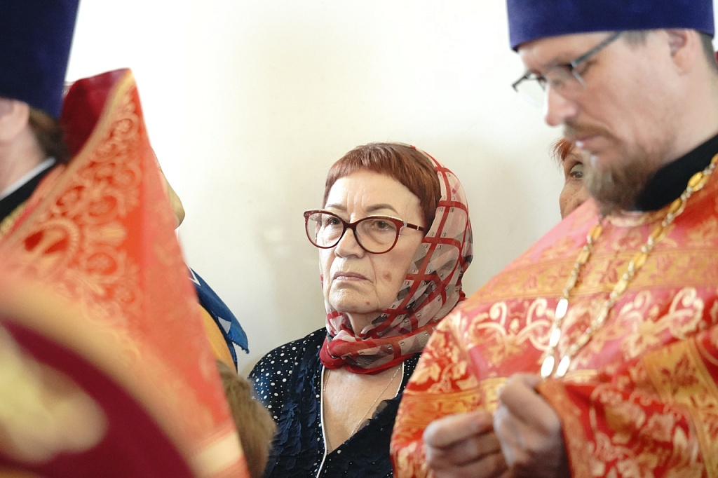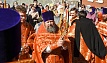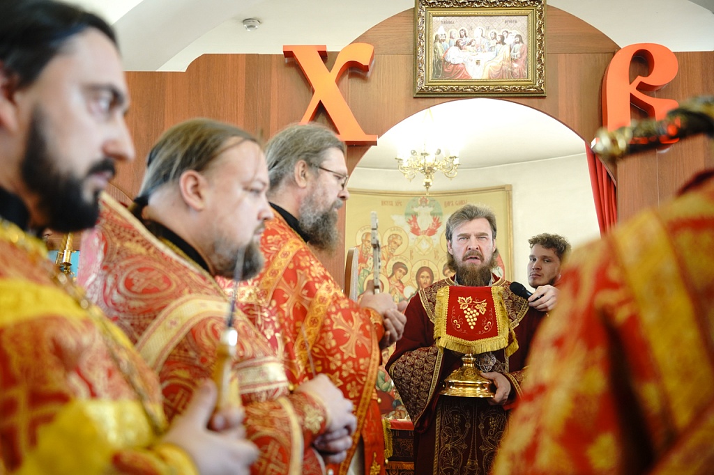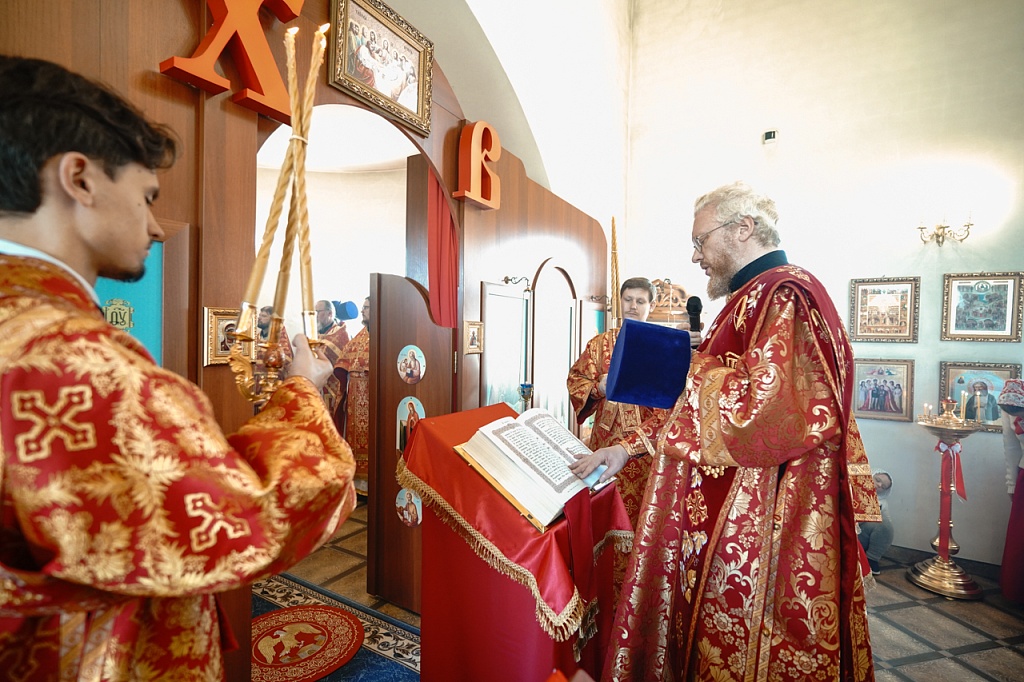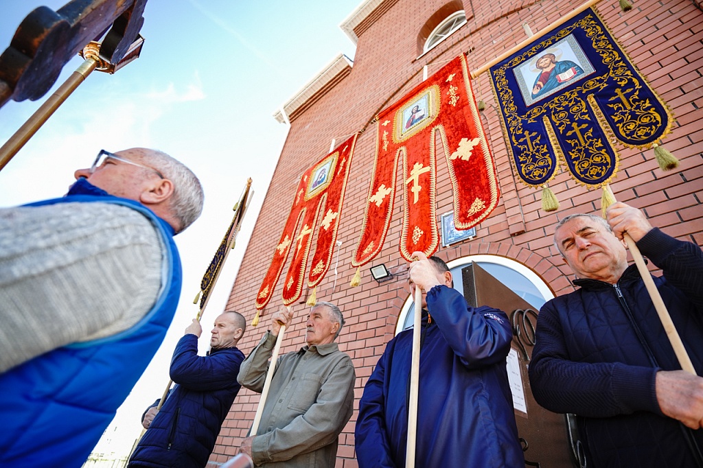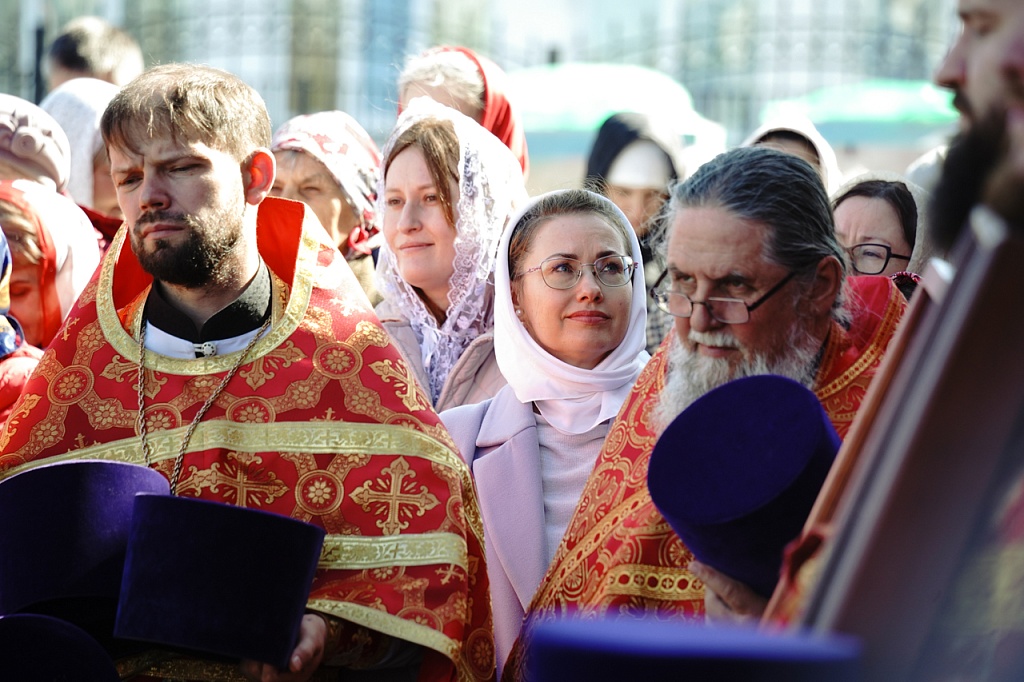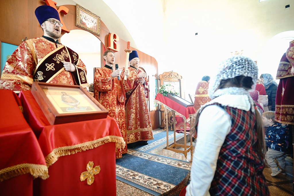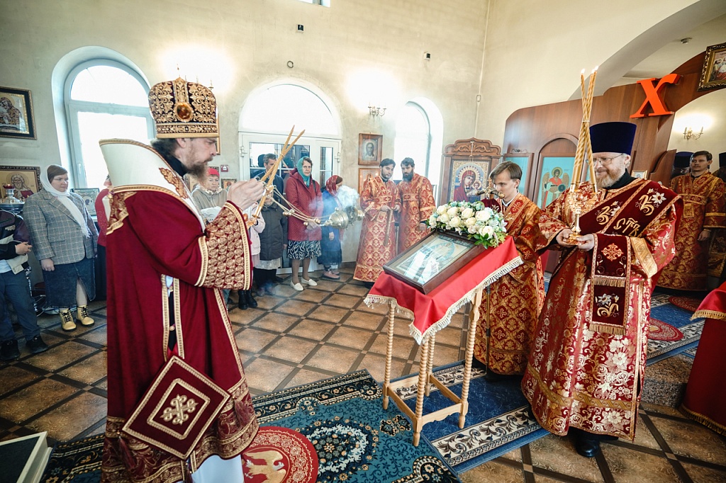После Литургии правящий архиерей совершил малое освящение воды. Затем духовенство и прихожане обошли храм крестным ходом.