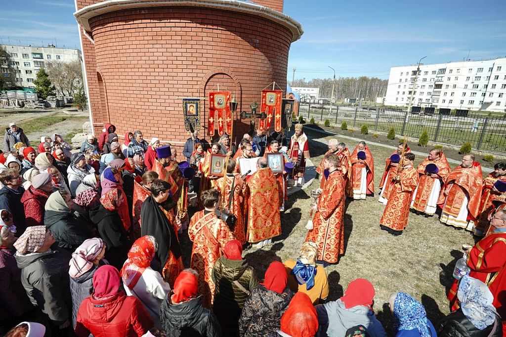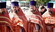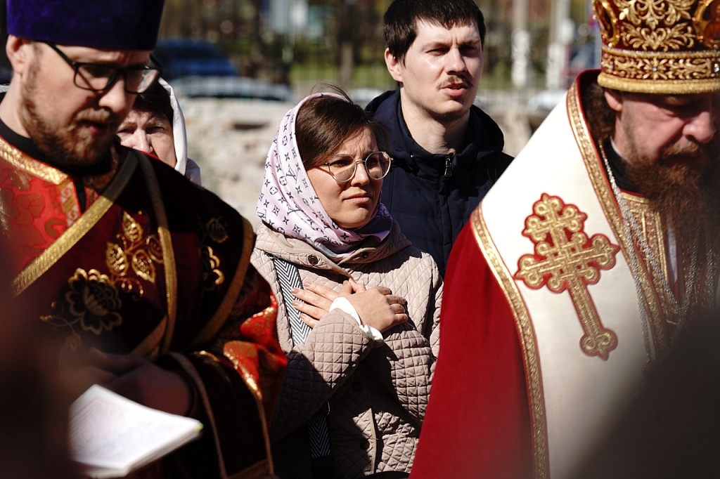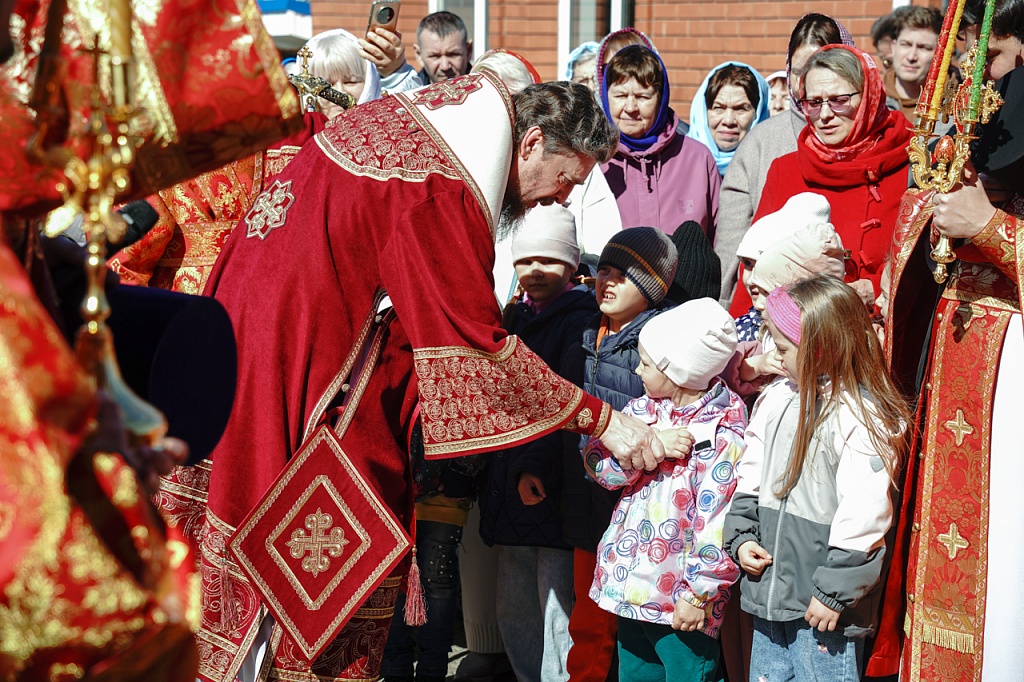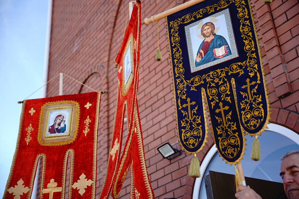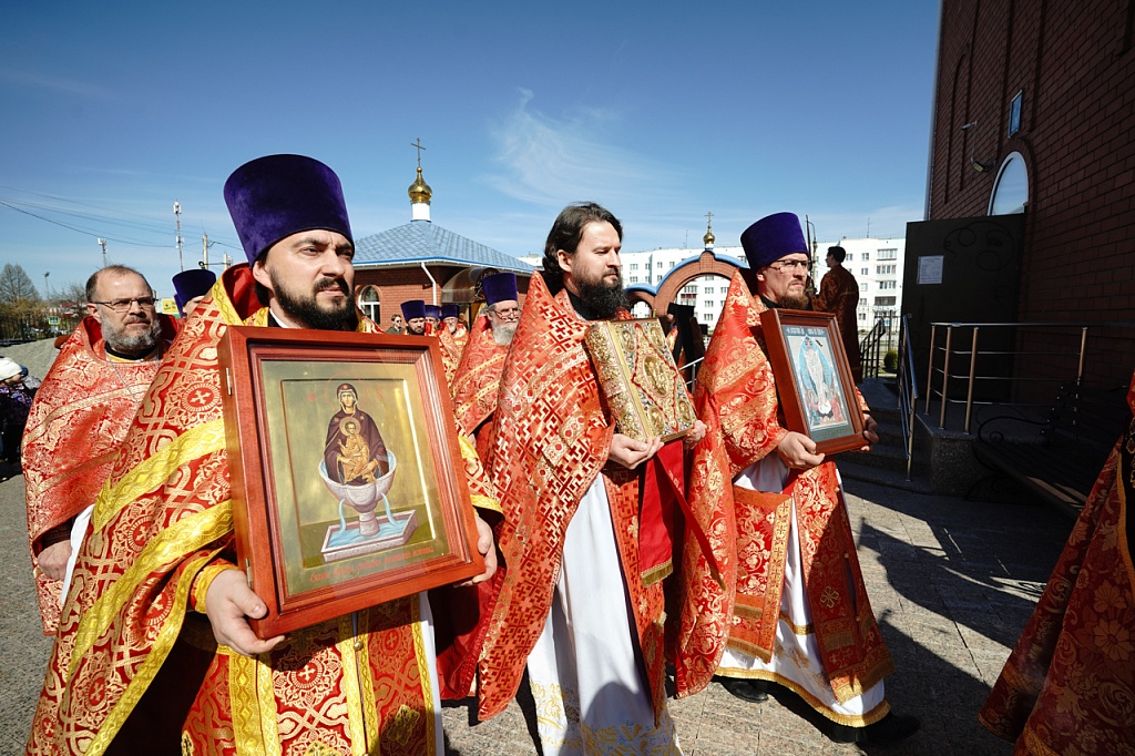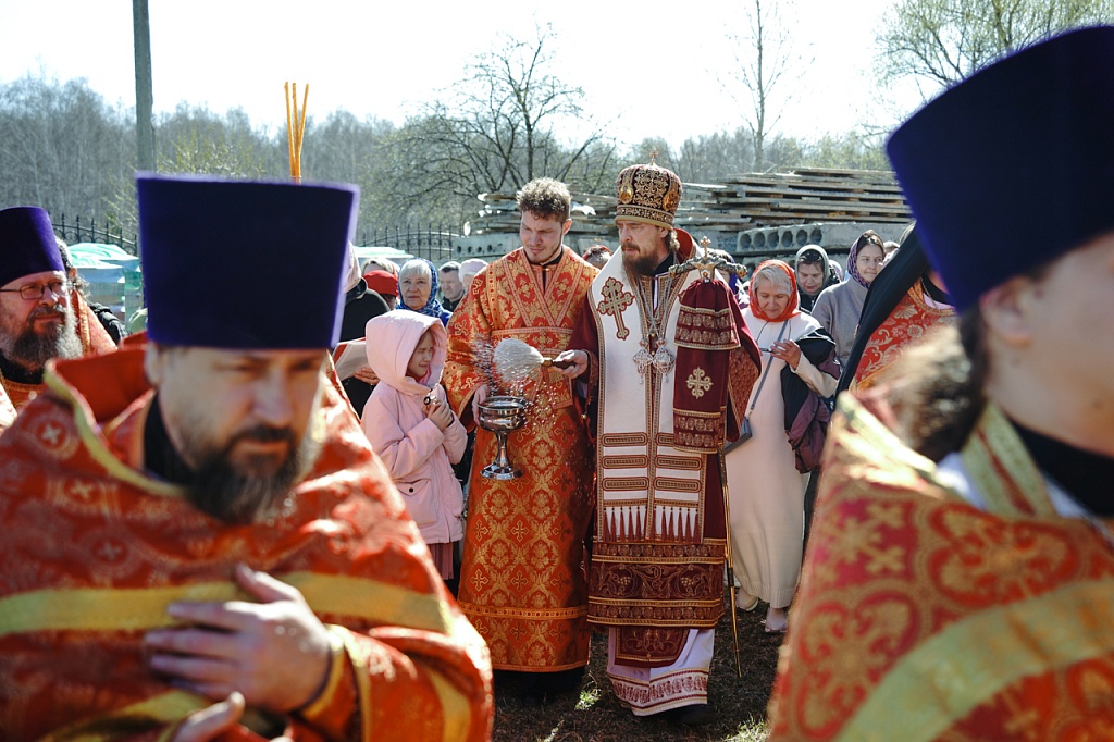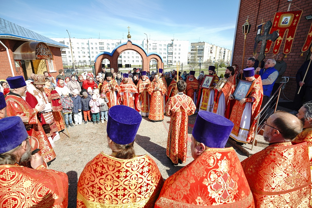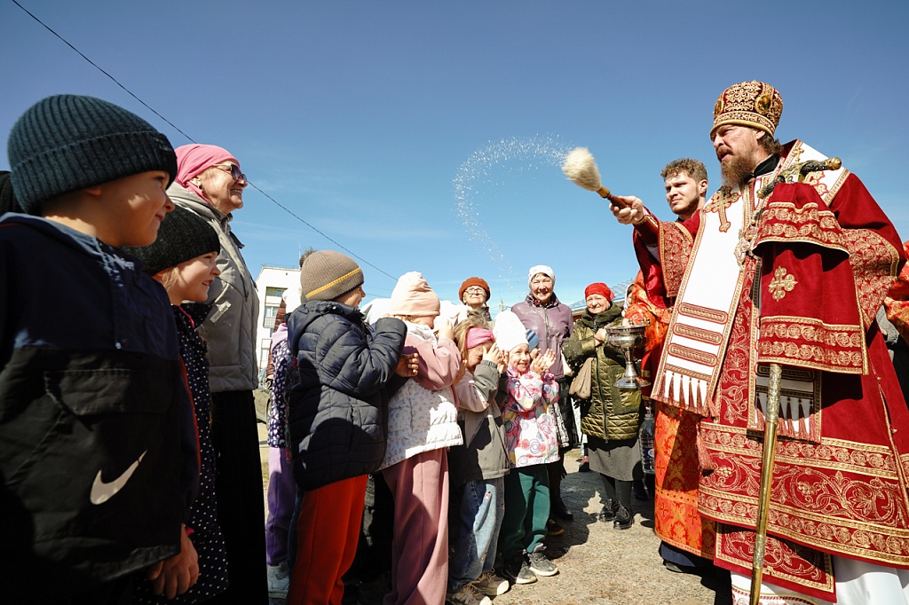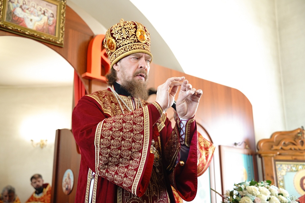 После Литургии правящий архиерей совершил малое освящение воды. Затем духовенство и прихожане обошли храм крестным ходом.