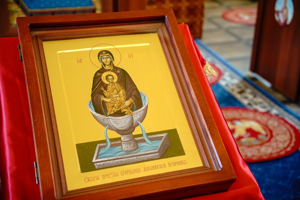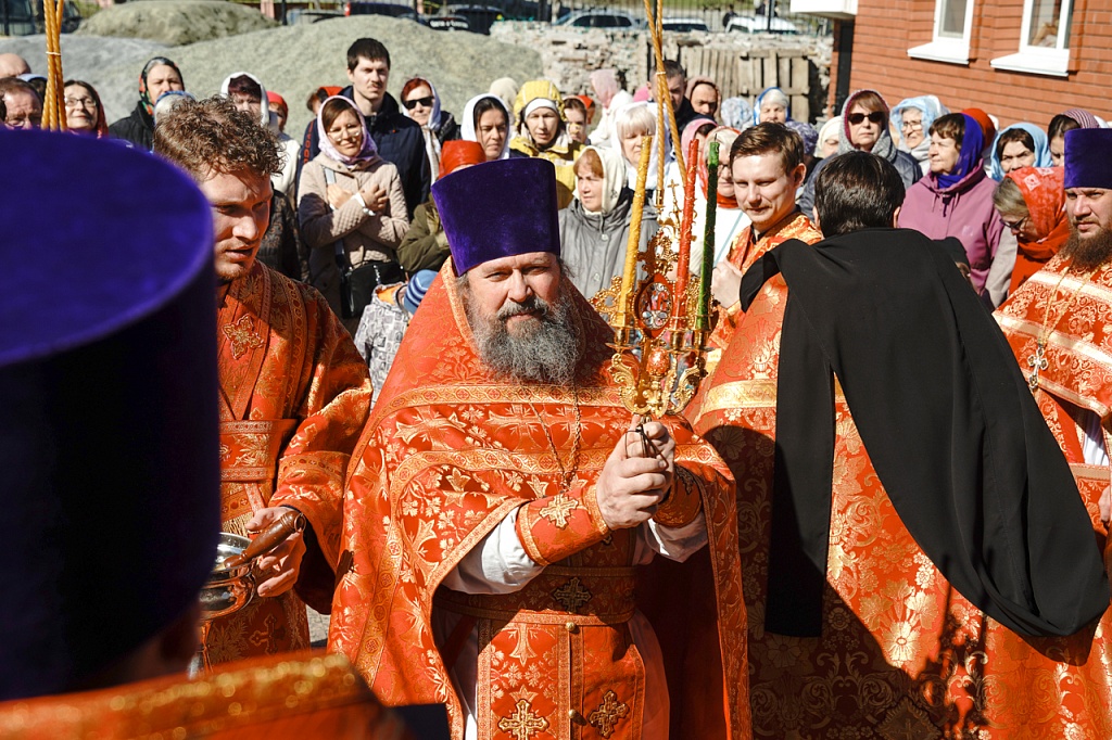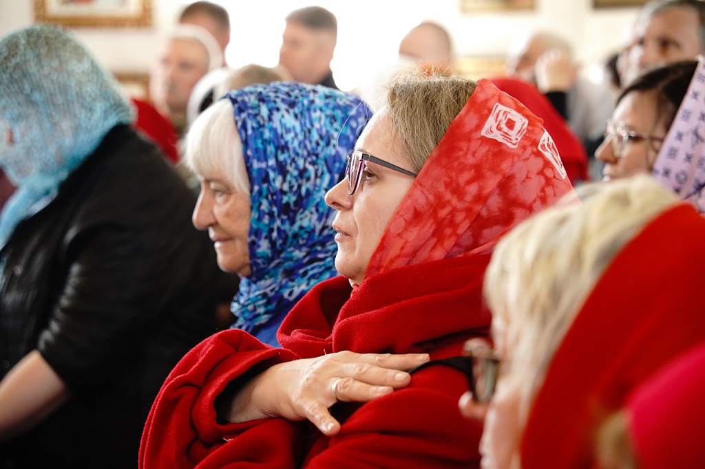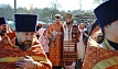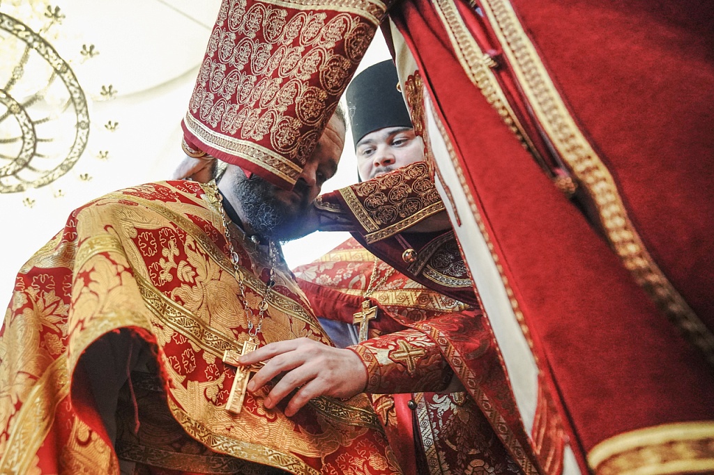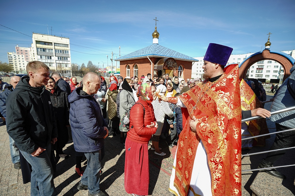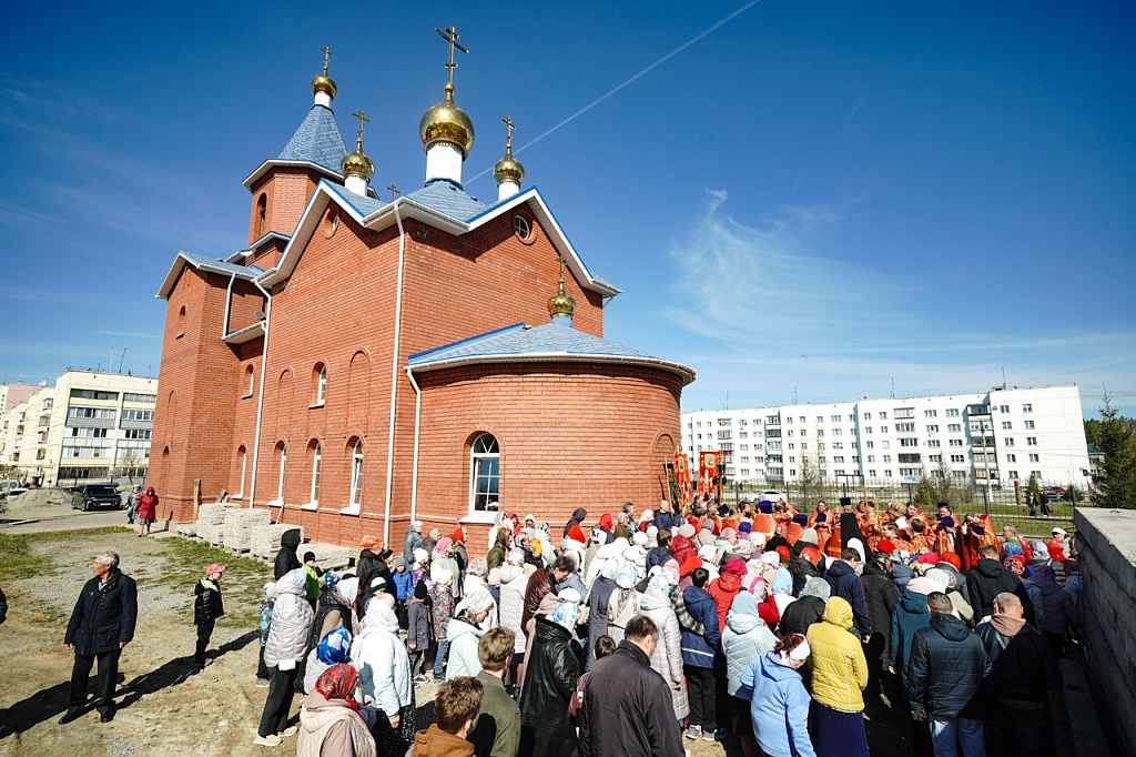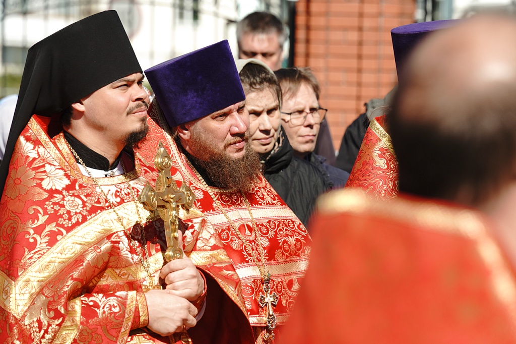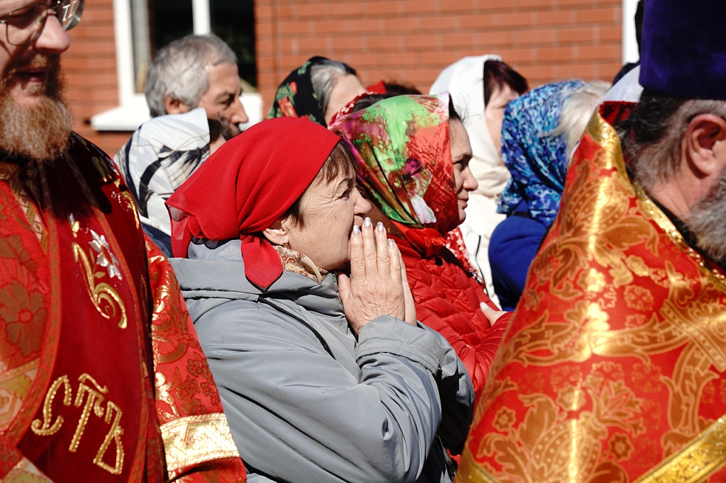 После Литургии правящий архиерей совершил малое освящение воды. Затем духовенство и прихожане обошли храм крестным ходом.