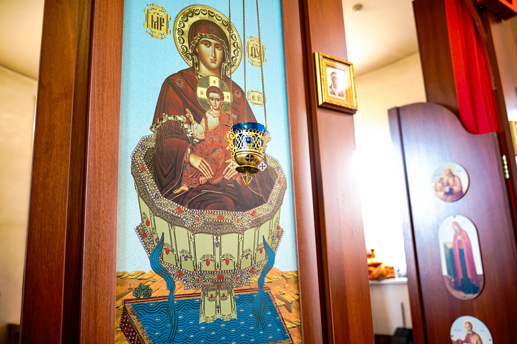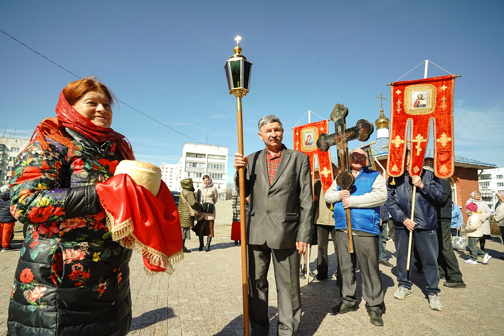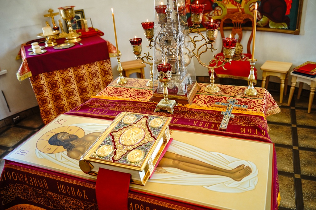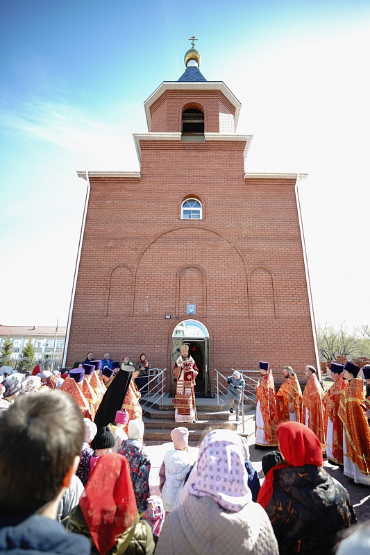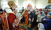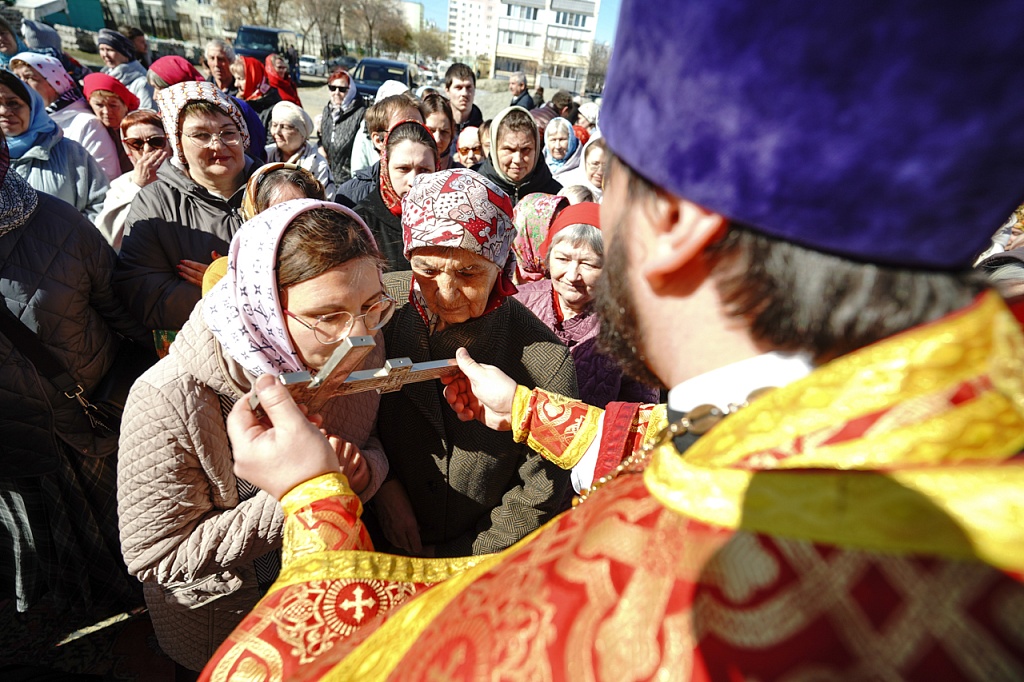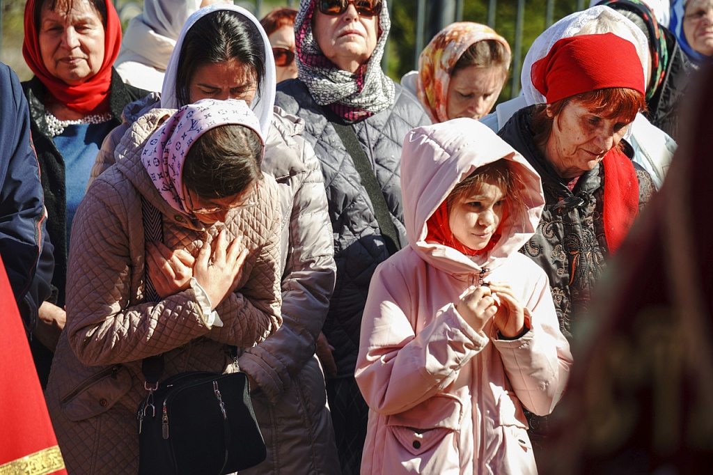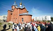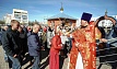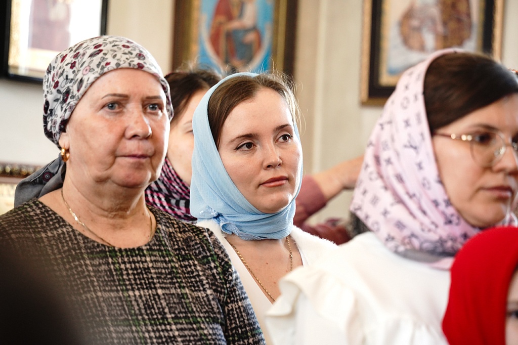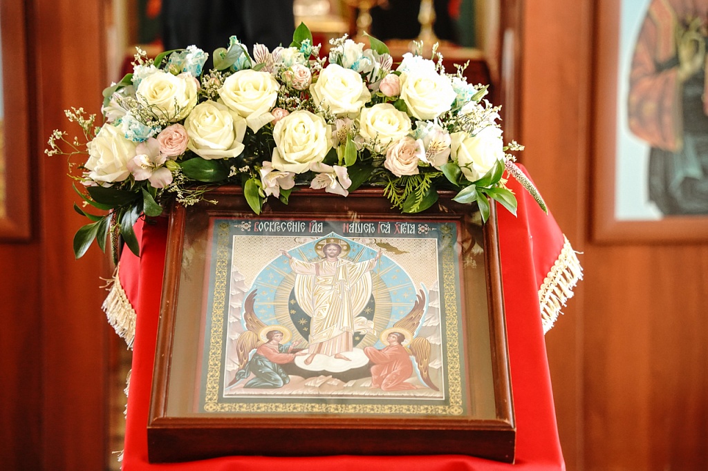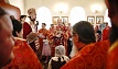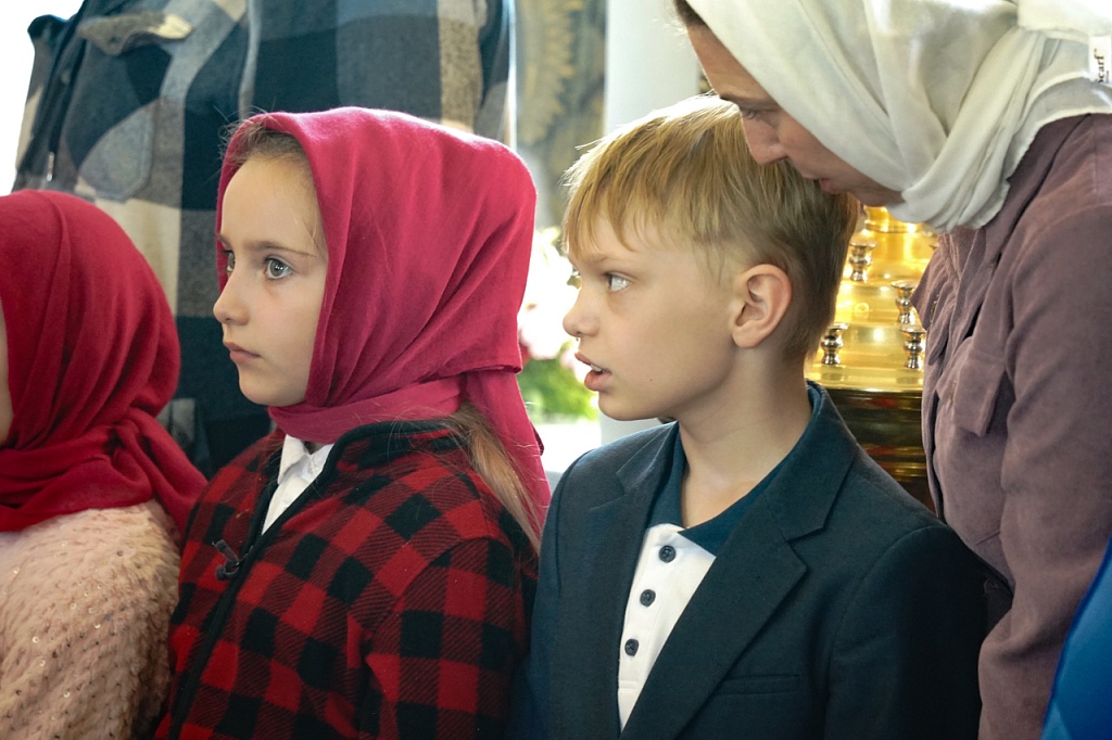 После Литургии правящий архиерей совершил малое освящение воды. Затем духовенство и прихожане обошли храм крестным ходом.