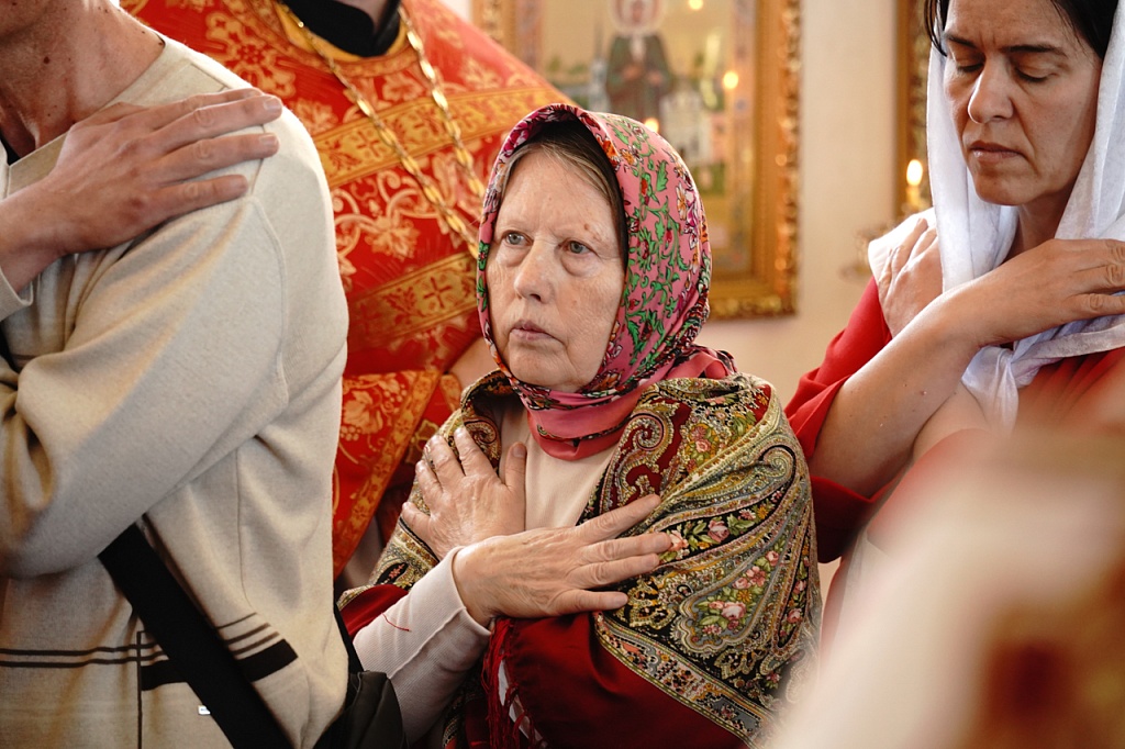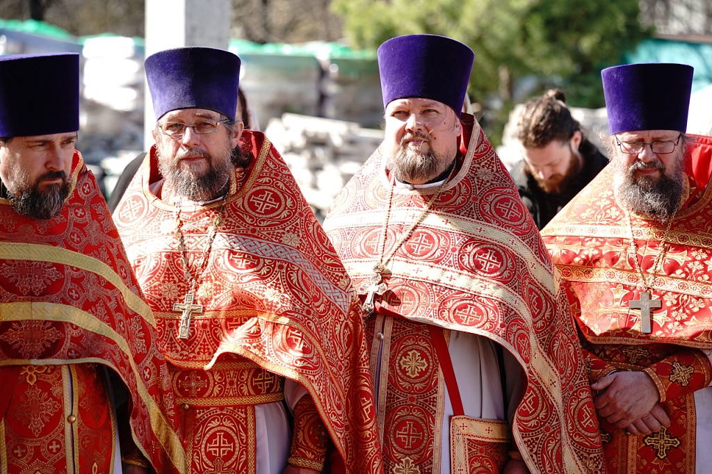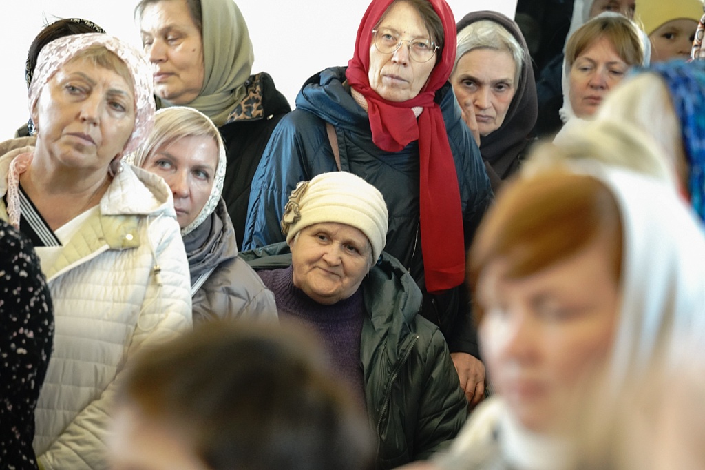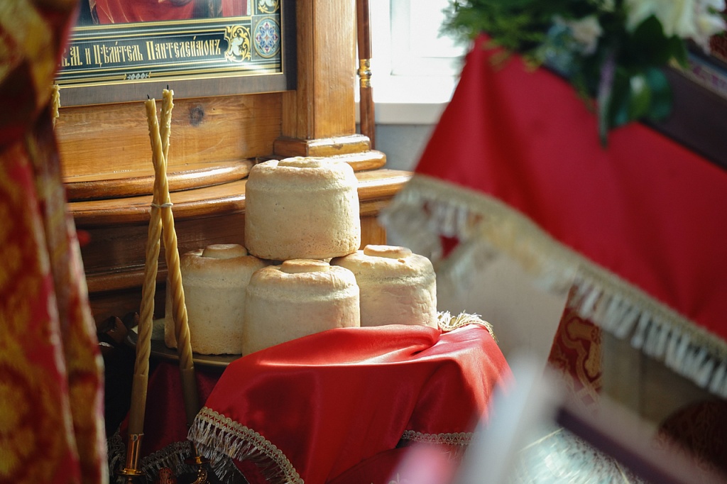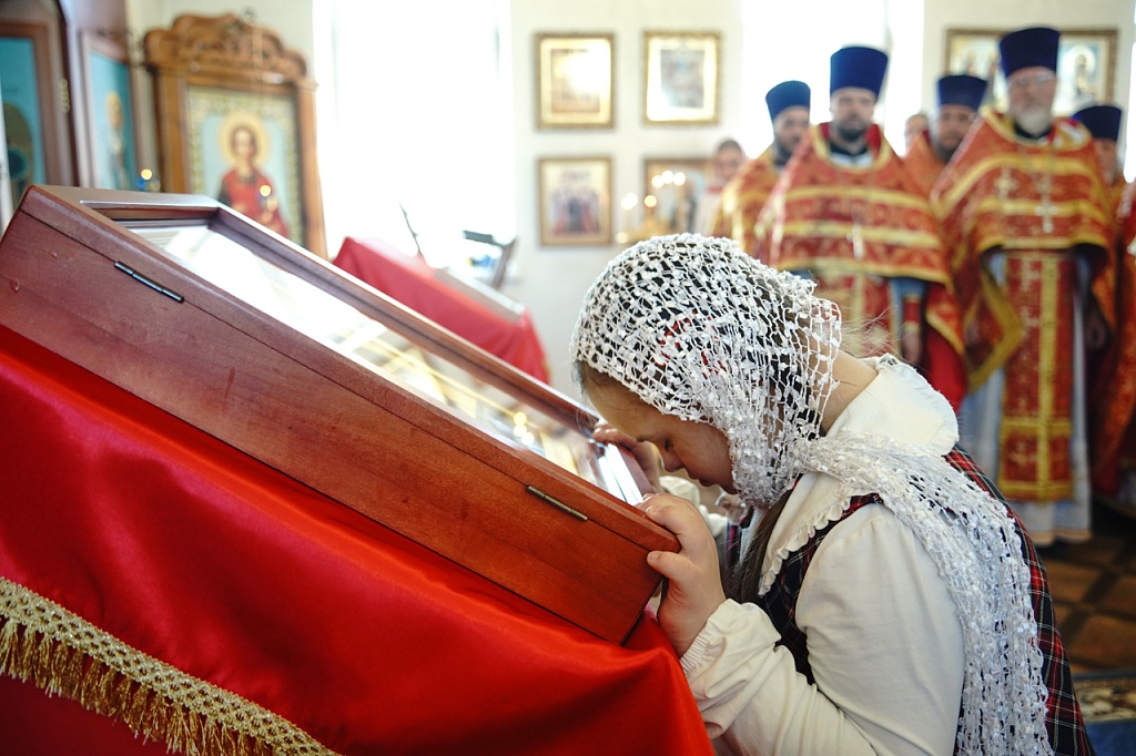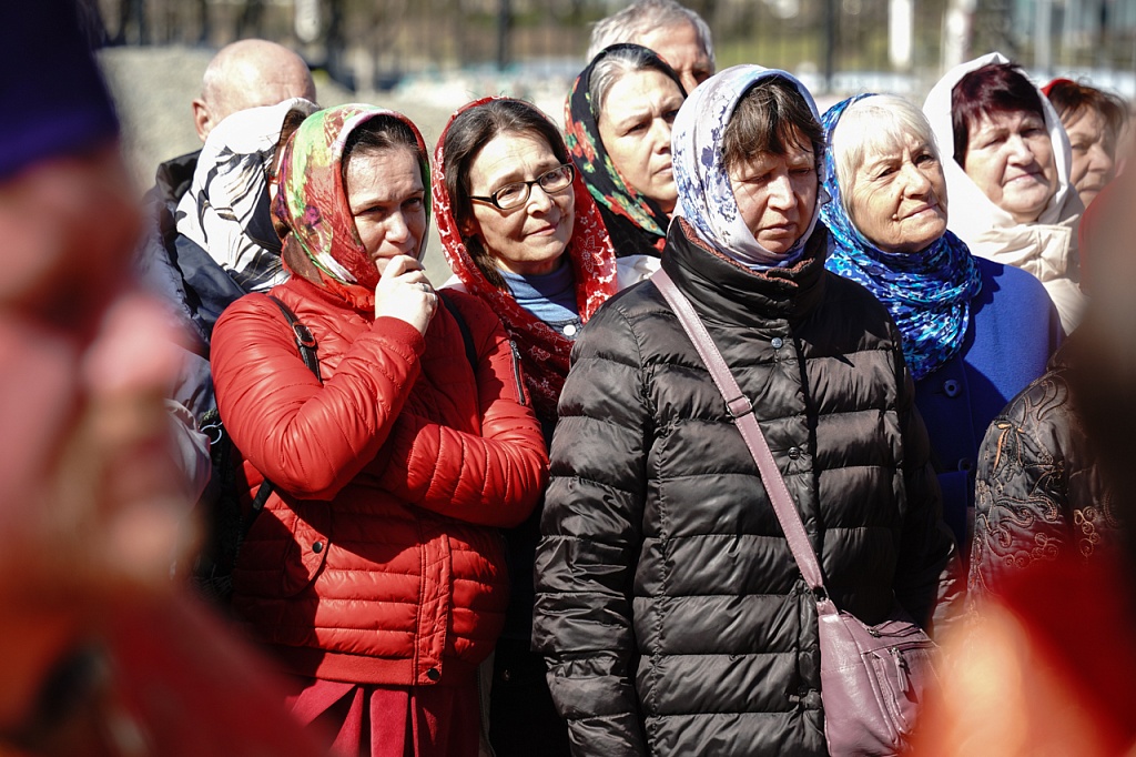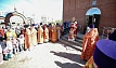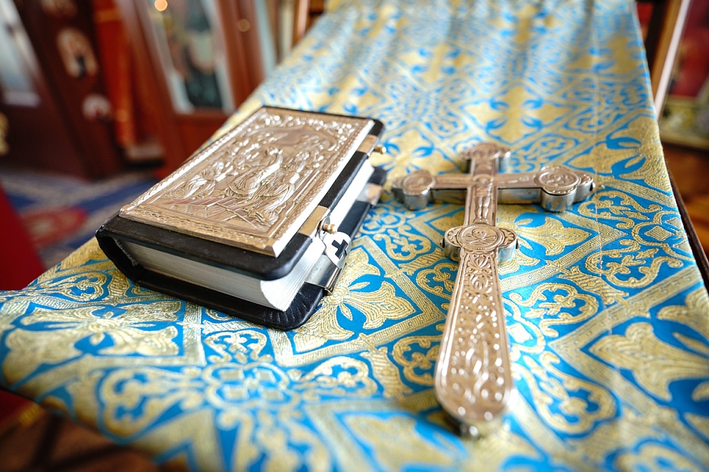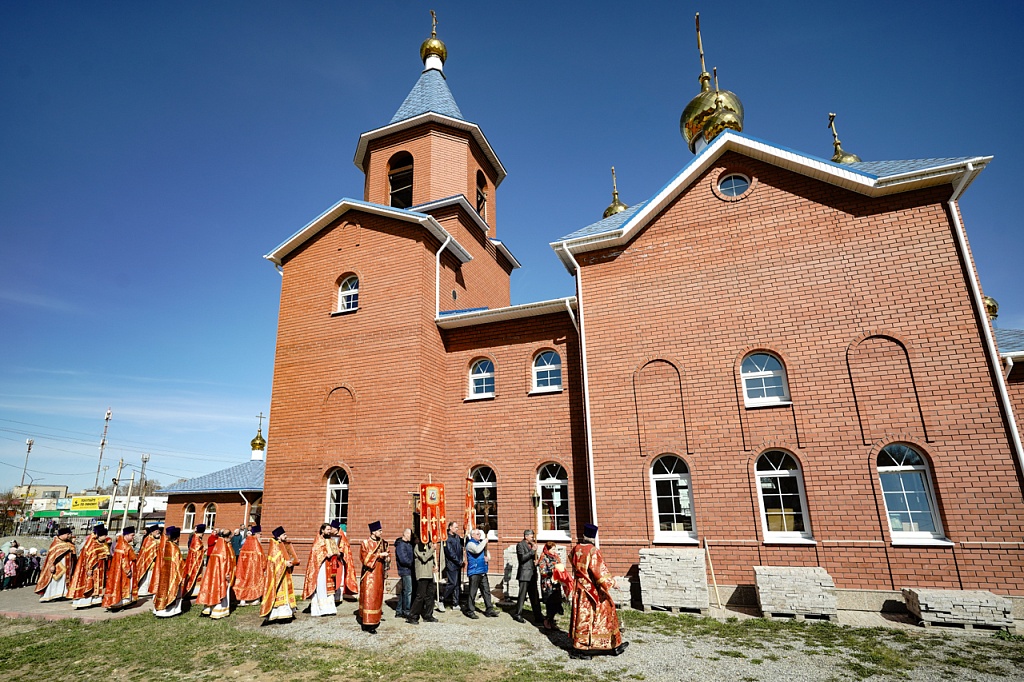 После Литургии правящий архиерей совершил малое освящение воды. Затем духовенство и прихожане обошли храм крестным ходом.