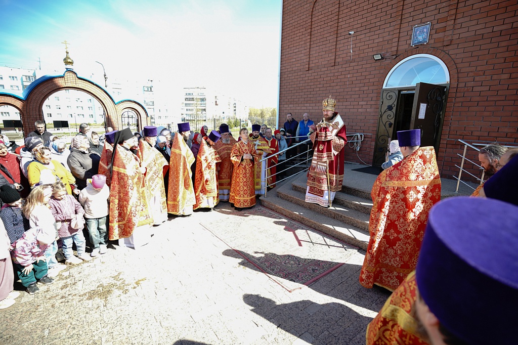 Митрополит Алексий поздравил прихожан с праздником Пасхи Господней и престольным праздником храма.