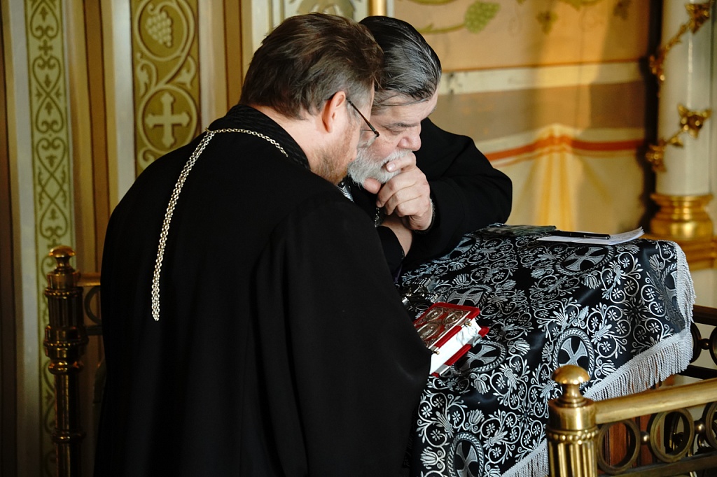 Божественная служба прошла накануне епархиального собрания. Многие клирики, по сложившейся в Великий пост традиции, исповедались в кафедральном соборе и за Литургией причастились Святых Христовых Таин.