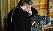 На Малом входе правящий архиерей вручил награды Святейшего Патриарха Кирилла священнослужителям Челябинской епархии за усердное служение: протоиерей Борис Кривоногов награжден правом служения Божественной литургии с открытыми Царскими вратами по «Отче наш»; протоиерей Иоанн Резепов, настоятель челябинского храма Успения Пресвятой Богородицы и иерей Андрей Ковшевный, настоятель храма святителя Луки Крымского в Челябинске, иерей Иоанн Федотов, настоятель храма Трех святителей Московских в пос. Медведево – награждены правом ношения наперсного креста с украшениями; иерей Павел Курбатов, настоятель храма мученика Иоанна Воина, руководитель Социального отдела Челябинской епархии награжден правом ношения палицы. Клирики награждены по представлению митрополита Челябинского и Миасского Алексия.