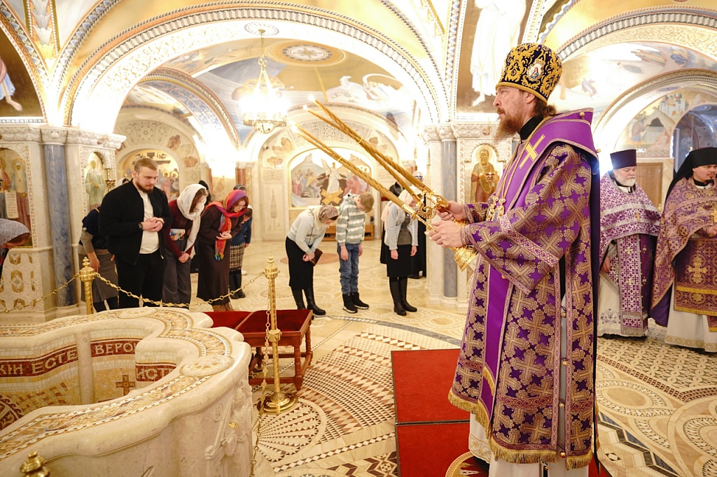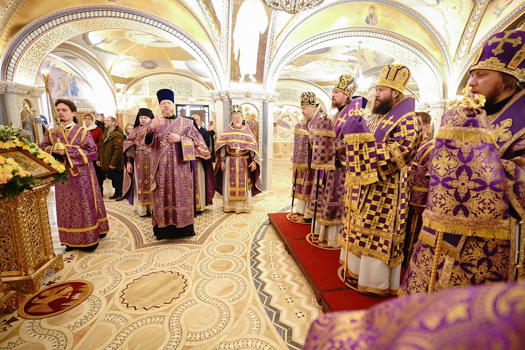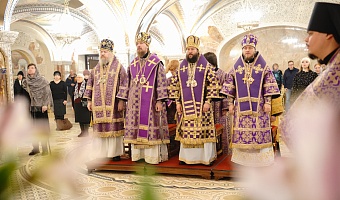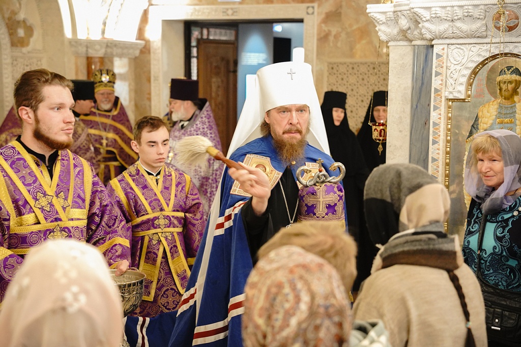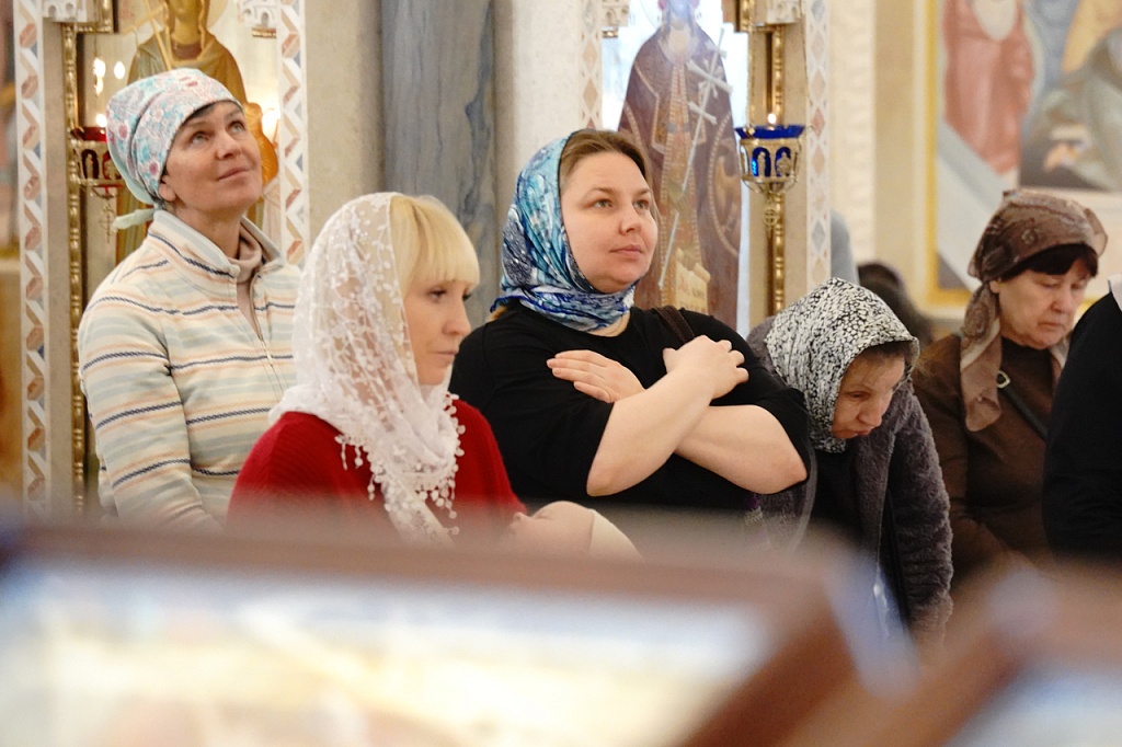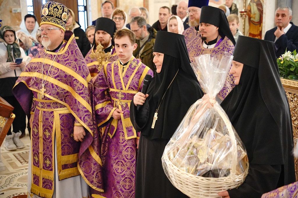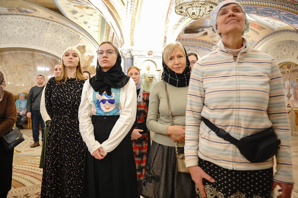За богослужением молилась настоятельница Одигитриевского женского монастыря игумения Евсевия (Лобанова). Песнопения службы исполнил Архиерейский мужской хор под управлением регента Александра Хакимова.