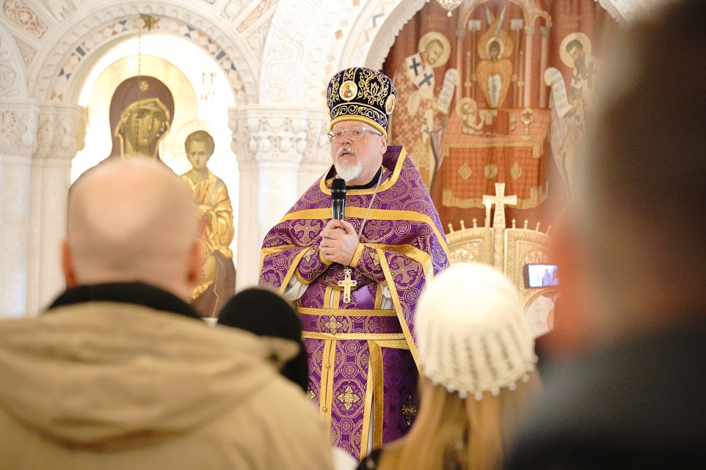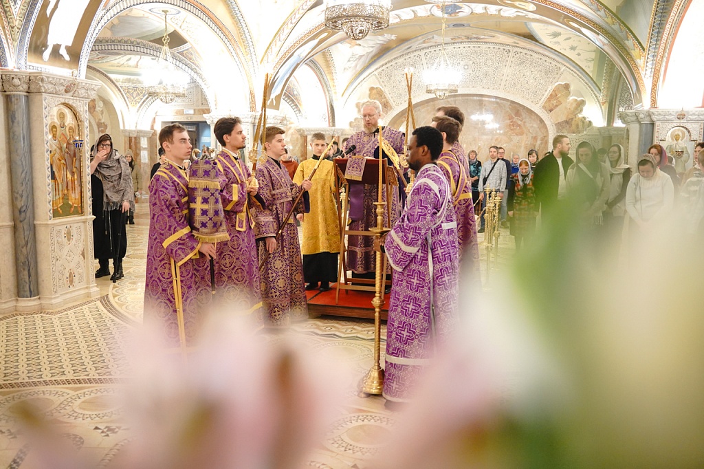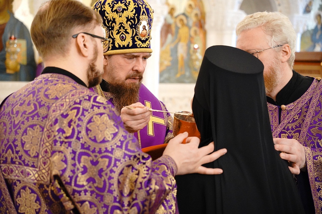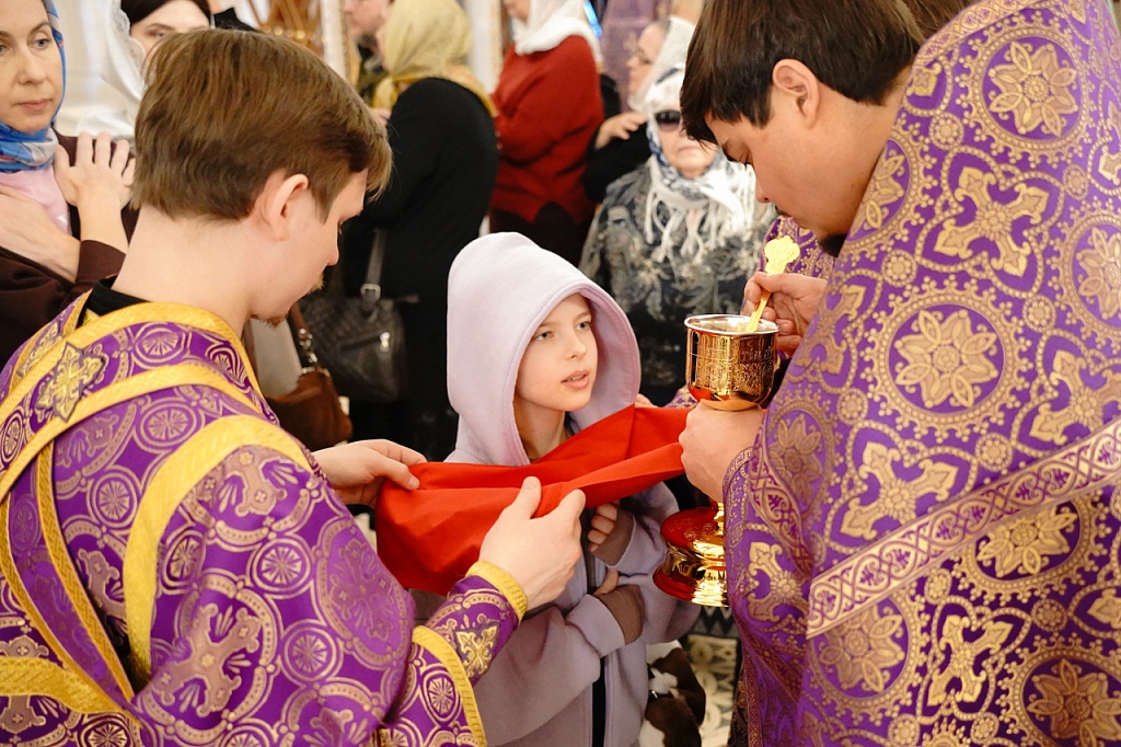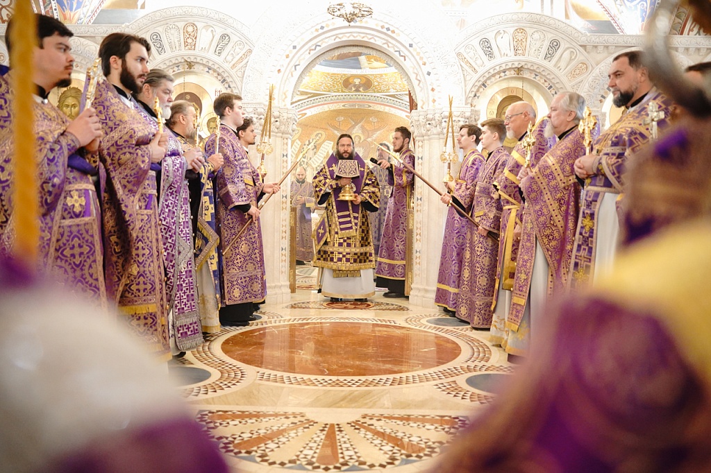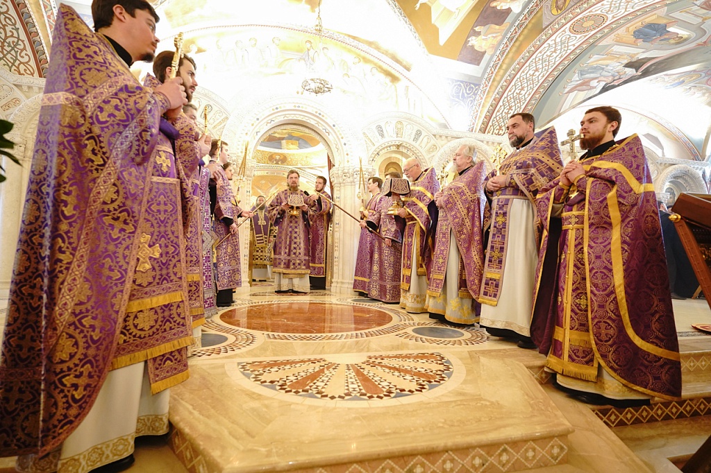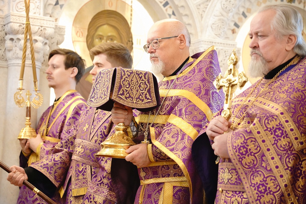 За богослужением молилась настоятельница Одигитриевского женского монастыря игумения Евсевия (Лобанова). Песнопения службы исполнил Архиерейский мужской хор под управлением регента Александра Хакимова.