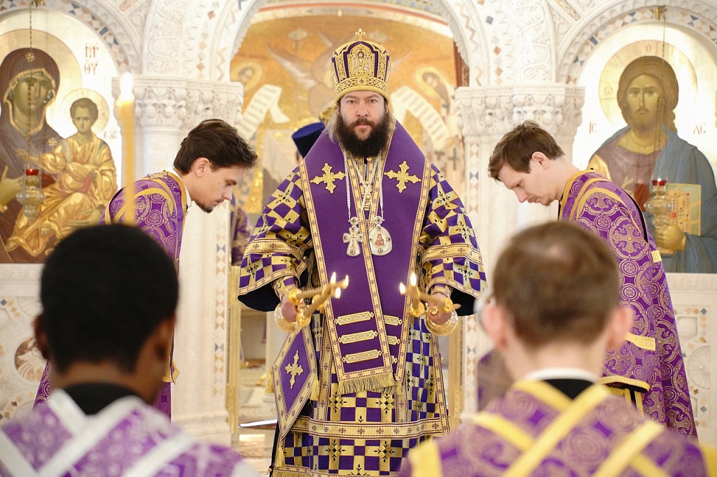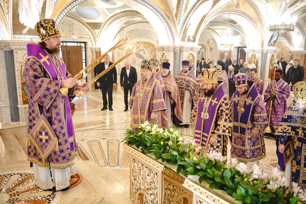 28 февраля митрополит Челябинский и Миасский Алексий, епископ Магнитогорский и Верхнеуральский Зосима, епископ Троицкий и Южноуральский Павел, епископ Златоустовский и Саткинский Серафим совершили Божественную литургию в кафедральном соборе Рождества Христова.