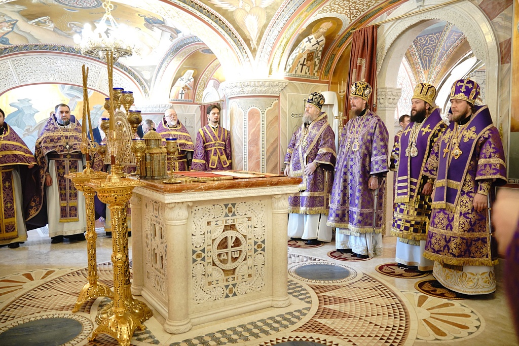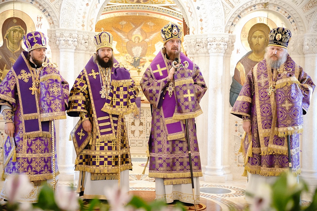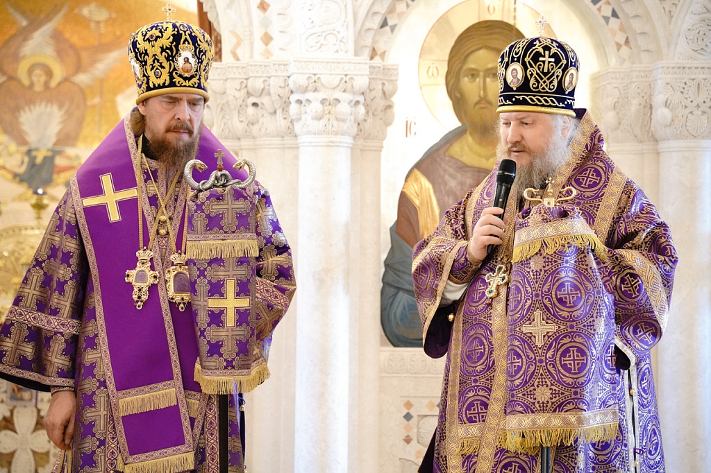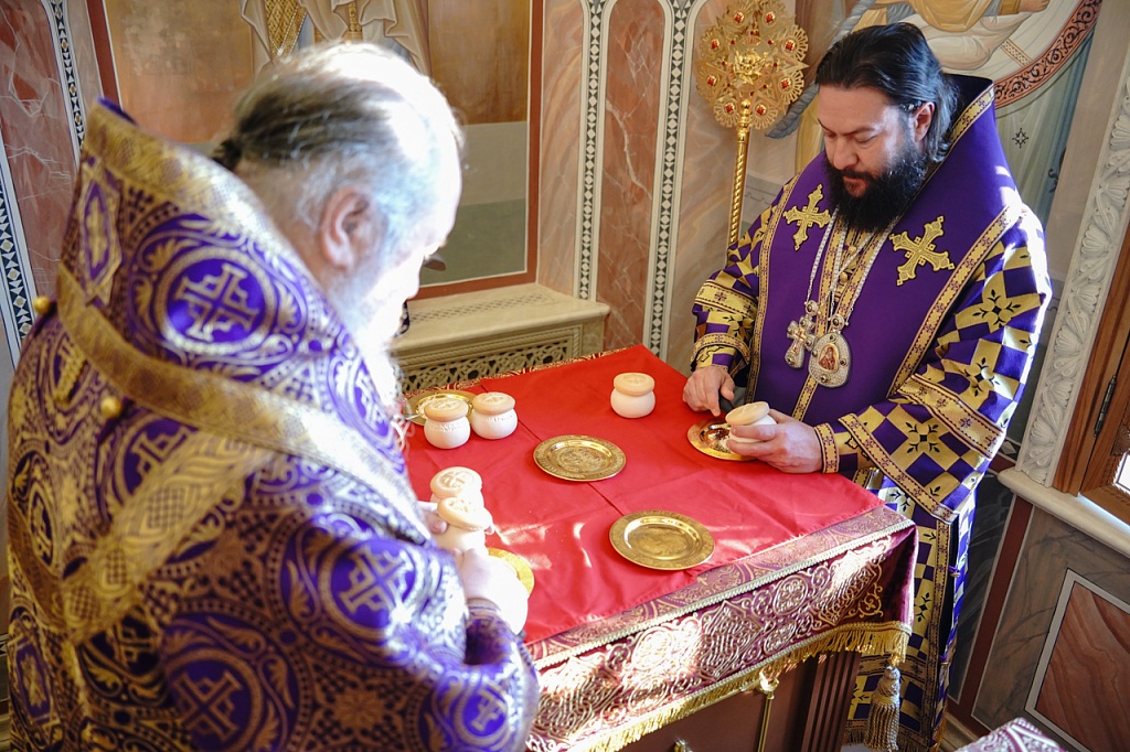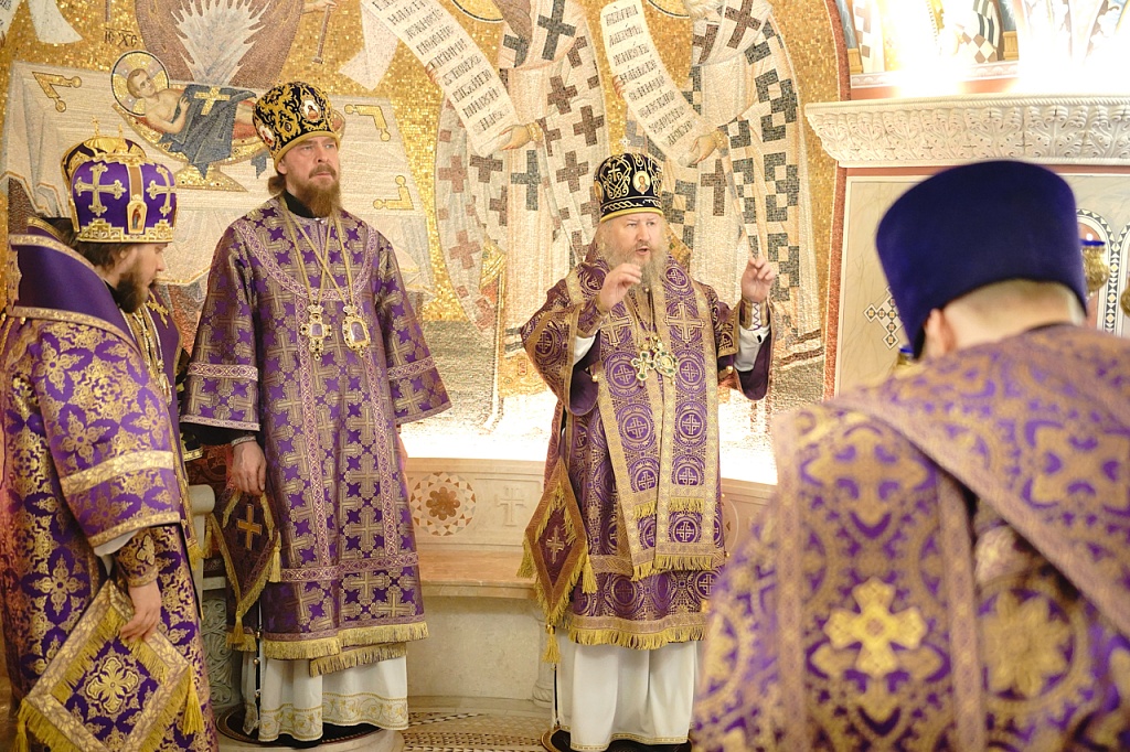 Архипастырям сослужили секретарь Челябинской епархии протоиерей Игорь Шестаков, благочинный Архиерейского благочиния протоиерей Борис Кривоногов, духовник Челябинской епархии протоиерей Сергий Севастьянов, ключарь Свято-Симеоновского кафедрального собора протоиерей Владимир Маничев.