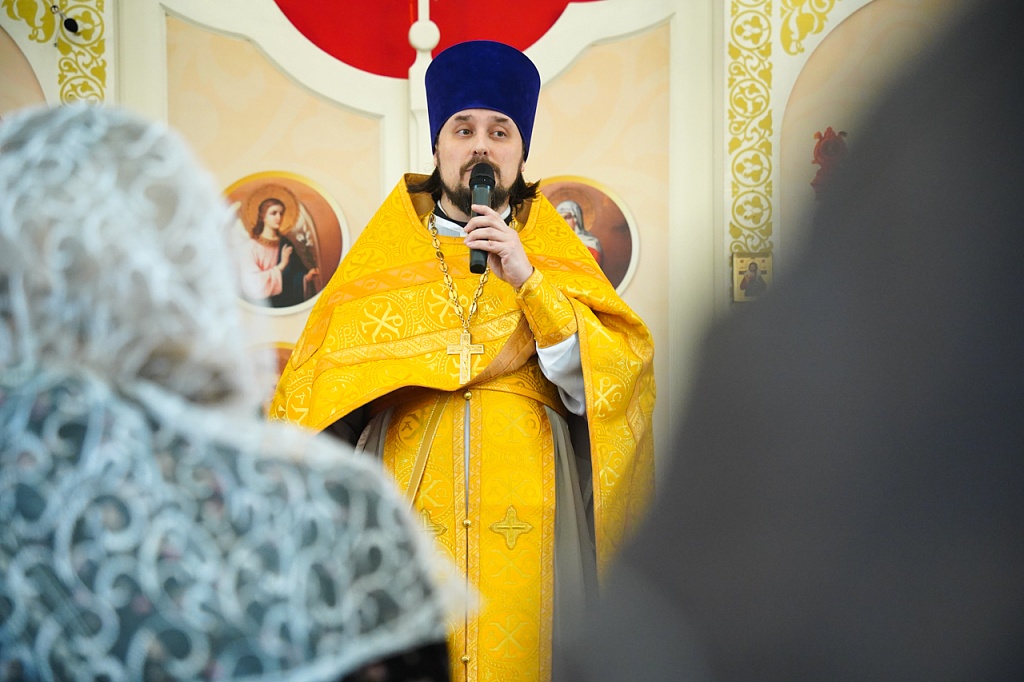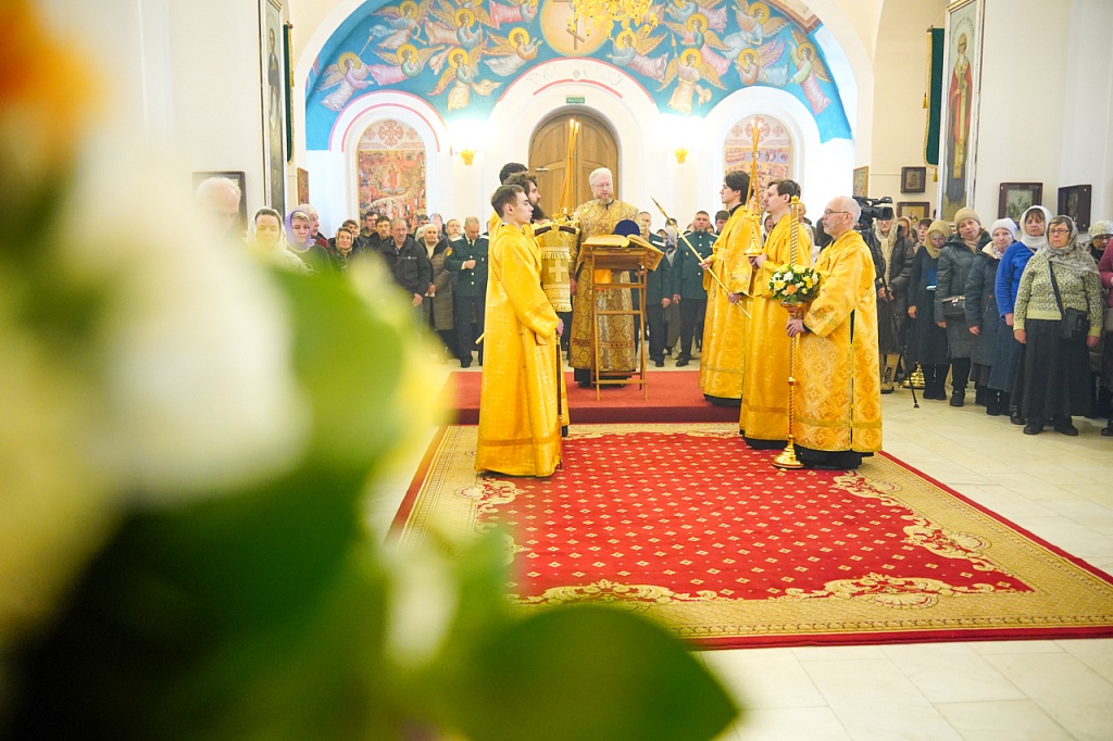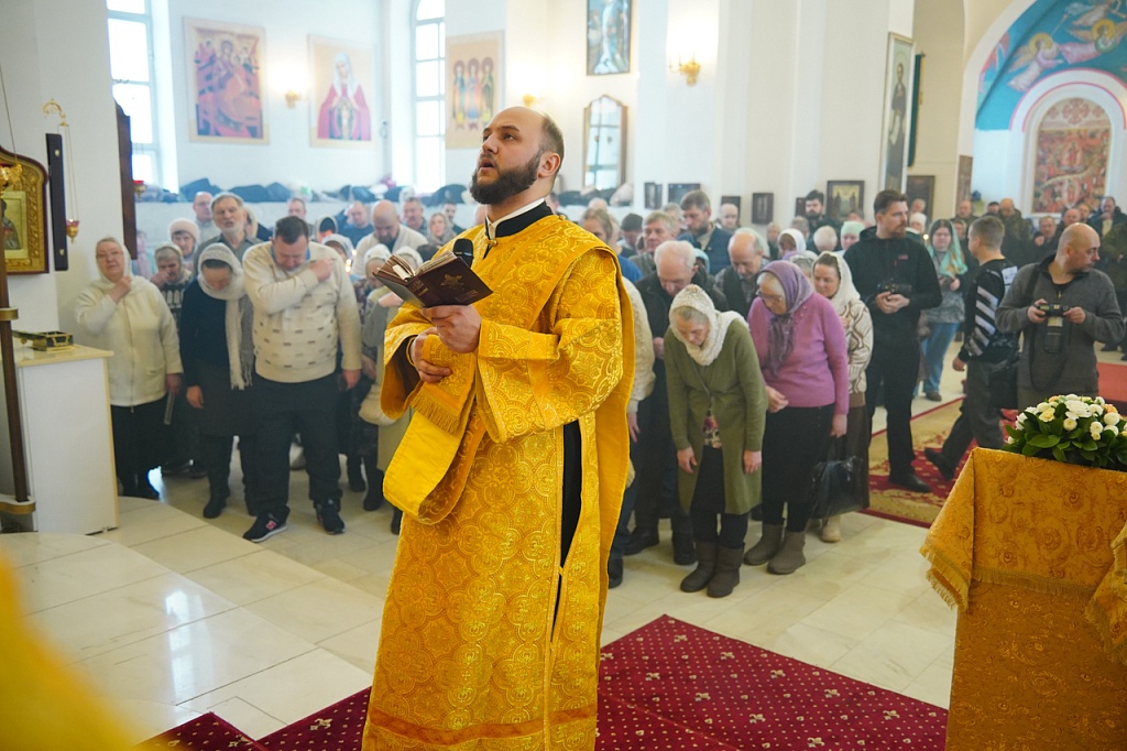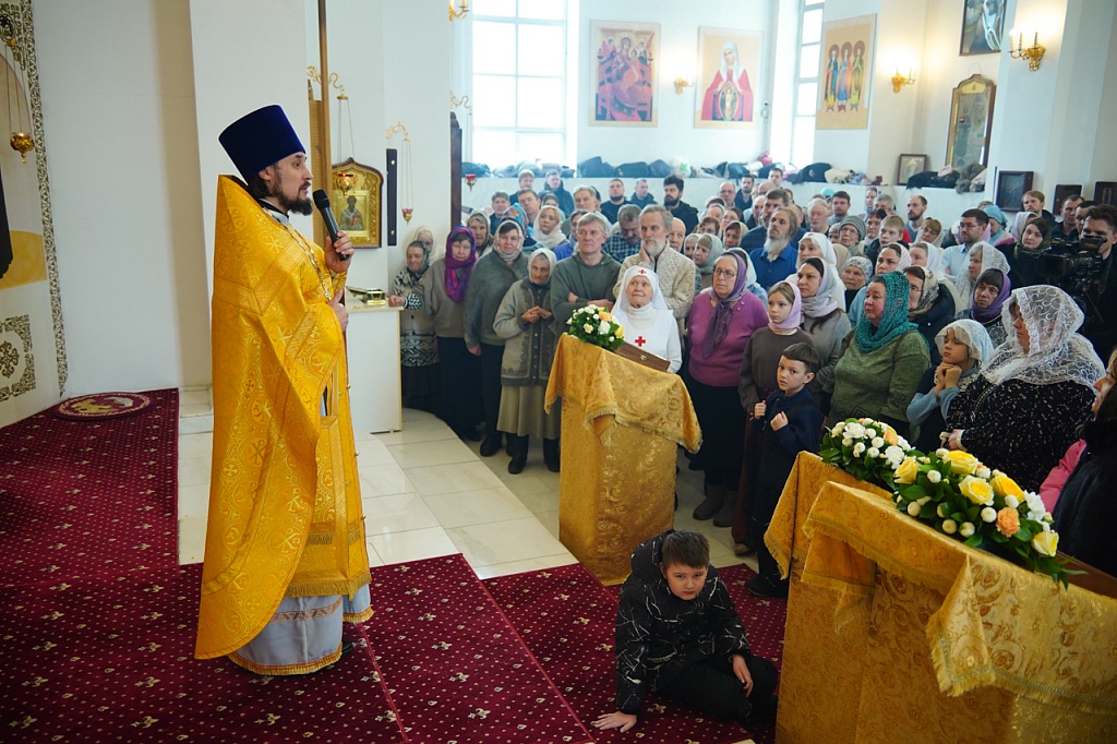За богослужением был прочитан отрывок из Евангелия от Матфея (Мф.6:1-13), в котором Иисус Христос учит не творить напоказ милостыни и не молиться ради получения похвалы от людей. Господь учит, как правильно молиться, предлагая в образец молитву «Отче наш».
